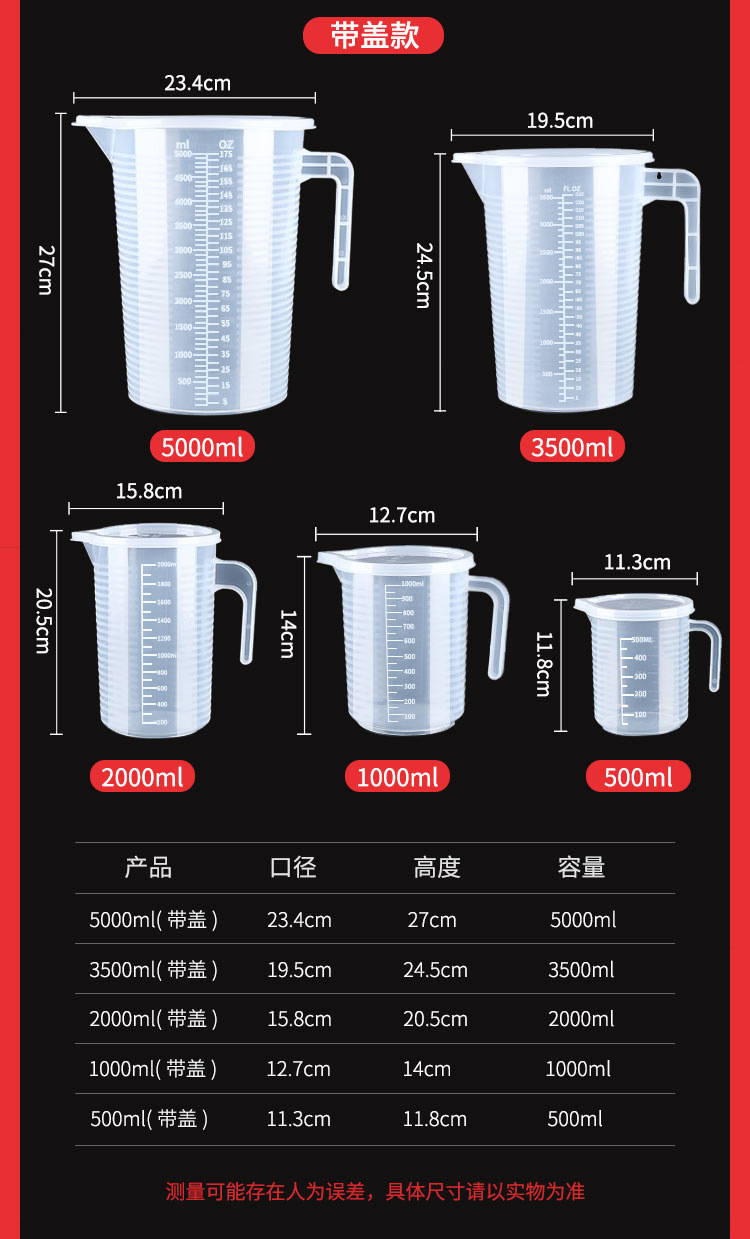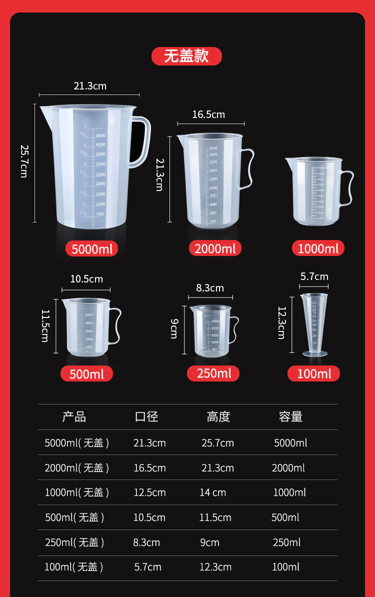 식품 등급 플라스틱 측정 컵 스케일 측정 실린더 두꺼운 투명 비커 100-5000 ml 공장 도매