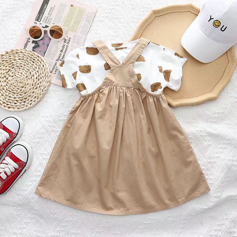 2024 여름 남성과 여성 아동복 어린이 세트 새로운 어린이 자매와 형제 스트랩 짧은 소매 세트 스커트 세트 인쇄스토어 가기