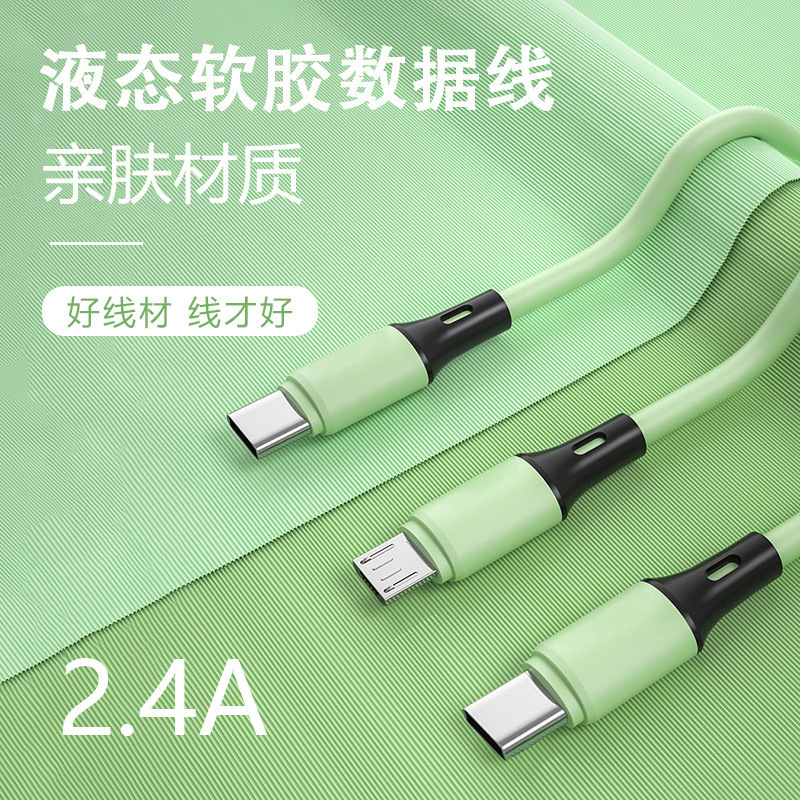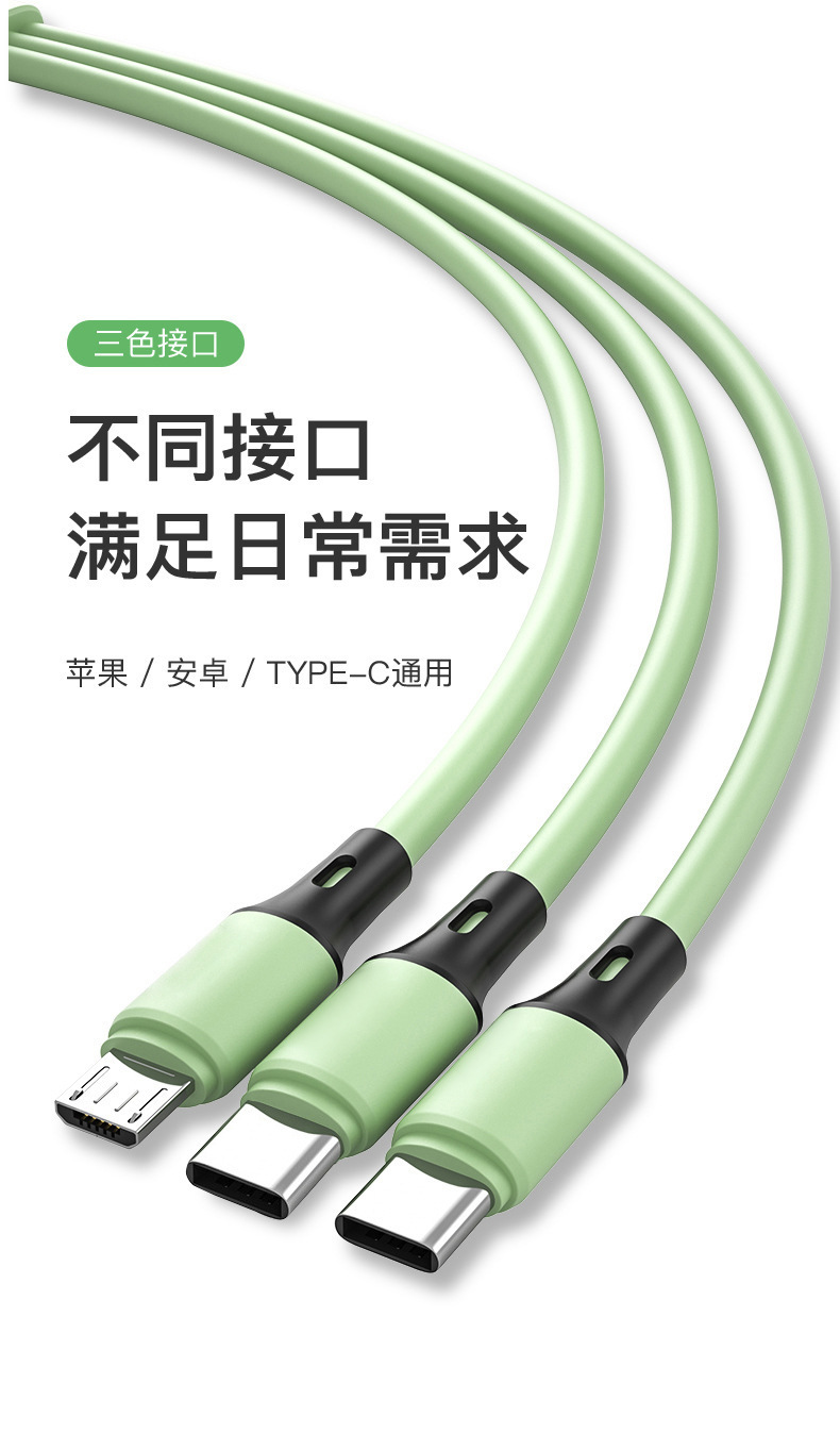 푸시 뜨거운 액체 실리콘 원 드래그 3 데이터 라인 2A 충전 3 대 1 활동 선물 휴대 전화 라인 도매