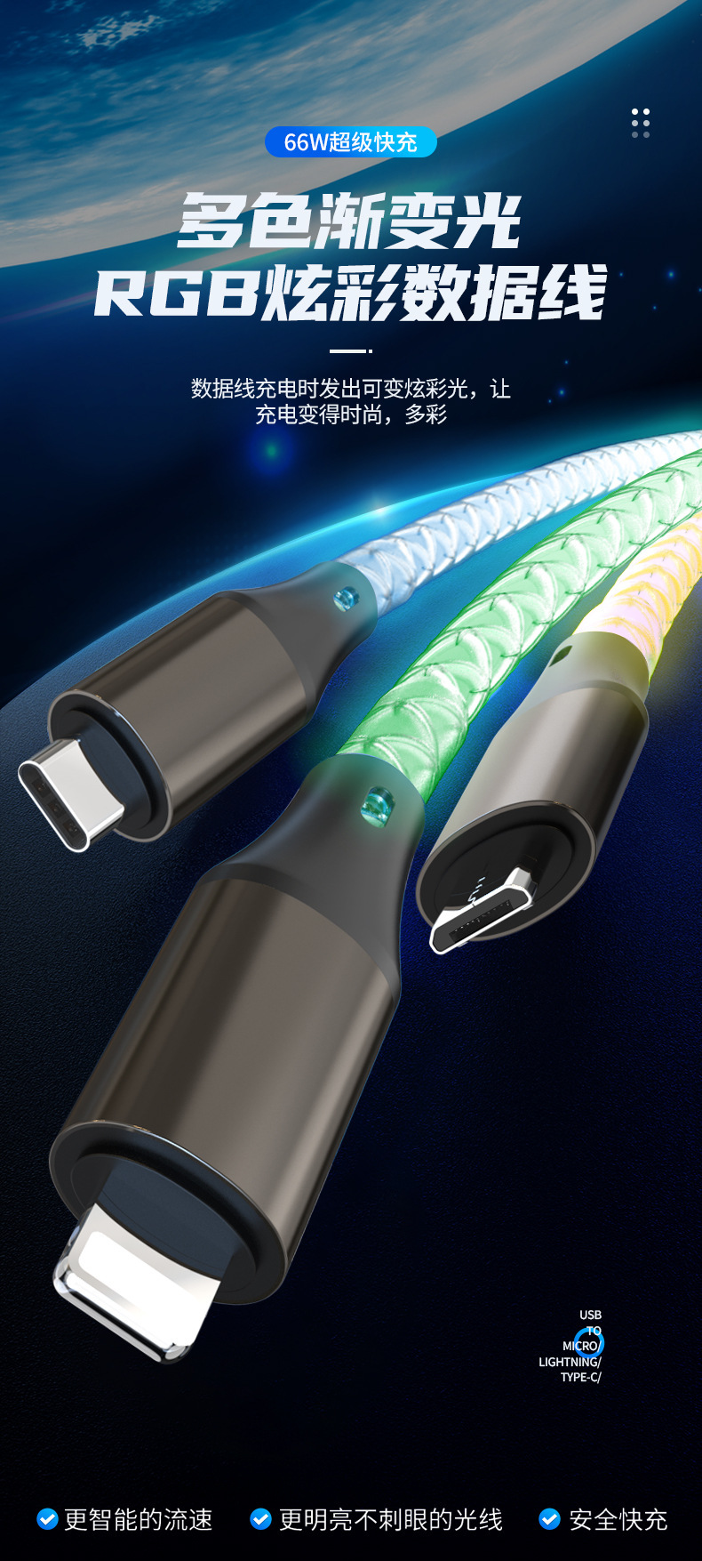• 업그레이드 [66W 빠른 충전] typec 그라디언트 형광
