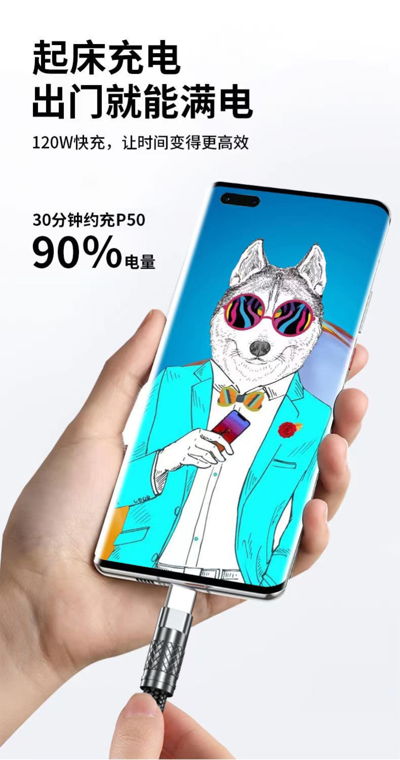 편직 기계 승객 데이터 케이블 대담한 플래시 충전 120w 초고속 충전 화웨이 타입 아연 합금 데이터 케이블스토어 가기