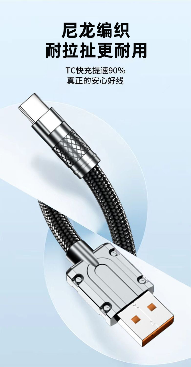 편직 기계 승객 데이터 케이블 대담한 플래시 충전 120w 초고속 충전 화웨이 타입 아연 합금 데이터 케이블