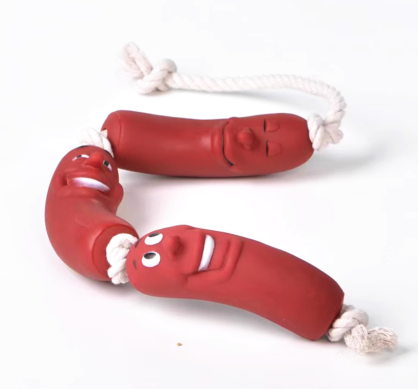 개 성인 개 애완 동물 만화 재미있는 소시지 장난감 Molar 치아 청소 로프 매듭 강아지스토어 가기