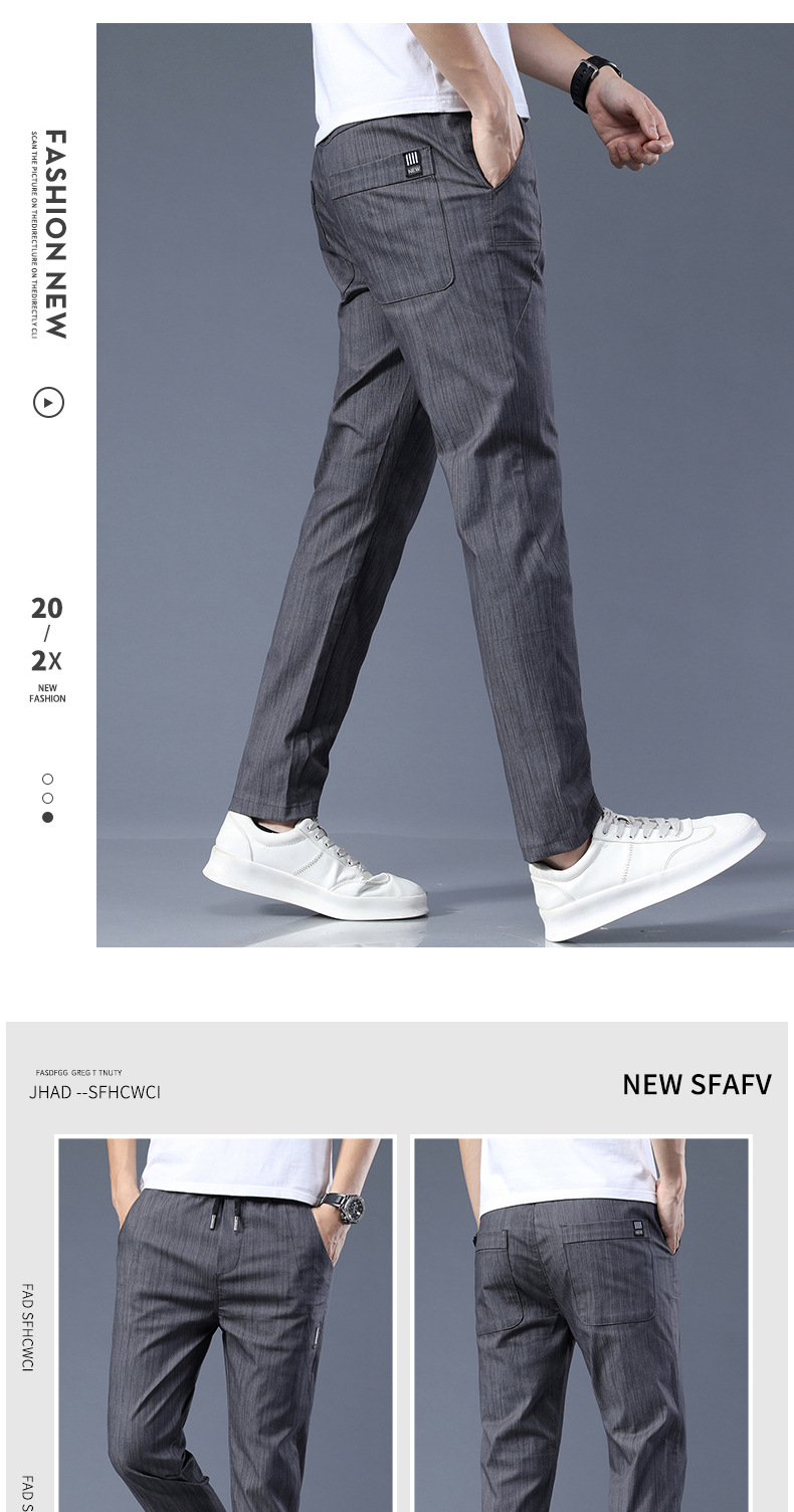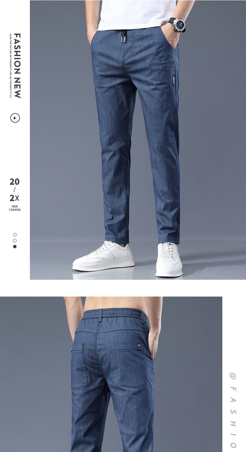 남자 캐주얼 바지 2024 봄과 여름 새로운면 탄성 허리 슬림 바지 패션 한국 바지 남자의 통기성스토어 가기