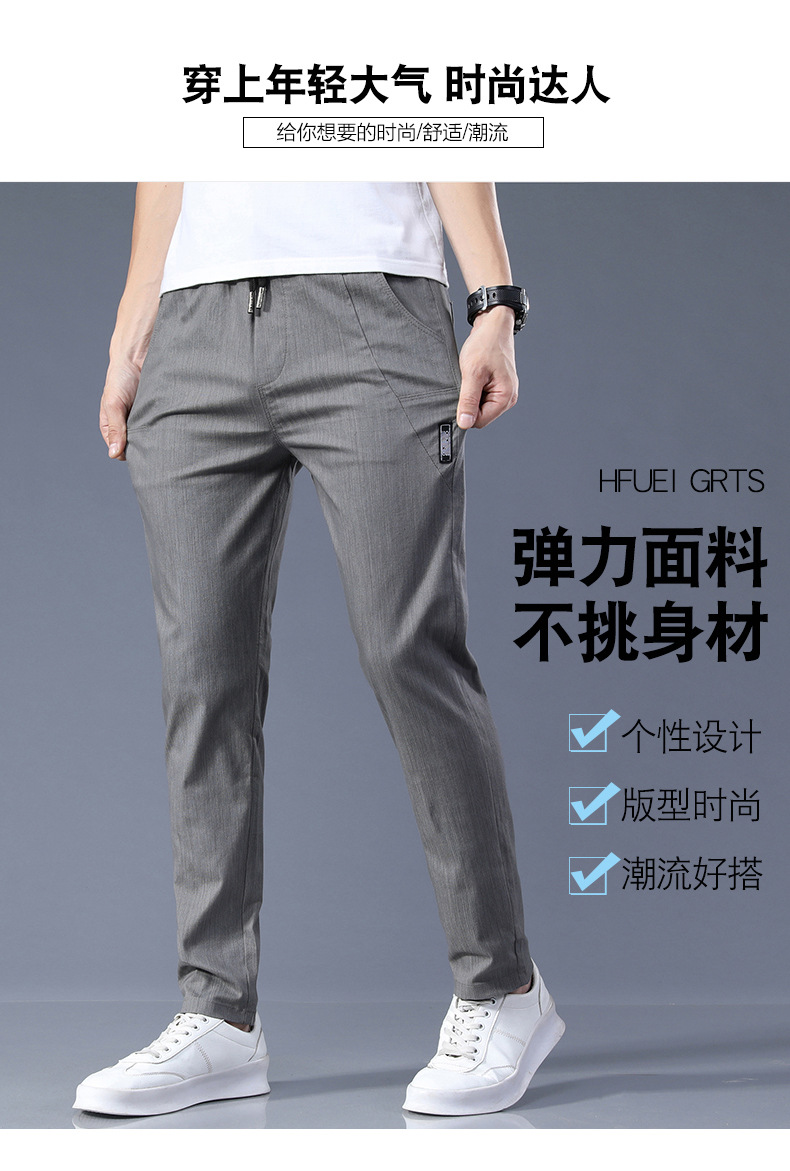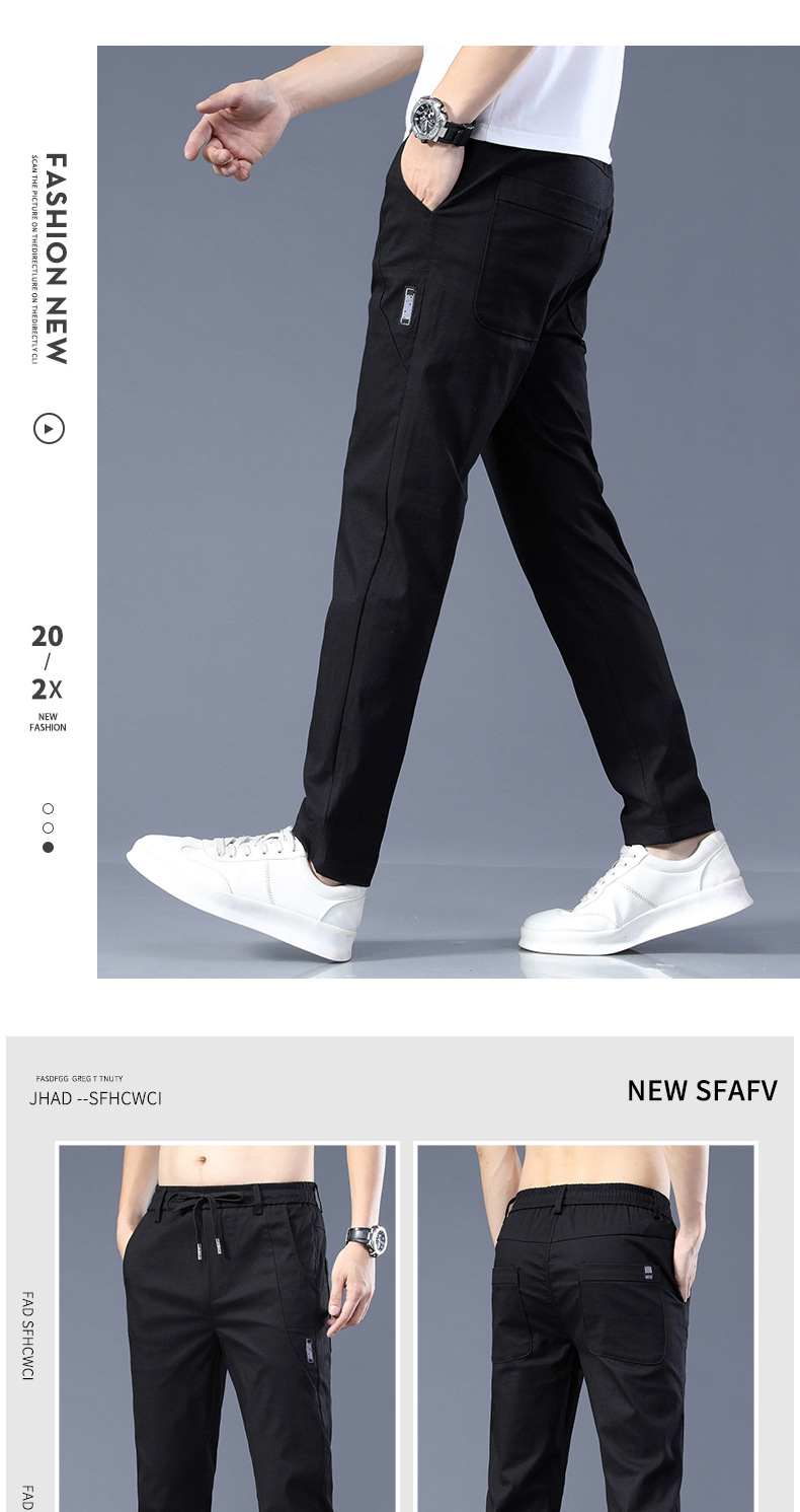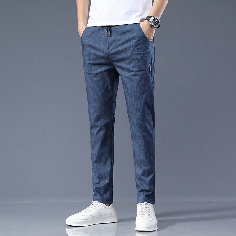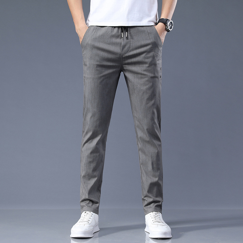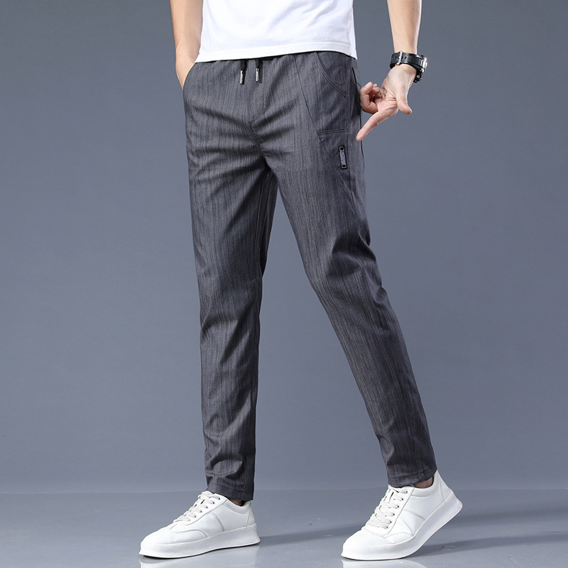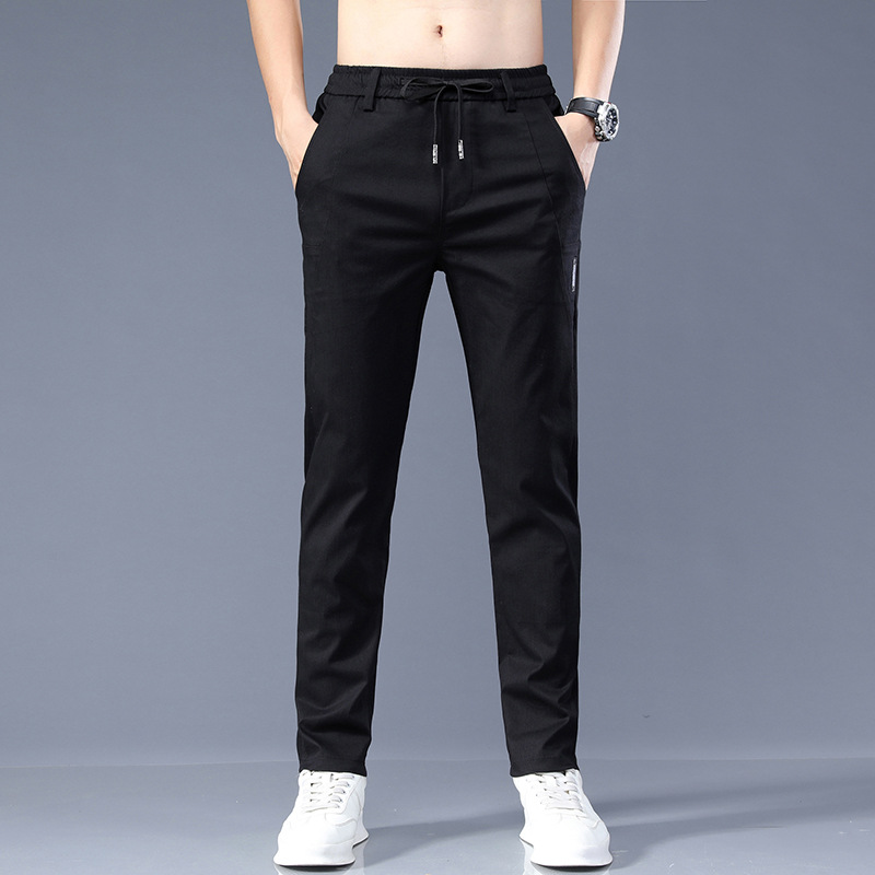 남자 캐주얼 바지 2024 봄과 여름 새로운면 탄성 허리 슬림 바지 패션 한국 바지 남자의 통기성