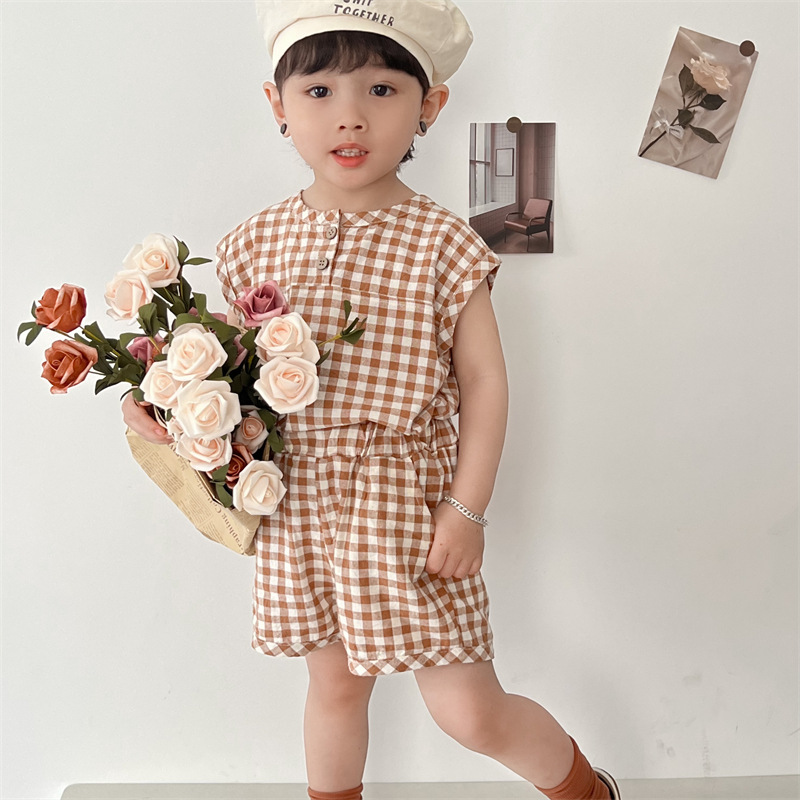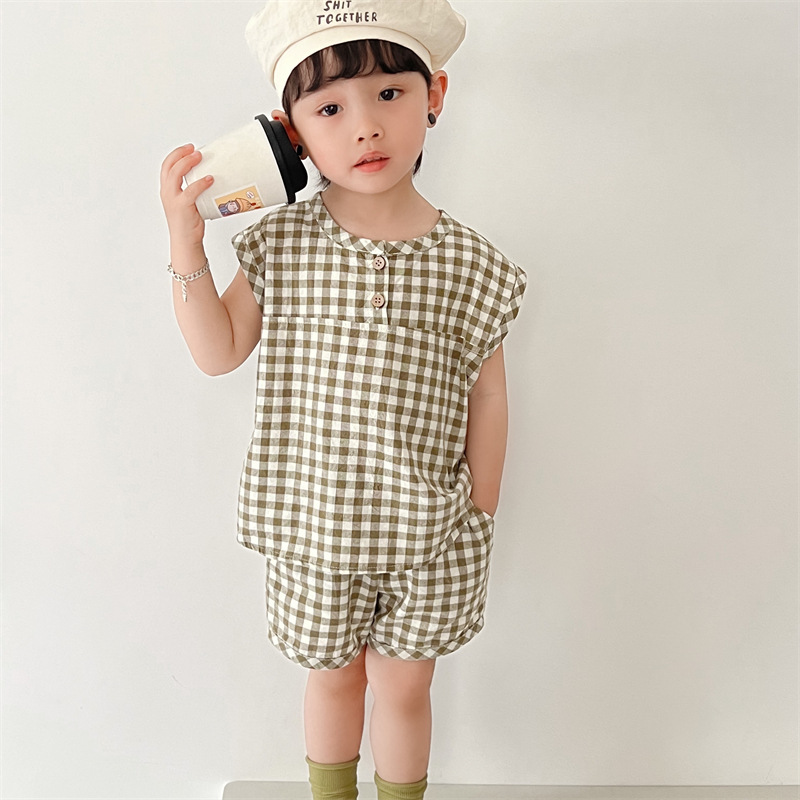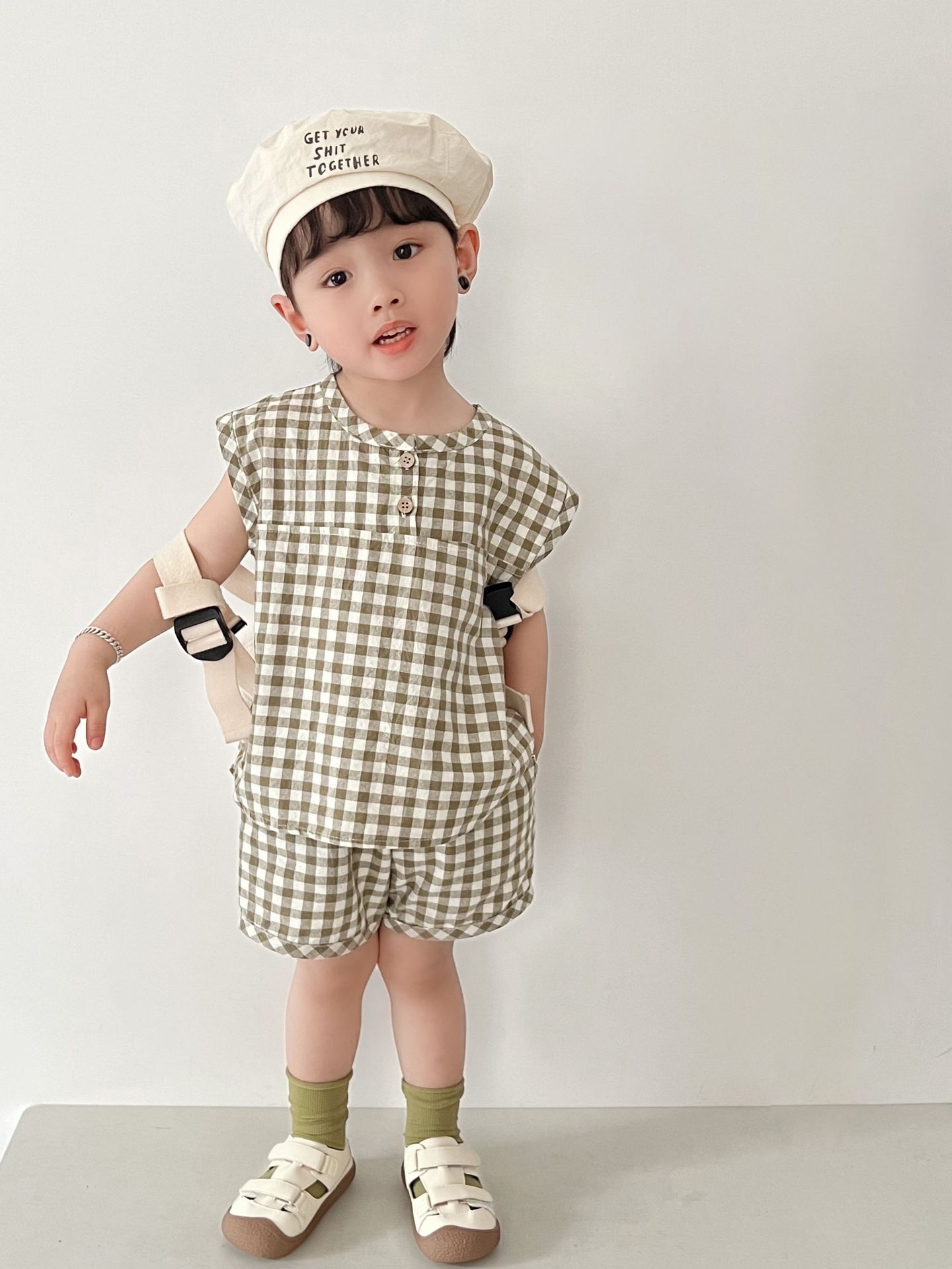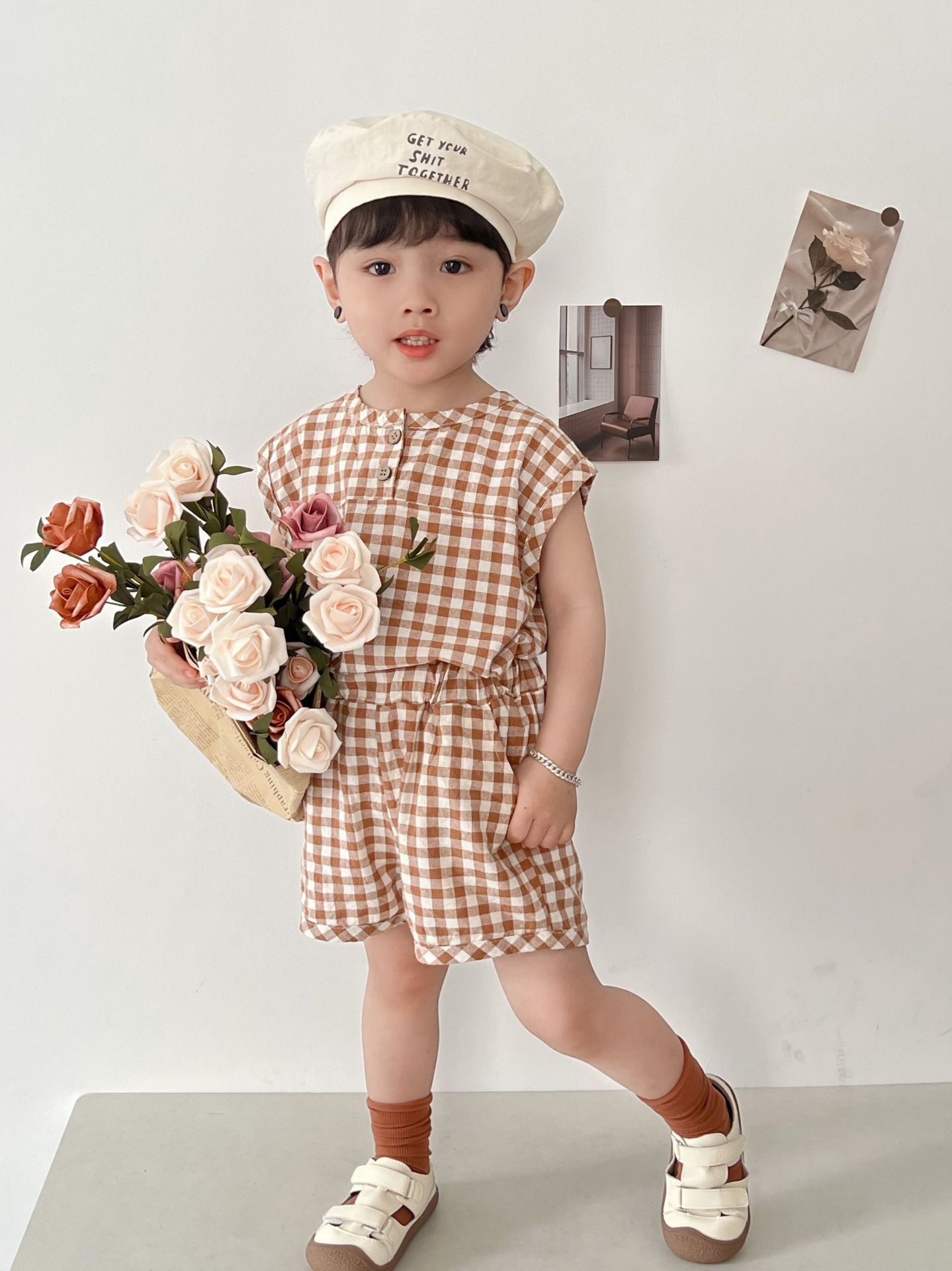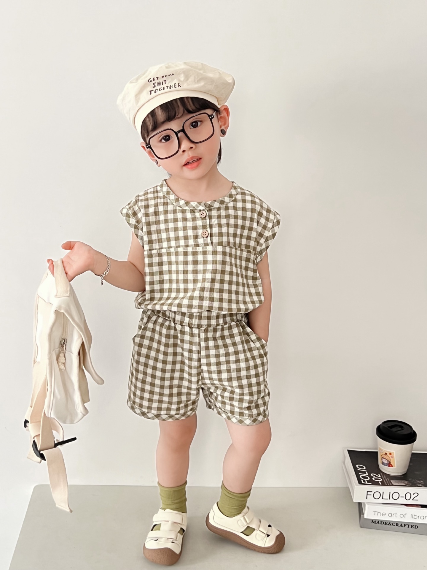 어린이 조끼 세트 2024 여름 한국 스타일 작은 신선한 스타일 민소매 반바지 세트스토어 가기