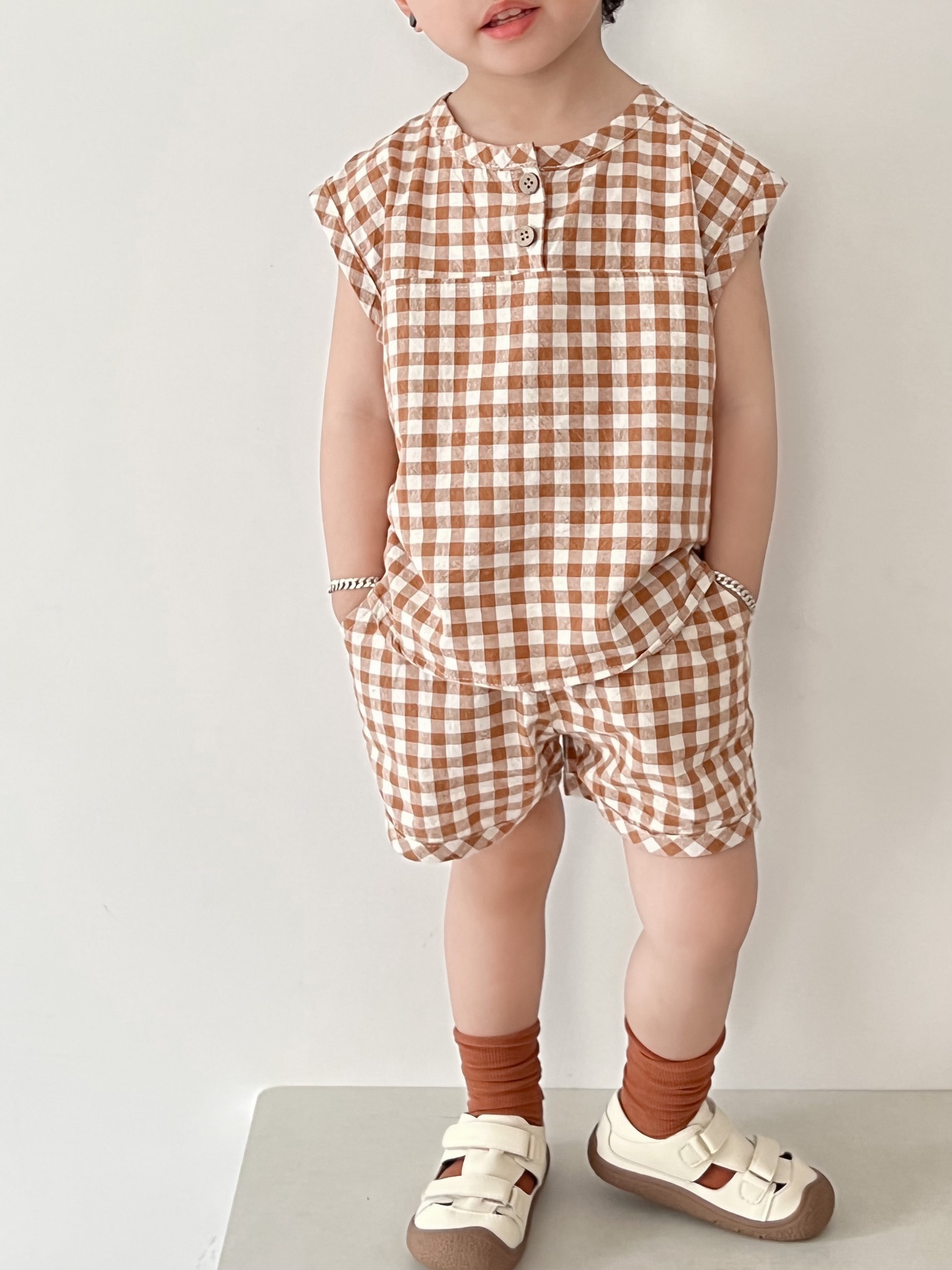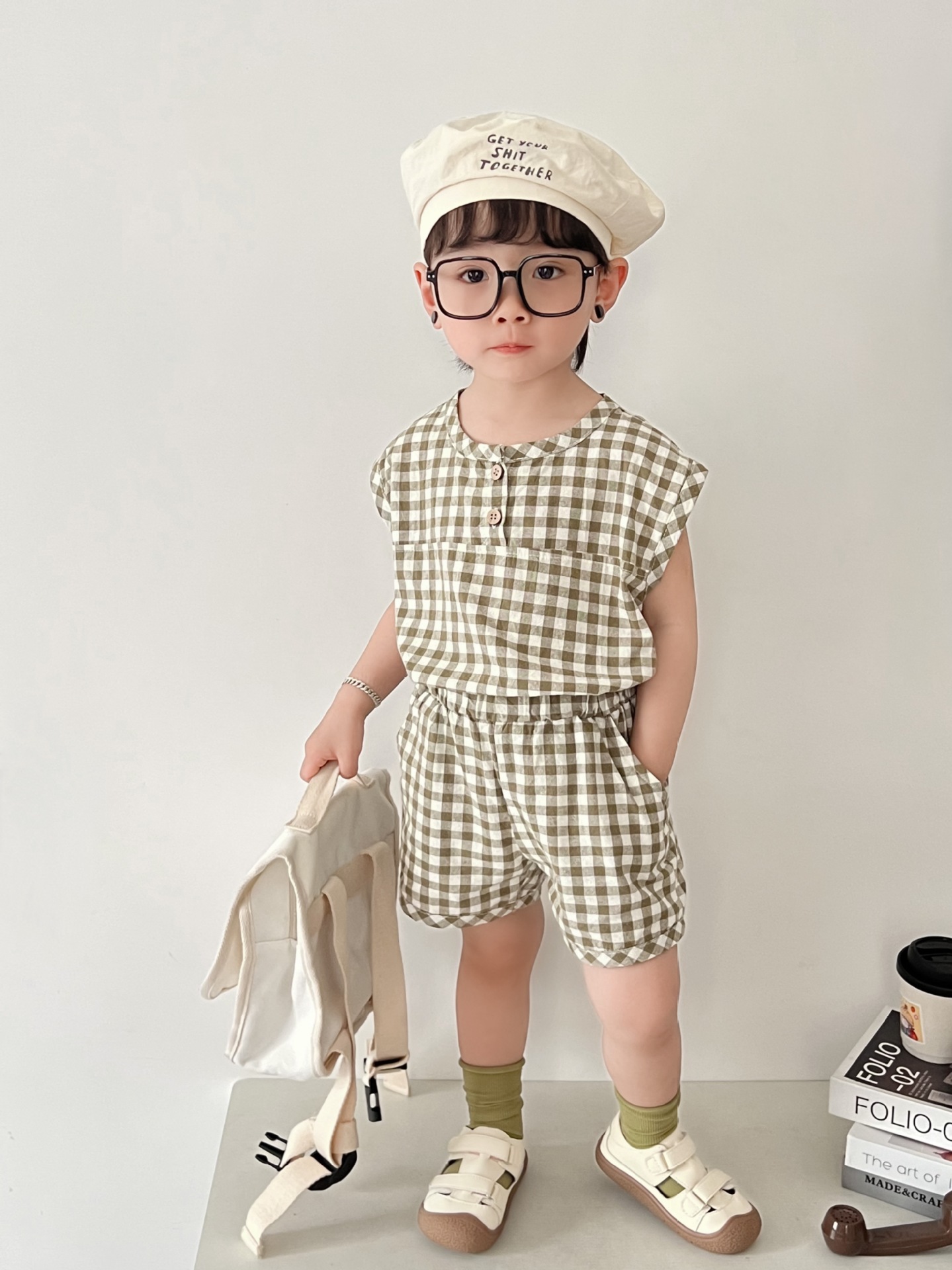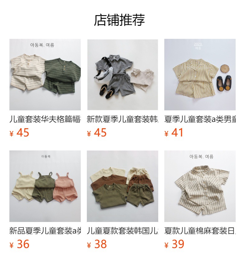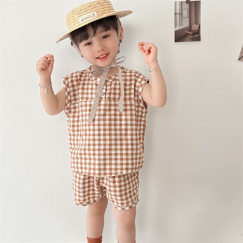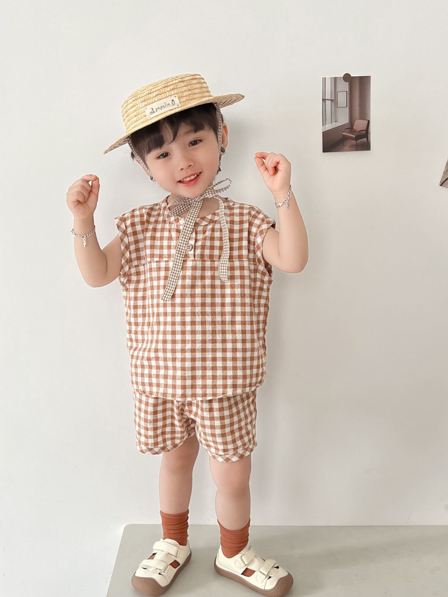 어린이 조끼 세트 2024 여름 한국 스타일 작은 신선한 스타일 민소매 반바지 세트스토어 가기