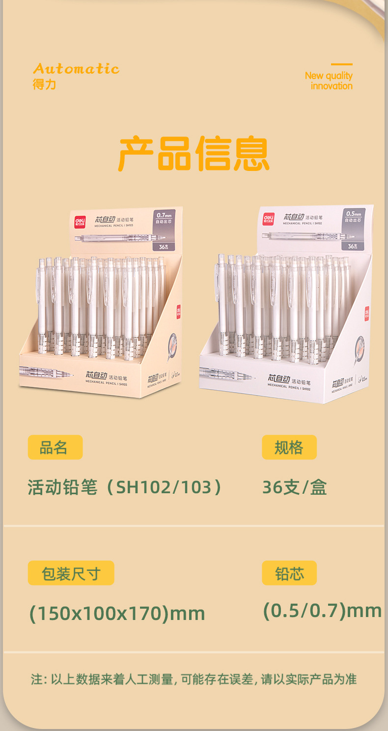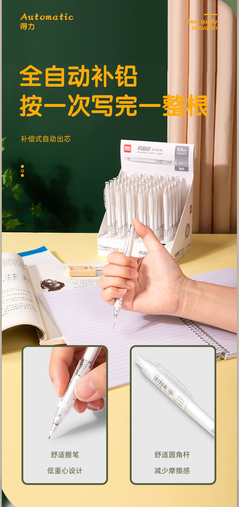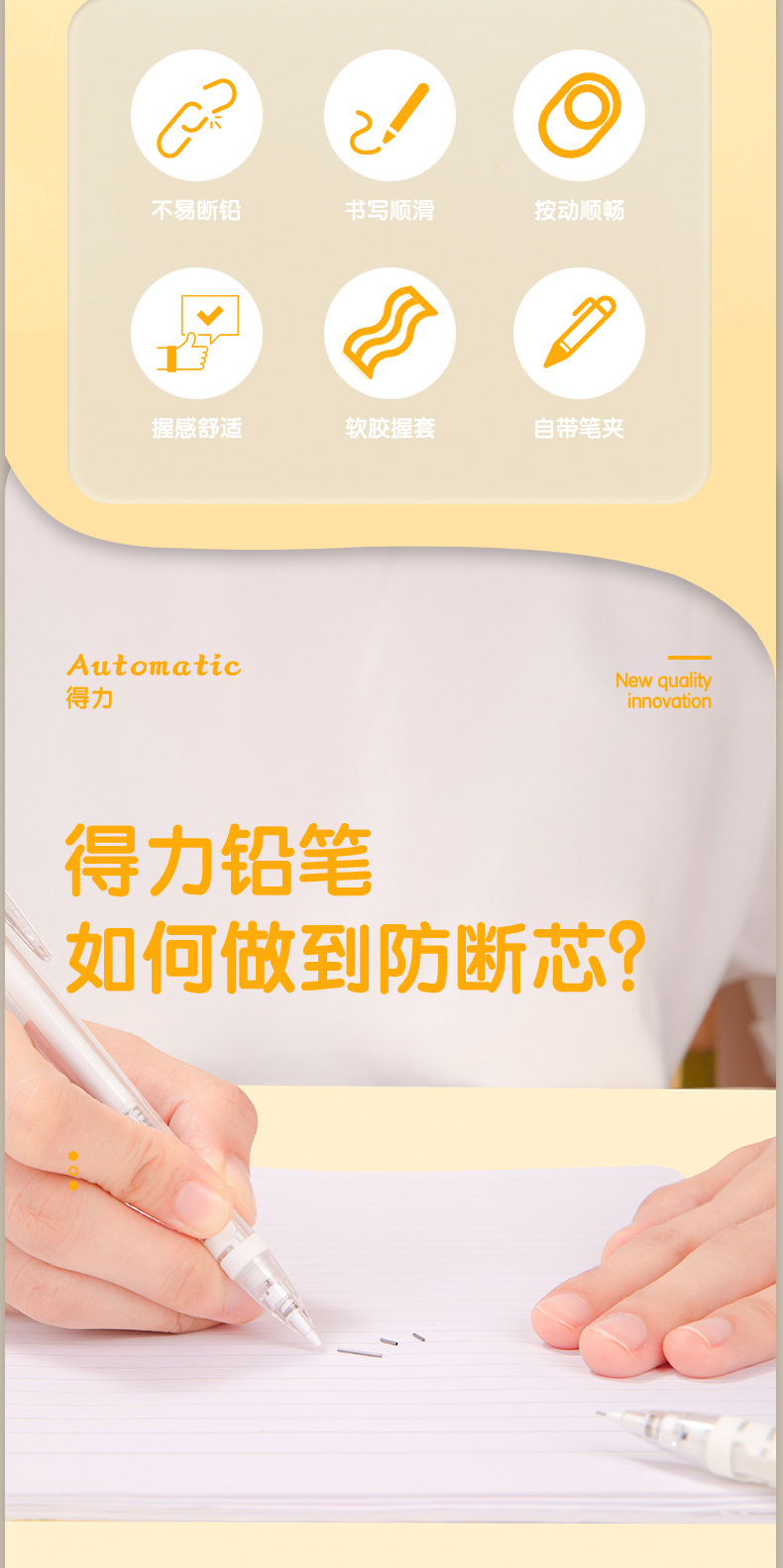 초등학생을위한 델리 자동 연필 0.7 자동 펜을 눌러 지속적으로 자르지 않고 쓰기 0.5 리드 학생 문구스토어 가기