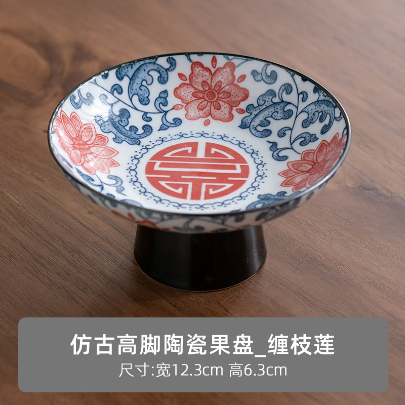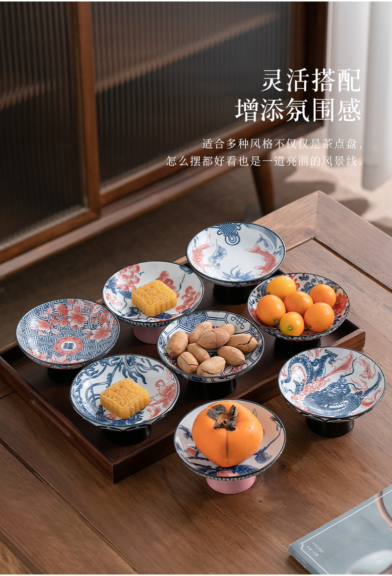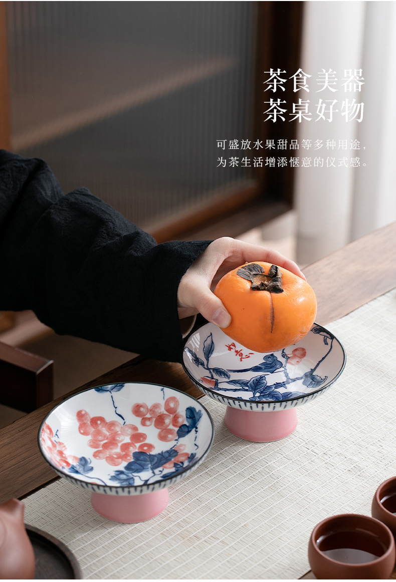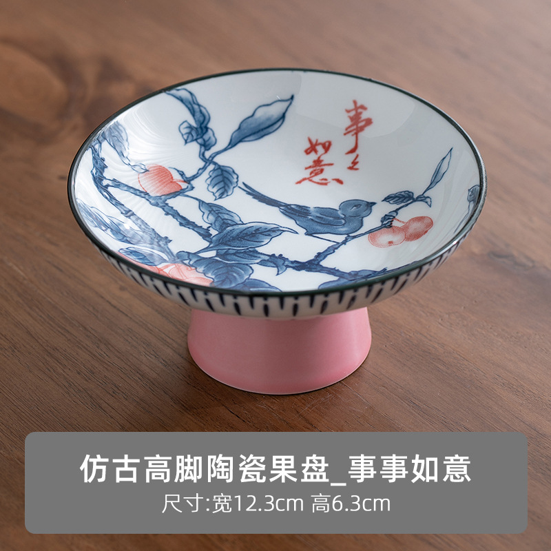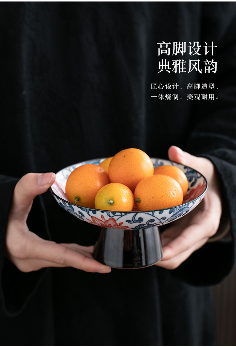 중국 세라믹 블루와 꽃 높은 발 과일 플레이트 창조적 인 상쾌한 플레이트 엔서클 스토브 요리 티 너트 스낵 과일 플레이트 티룸 레스토랑