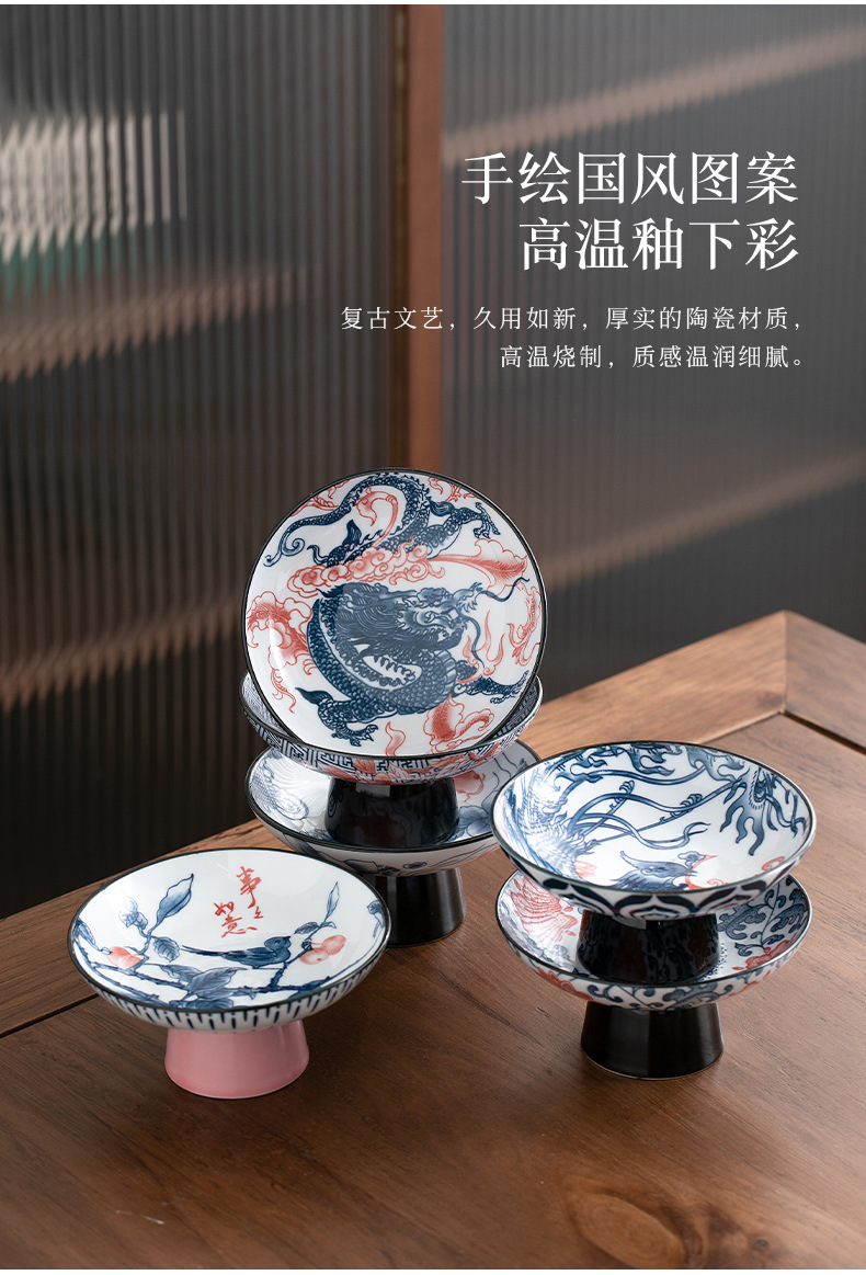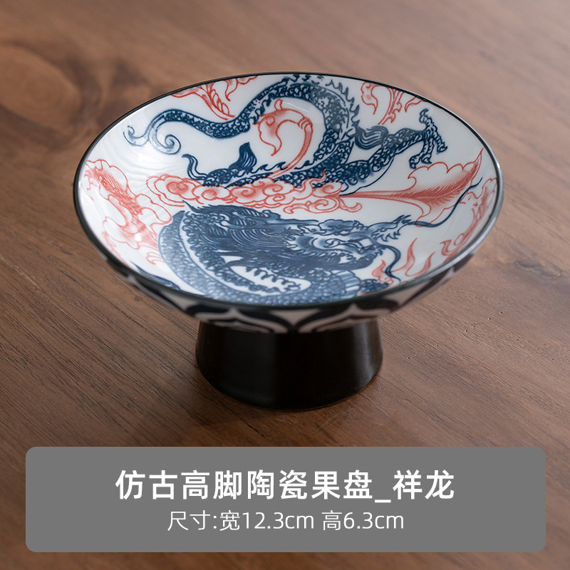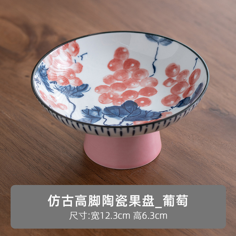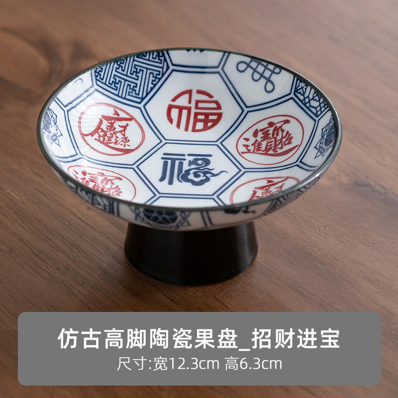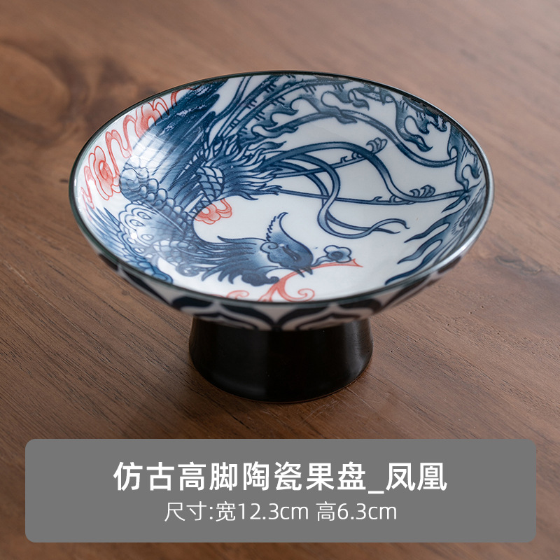 중국 세라믹 블루와 꽃 높은 발 과일 플레이트 창조적 인 상쾌한 플레이트 엔서클 스토브 요리 티 너트 스낵 과일 플레이트 티룸 레스토랑