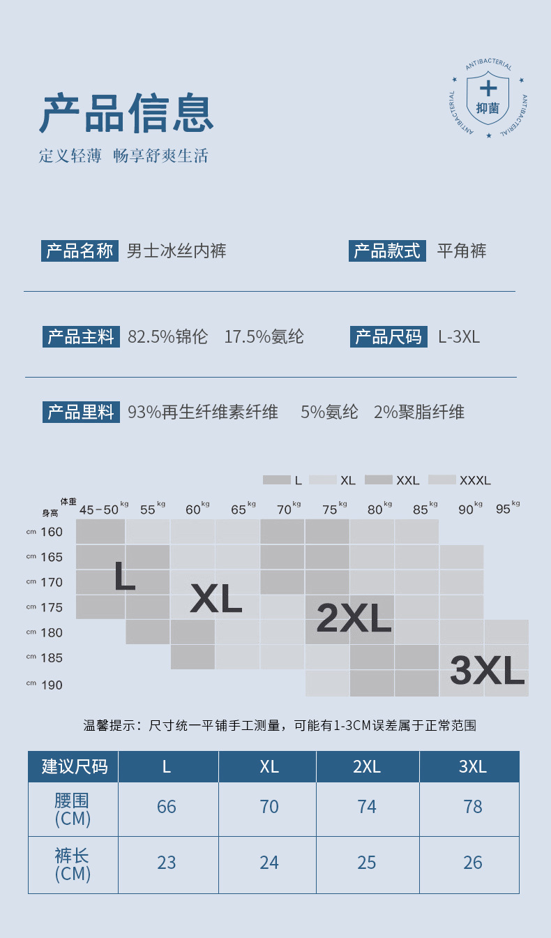 여름용 아이스 실크 무봉제 남성 속옷 중간 허리 항균 사각팬티 남성용 속건 통기성 아이스감 남성 사각팬티스토어 가기
