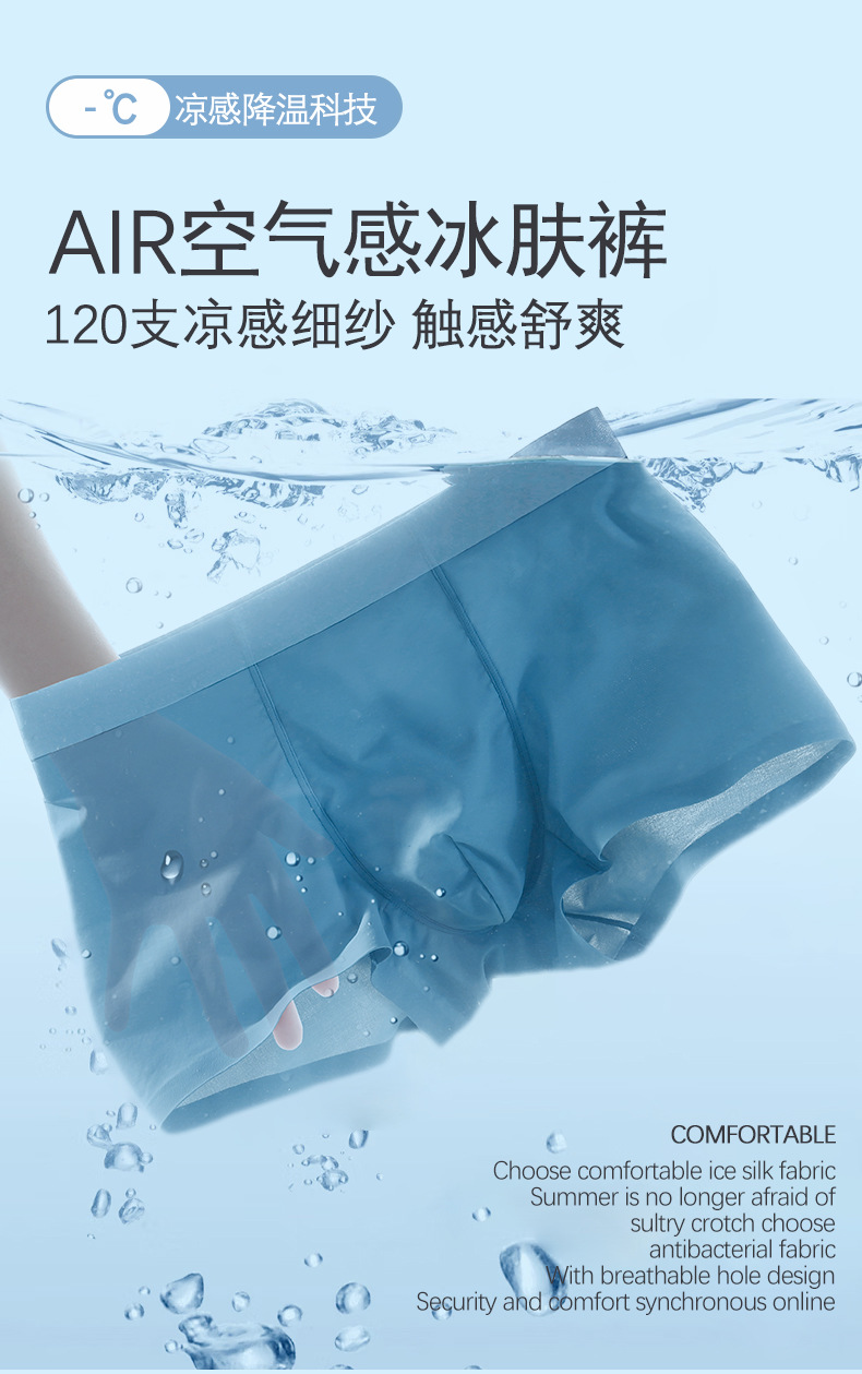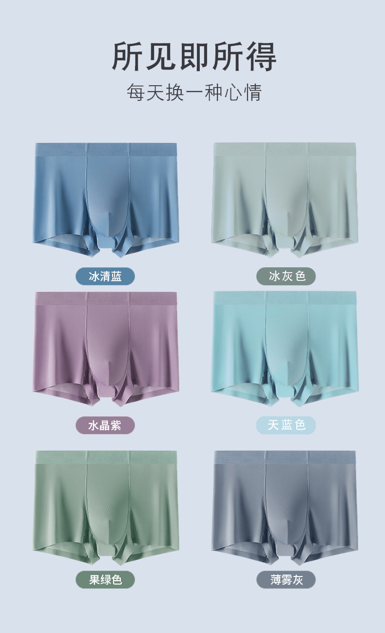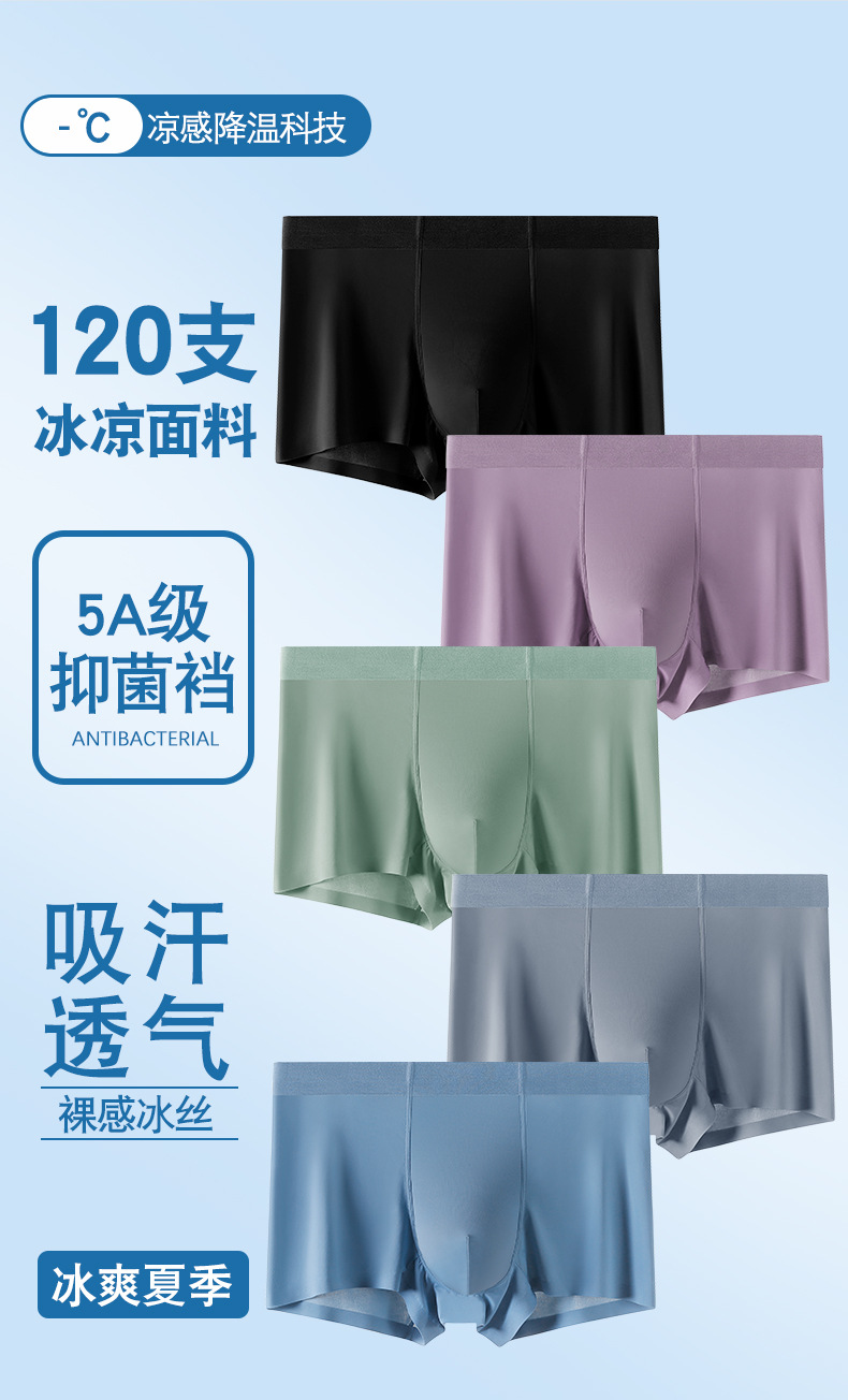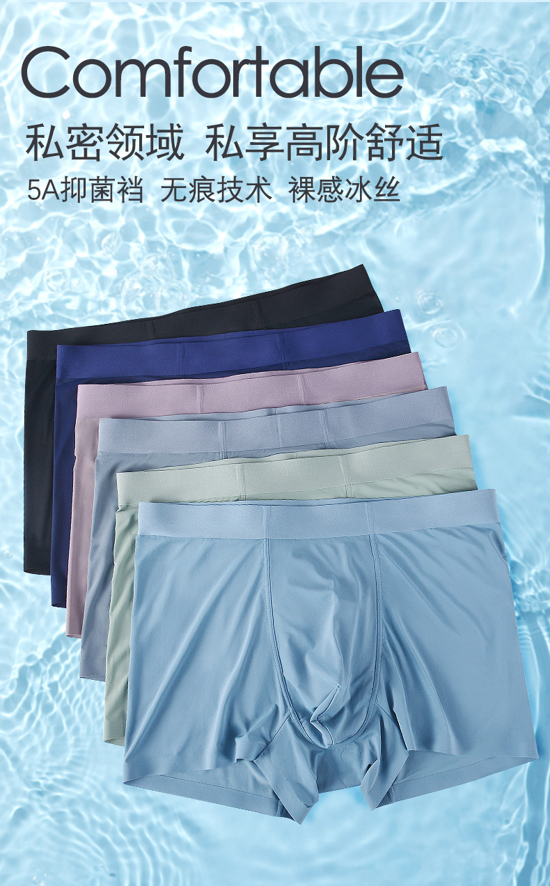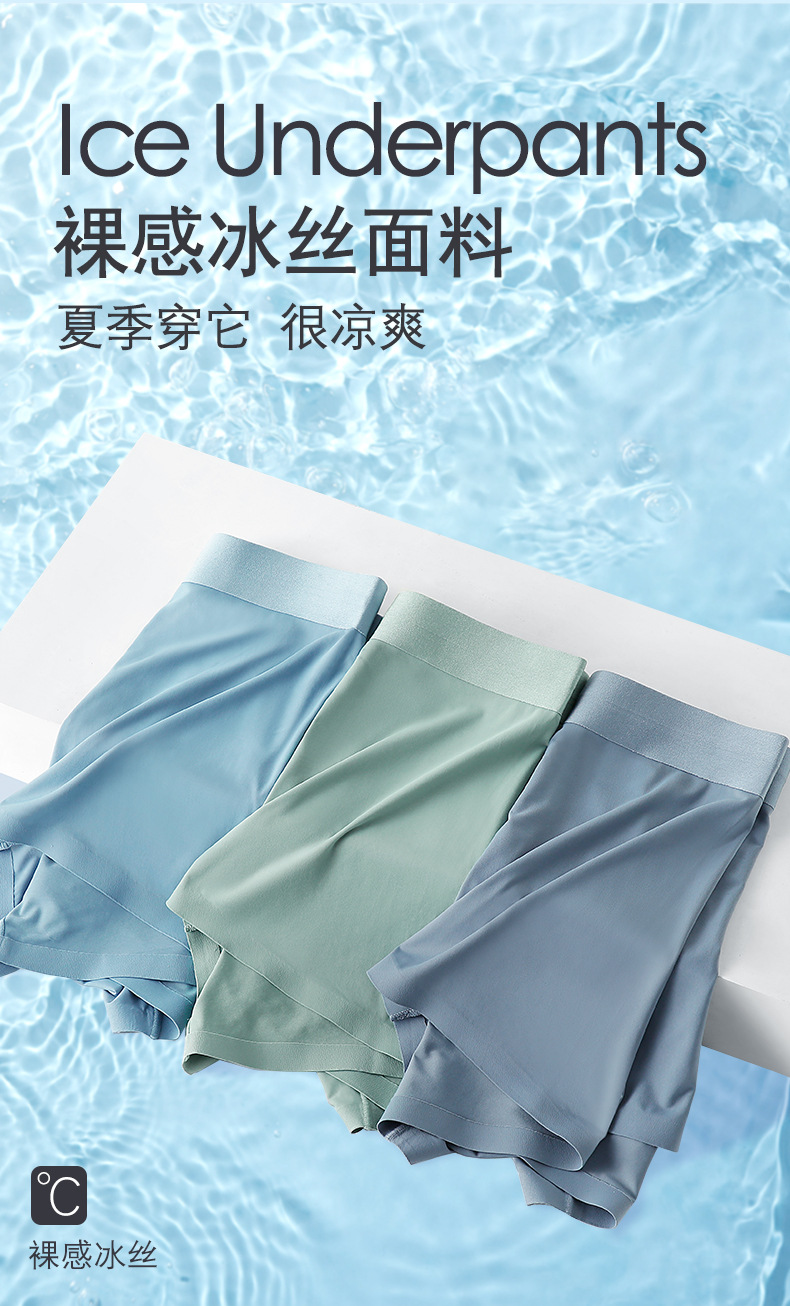 여름용 아이스 실크 무봉제 남성 속옷 중간 허리 항균 사각팬티 남성용 속건 통기성 아이스감 남성 사각팬티