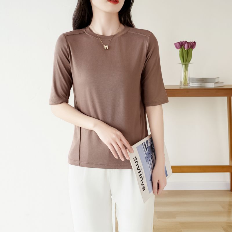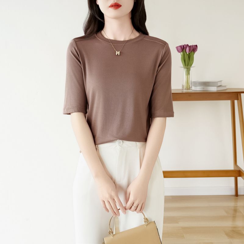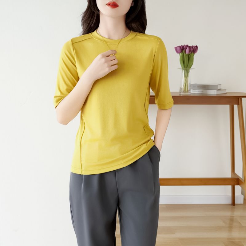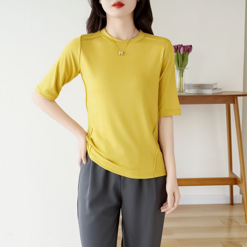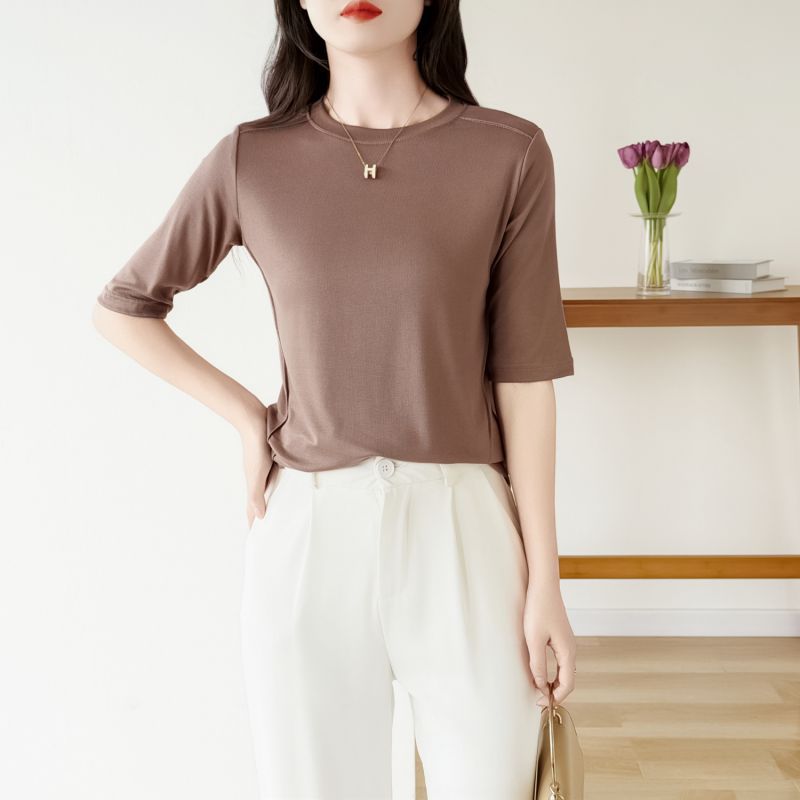 Threaded Mid-Sleeve 티셔츠 여성용 여름 라운드 넥 탑 웨스턴 스타일 올 매치 슬림 슬리밍베이스 레이어 셔츠 반소매 트렌디 티셔츠