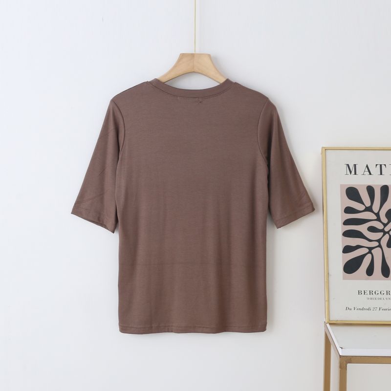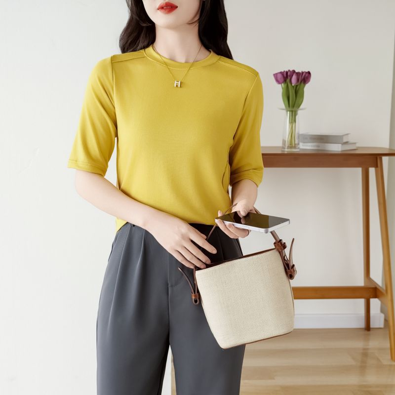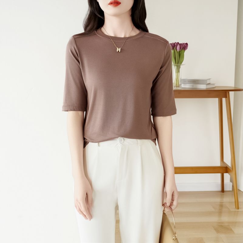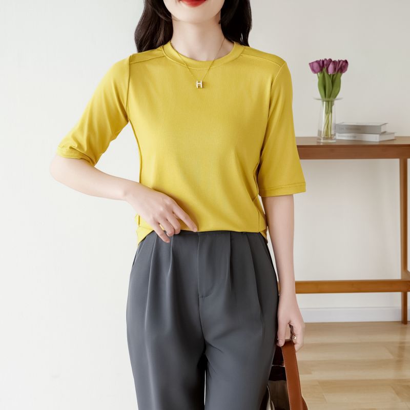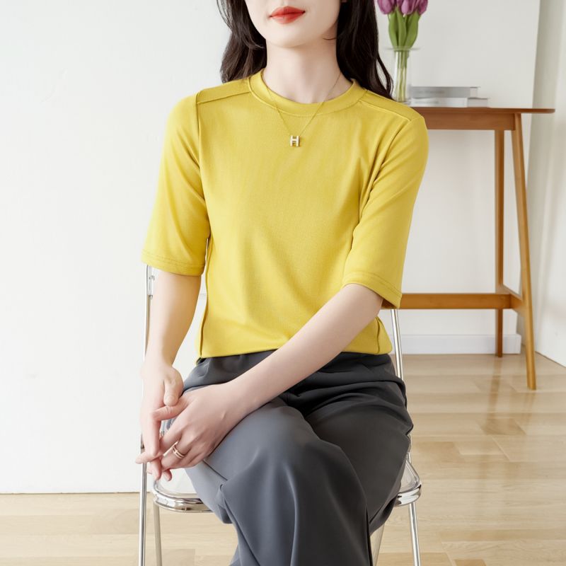 Threaded Mid-Sleeve 티셔츠 여성용 여름 라운드 넥 탑 웨스턴 스타일 올 매치 슬림 슬리밍베이스 레이어 셔츠 반소매 트렌디 티셔츠