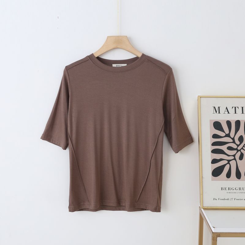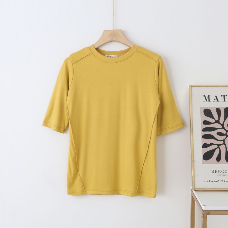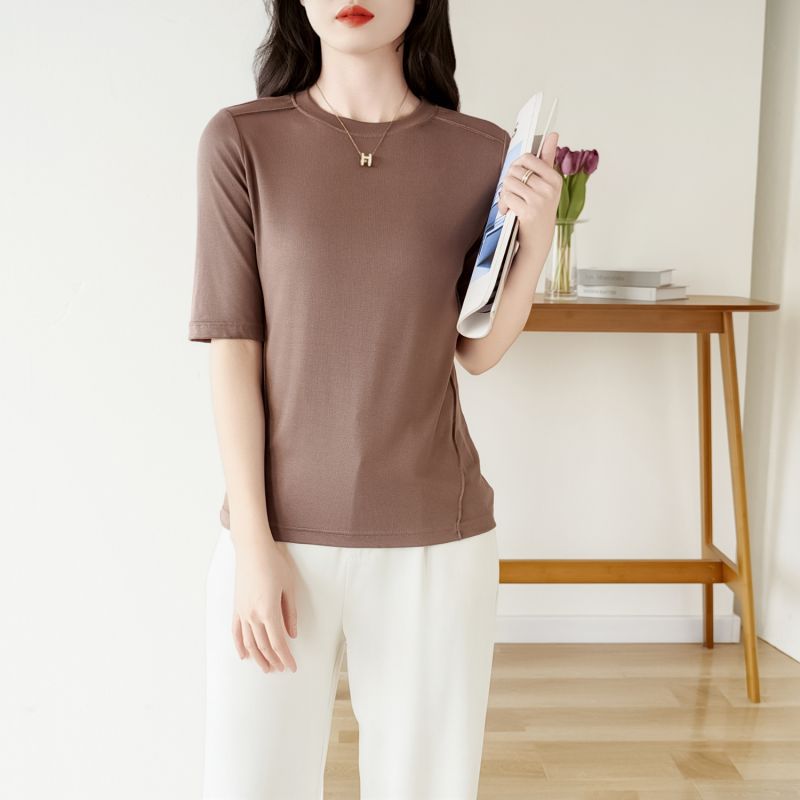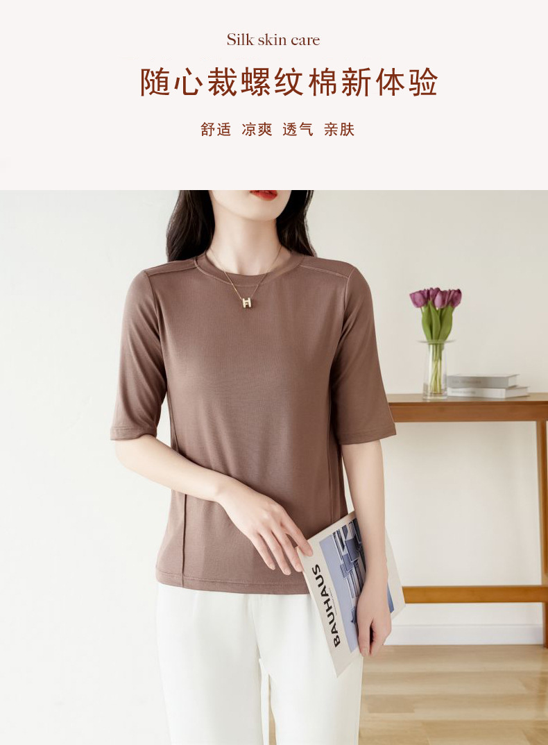 Threaded Mid-Sleeve 티셔츠 여성용 여름 라운드 넥 탑 웨스턴 스타일 올 매치 슬림 슬리밍베이스 레이어 셔츠 반소매 트렌디 티셔츠스토어 가기