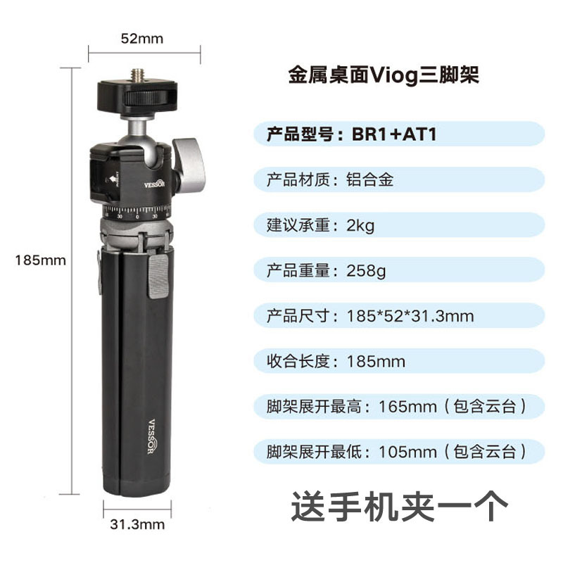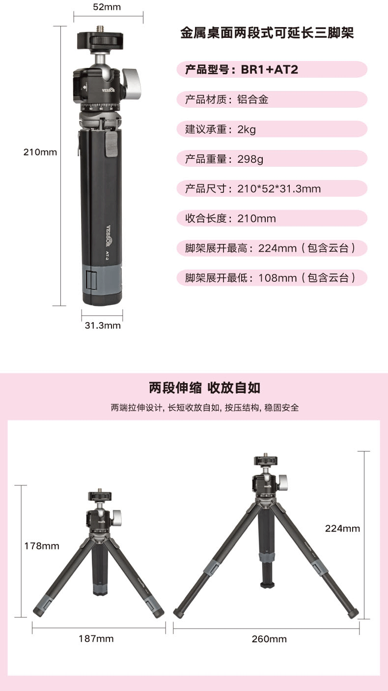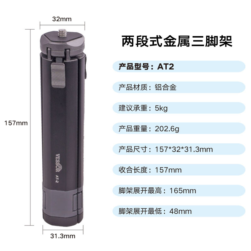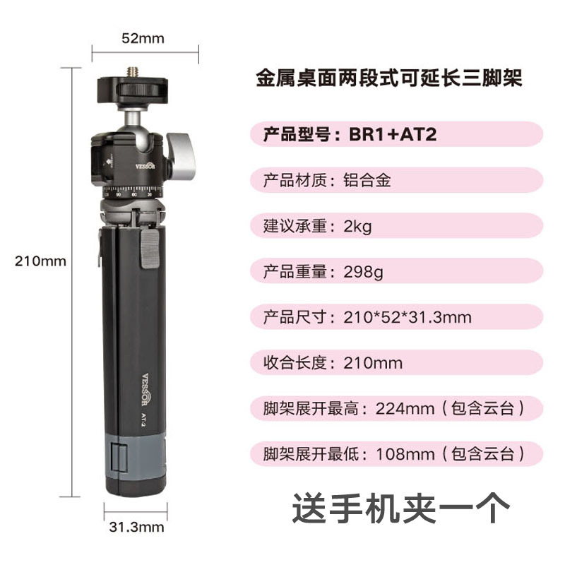 Youma Chuang 금속 2 세그먼트 데스크탑 삼각대 콜드 부츠 PTZ 휴대 전화 마이크로 SLR 카메라 휴대용 스탠드 안정제