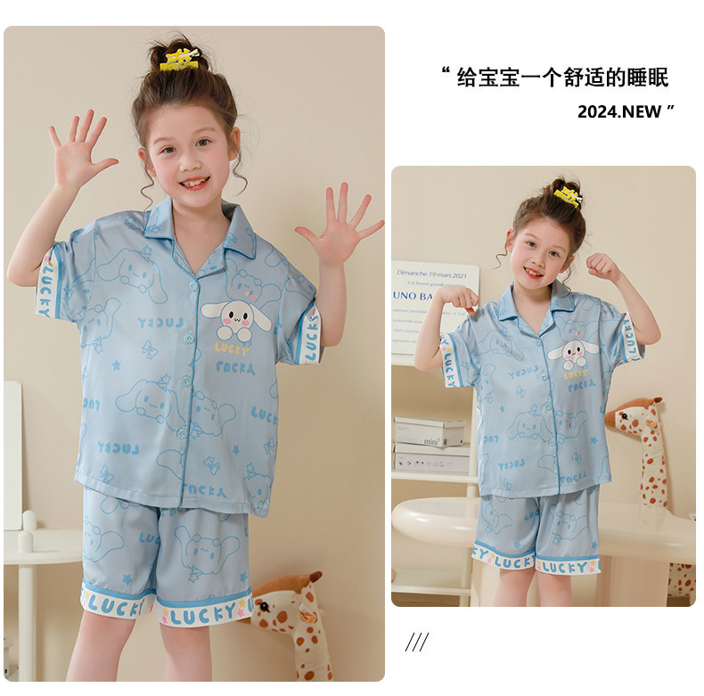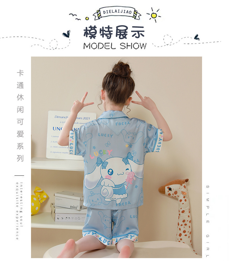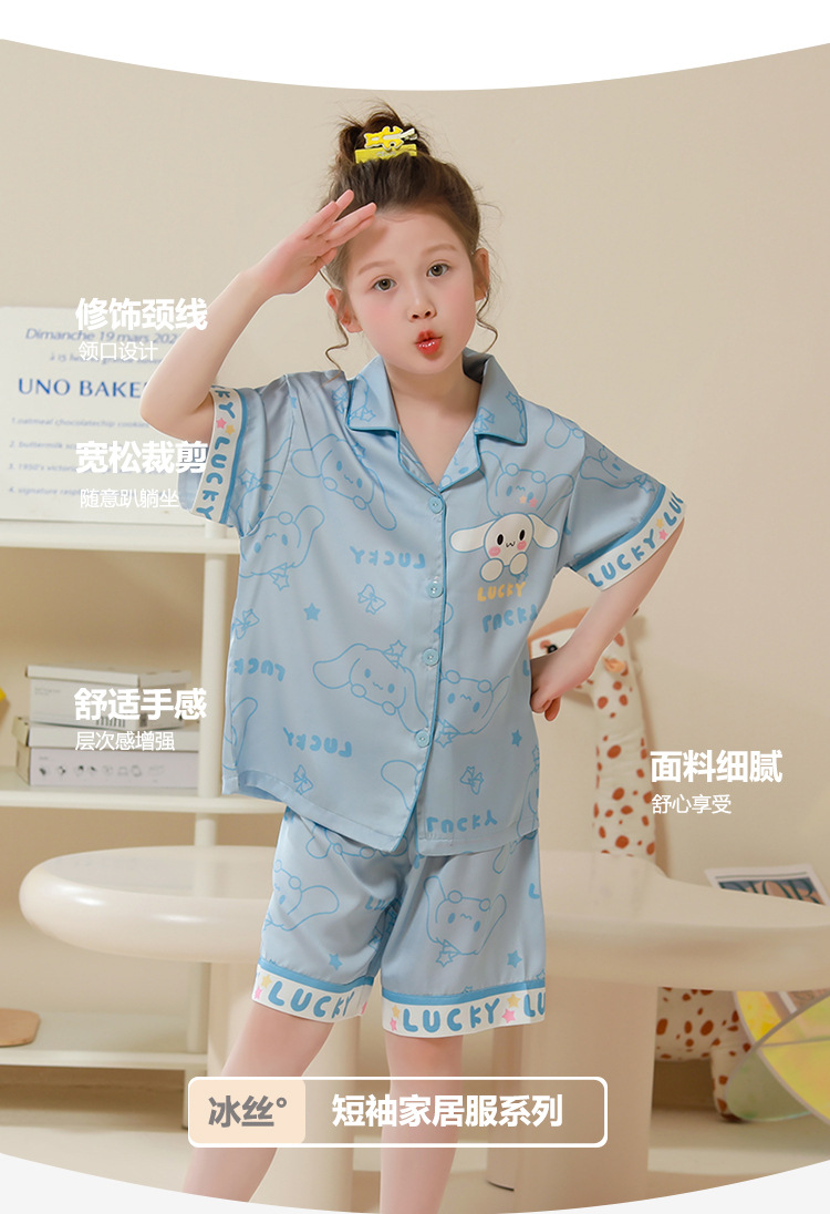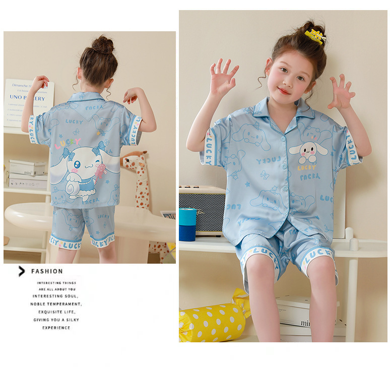 여름 어린이 잠옷 아이스 실크 반팔 얇은 만화 소녀 학생 중 큰 어린이 겉옷 홈 세트스토어 가기