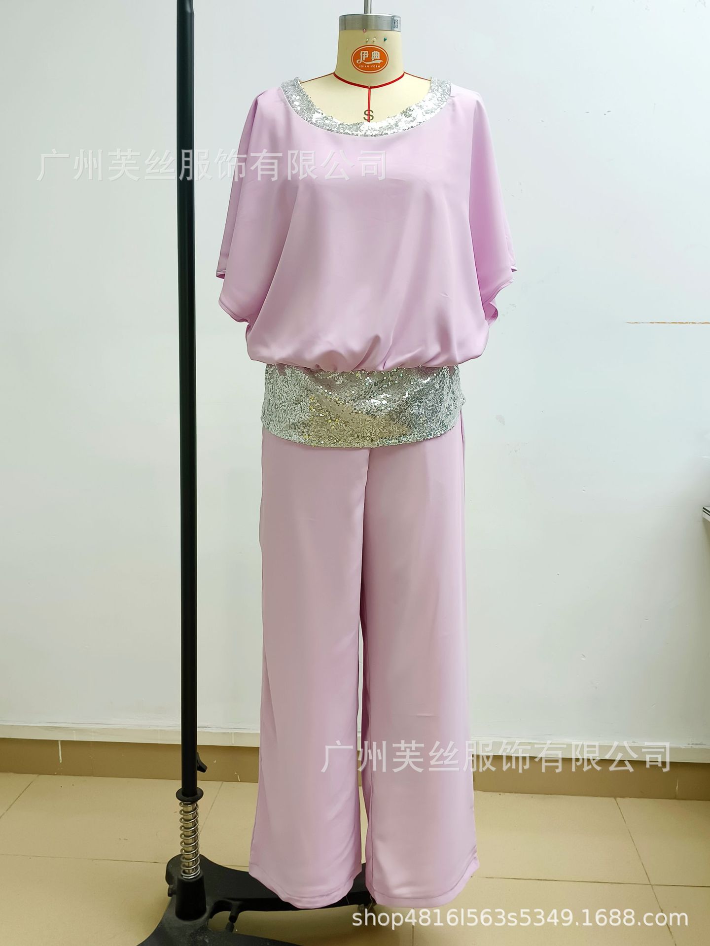 국경 간 대외 무역 유럽 및 미국 2024 새로운 세트 아마존 크루 넥 컬러 박쥐 셔츠 넓은 다리 바지스토어 가기