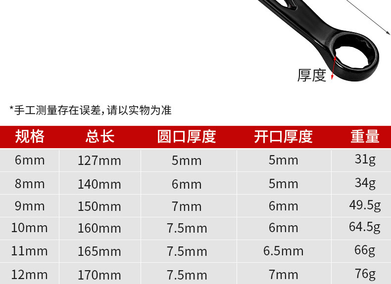 6-24mm 다기능 범용 링 렌치 전체 세트 가정용 확장 블랙 더블 헤드 이중 목적 링 렌치