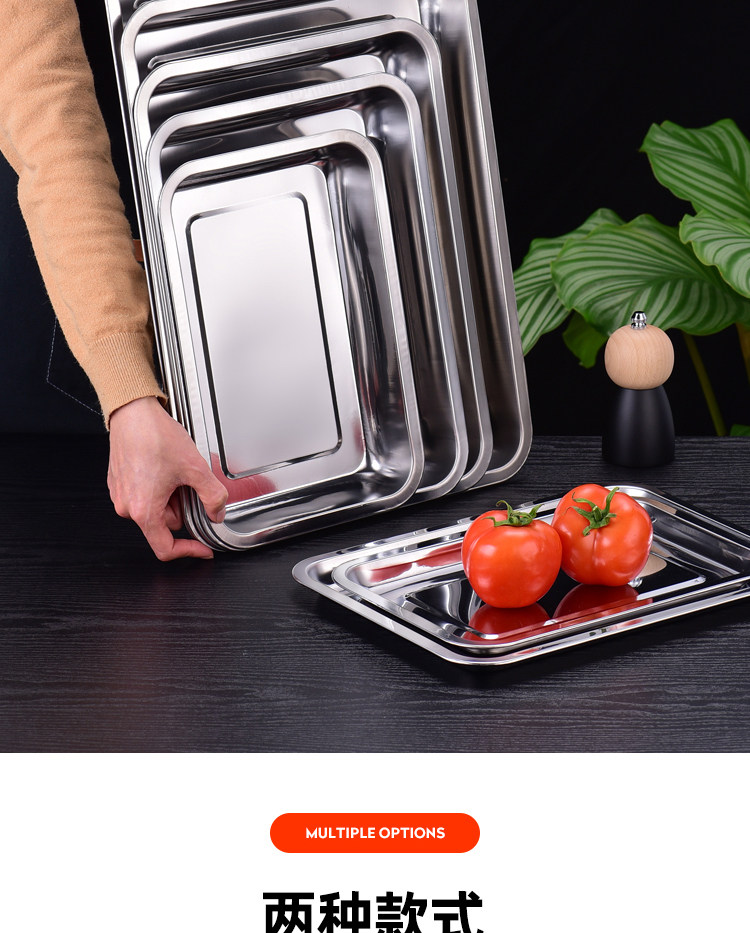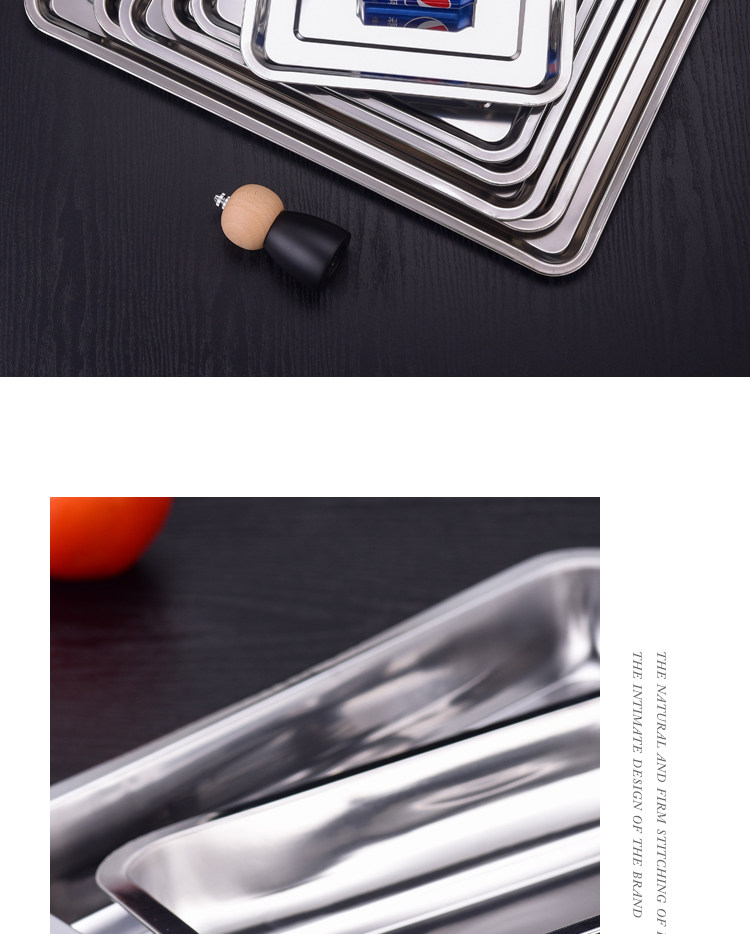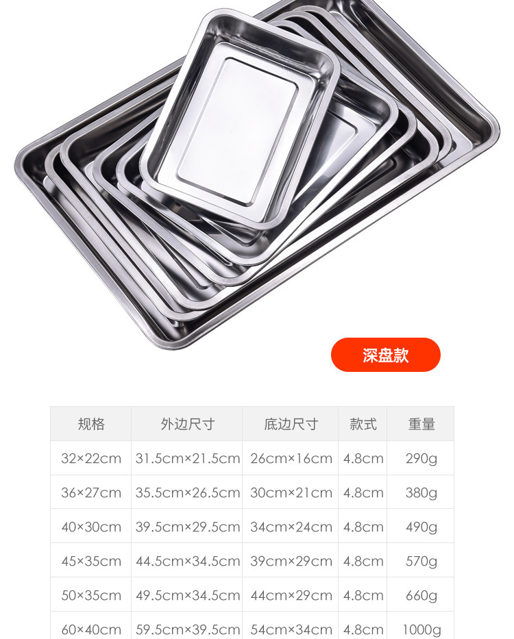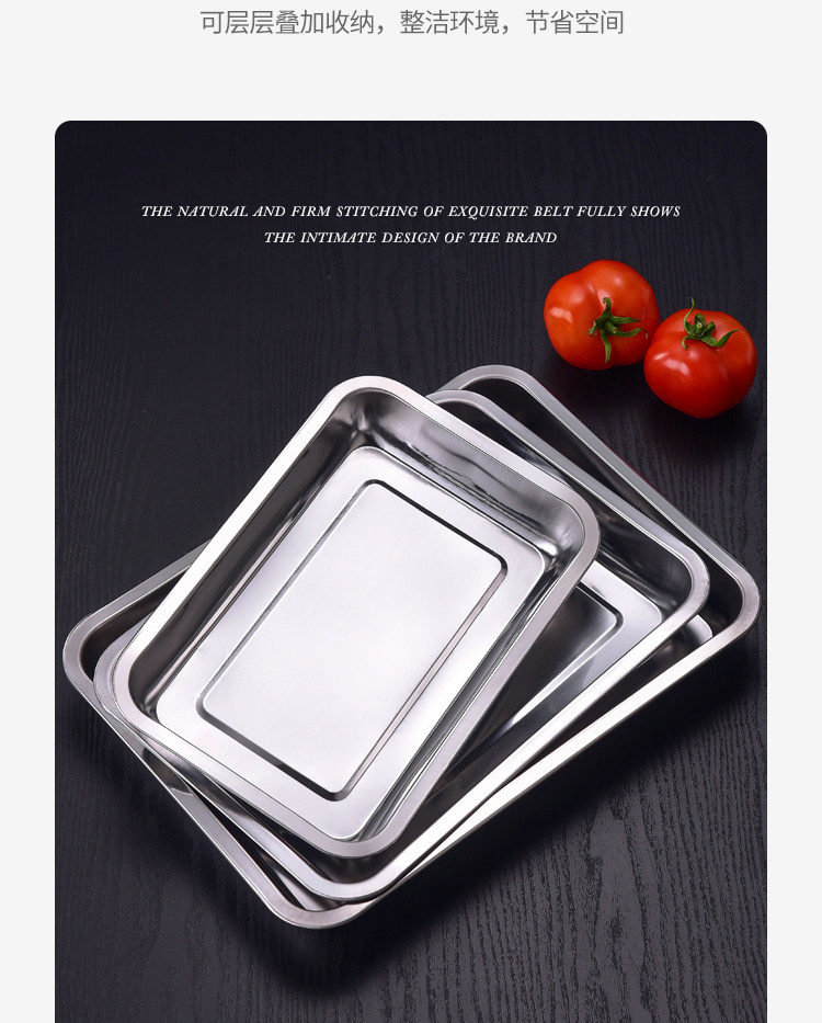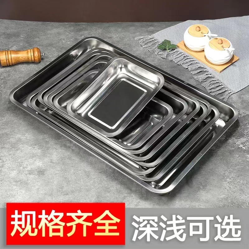 304 스테인레스 스틸 트레이 두꺼운 사각 플레이트 직사각형 상업 찐 쌀판 가정용 접시 딥 만두 플레이트 바베큐 플레이트스토어 가기