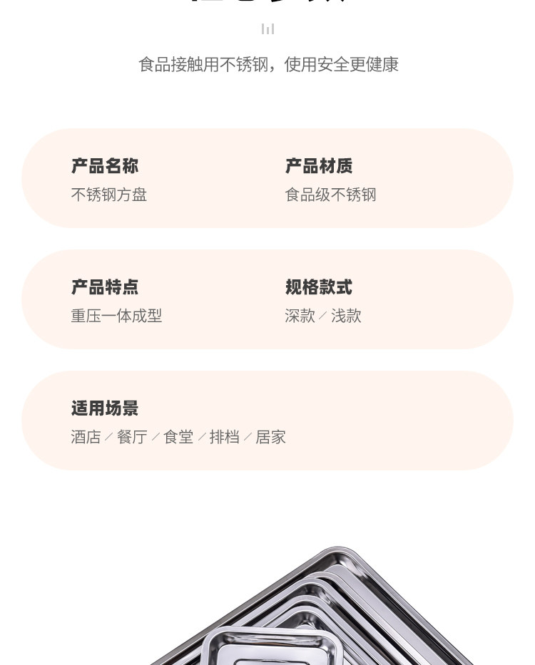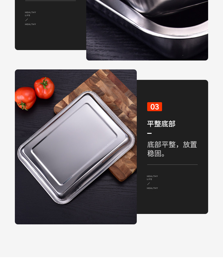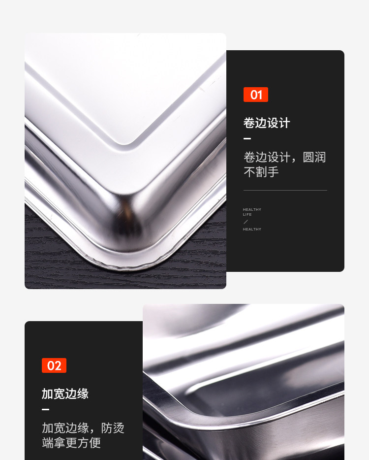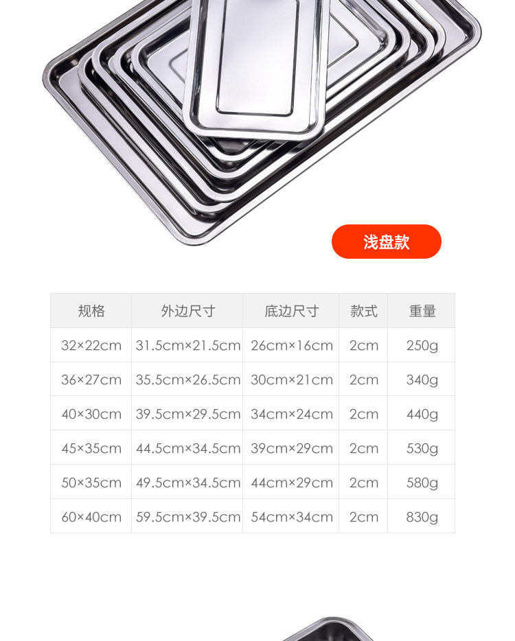 304 스테인레스 스틸 트레이 두꺼운 사각 플레이트 직사각형 상업 찐 쌀판 가정용 접시 딥 만두 플레이트 바베큐 플레이트스토어 가기