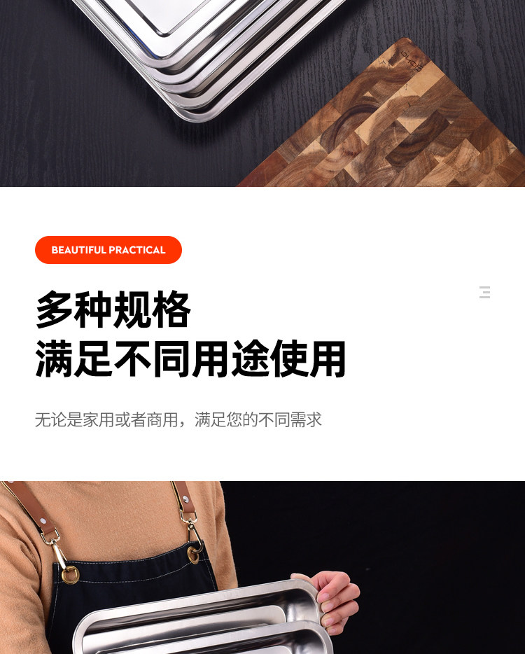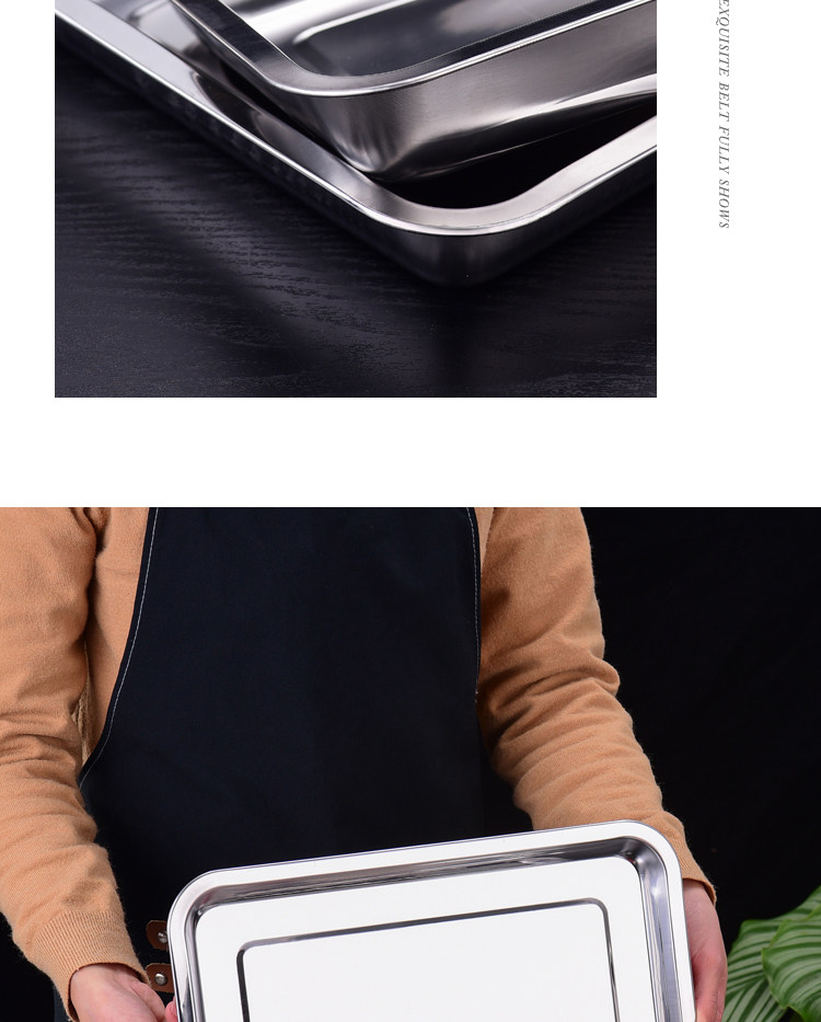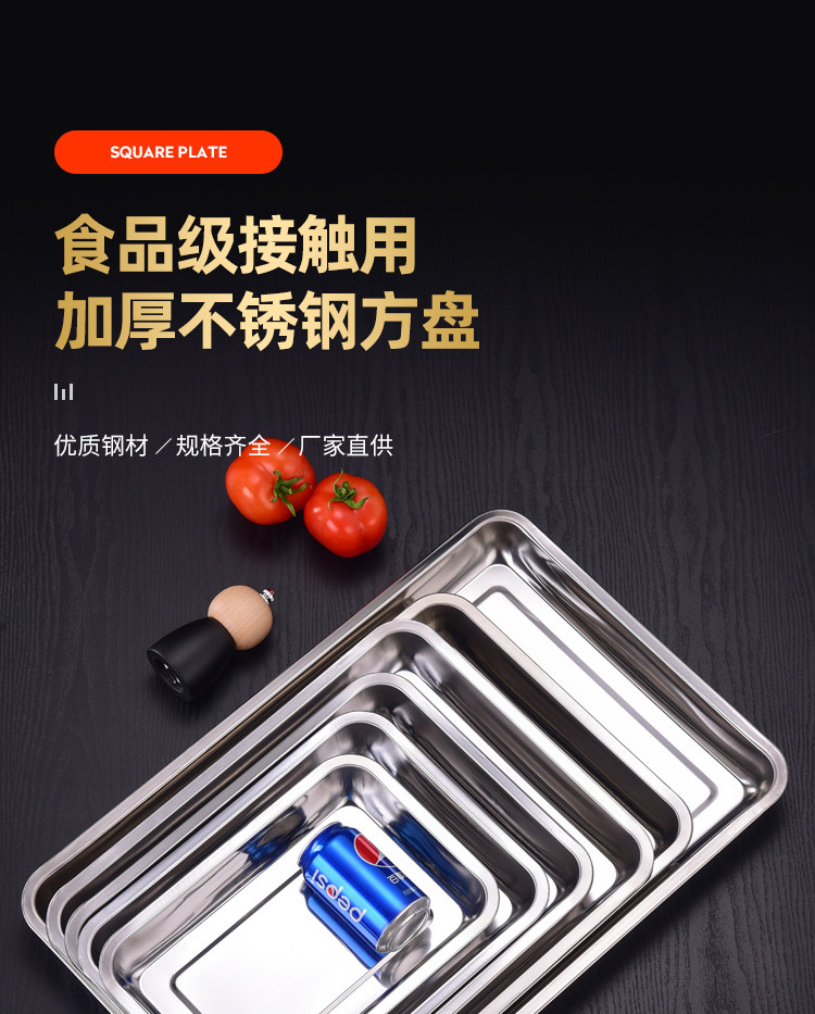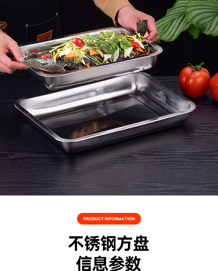 304 스테인레스 스틸 트레이 두꺼운 사각 플레이트 직사각형 상업 찐 쌀판 가정용 접시 딥 만두 플레이트 바베큐 플레이트