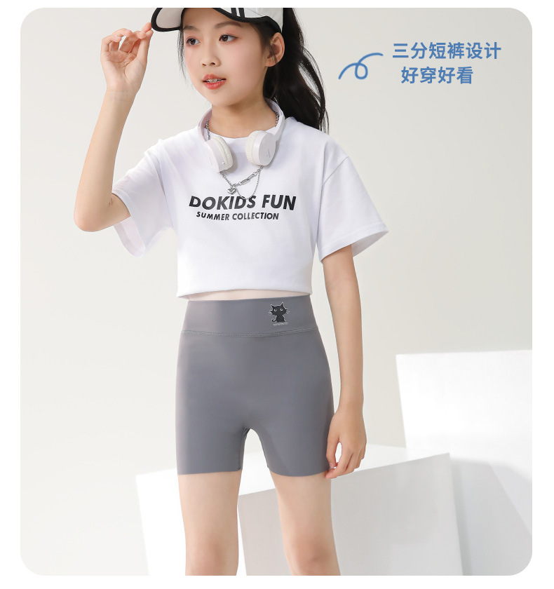 여아용 3점 샤크팬츠, 아동용 레깅스, 여름용 얇은 노출방지반바지, 여아용 요가타이츠