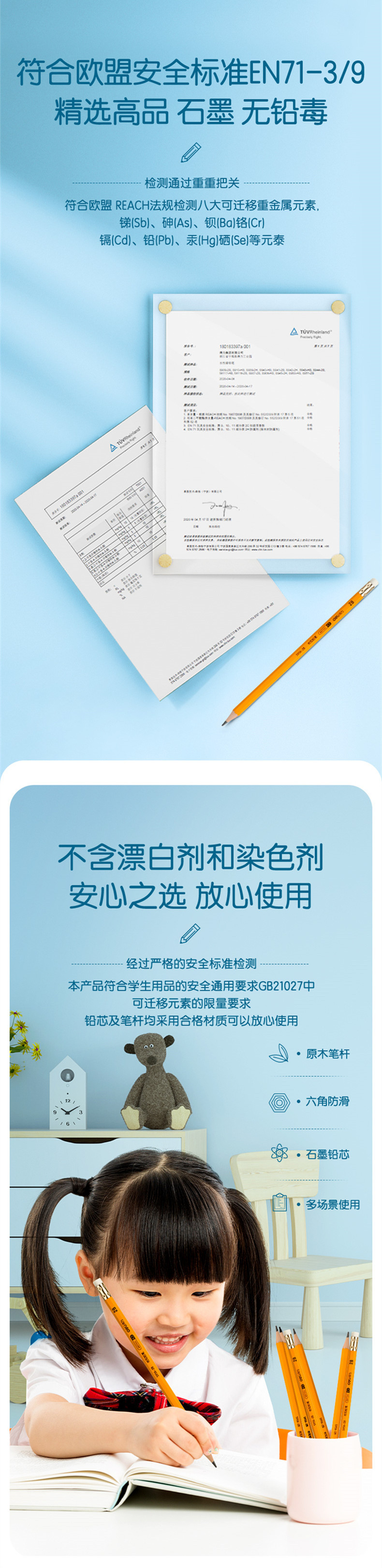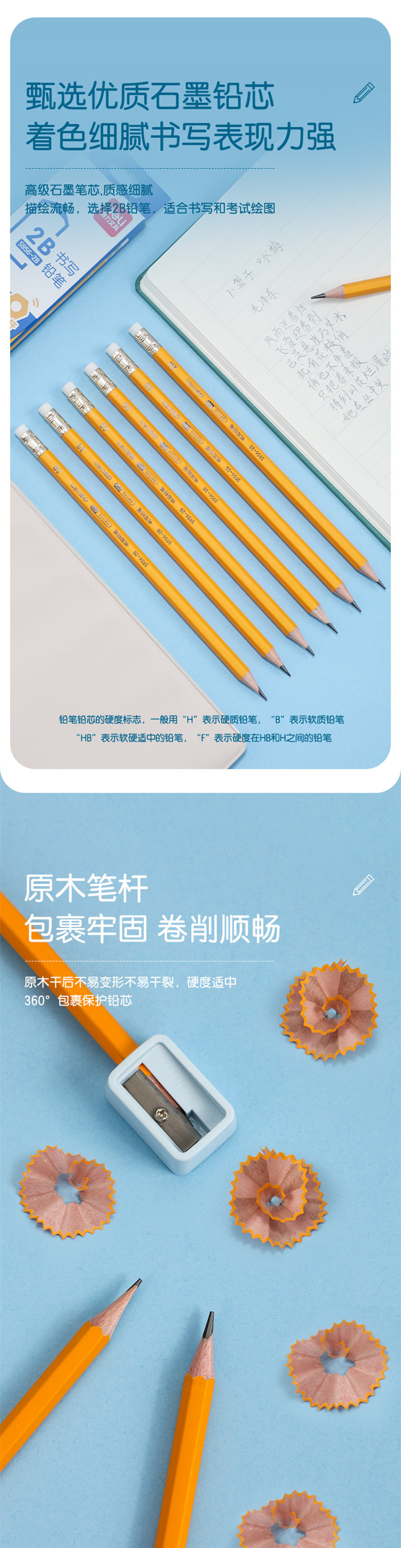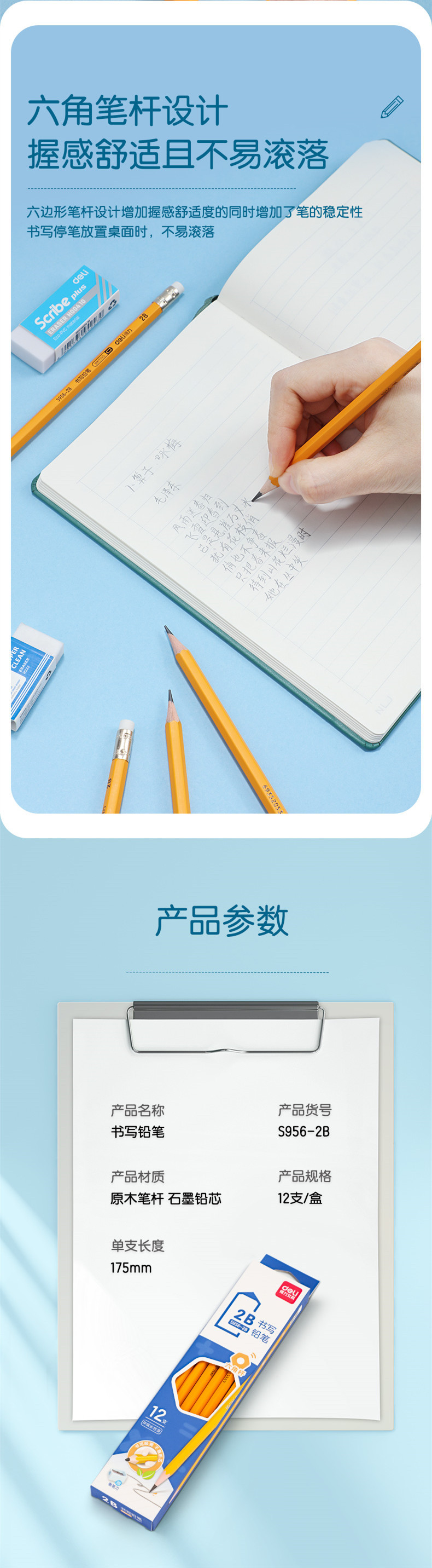 델리 S956-2B/HB 옐로우 로드 오피스 가죽 헤드 연필 육각형 로드 어린이 학생 드로잉 테스트 연필 쓰기