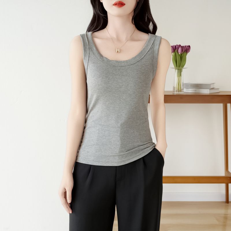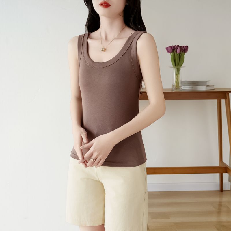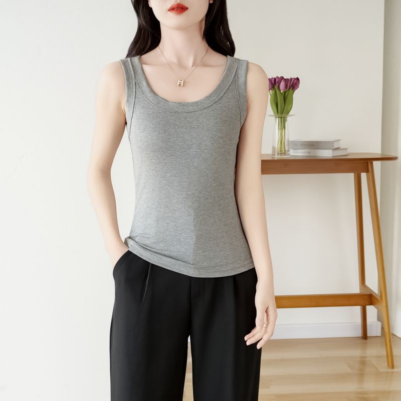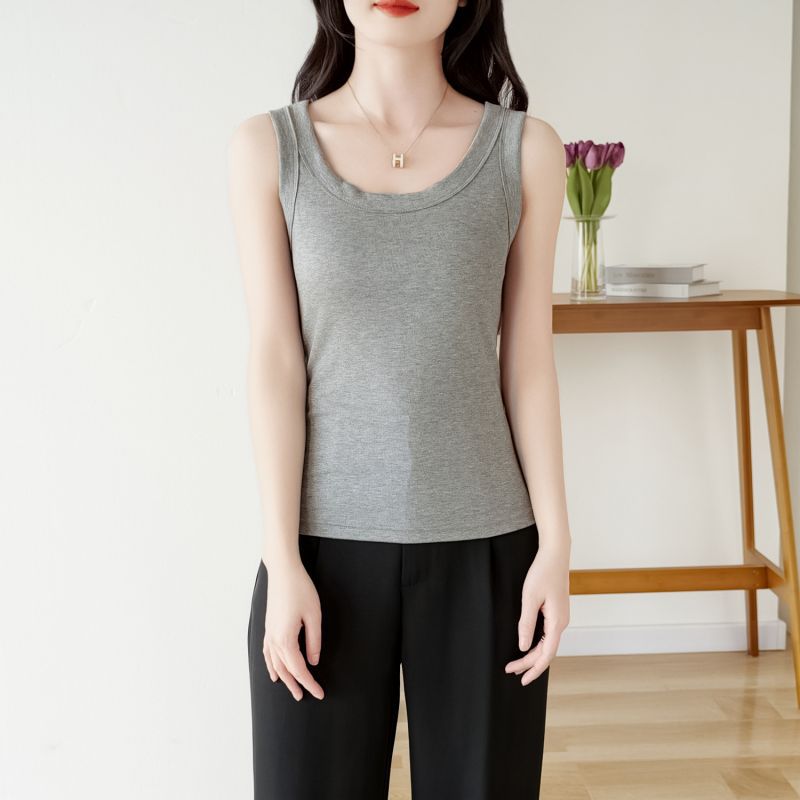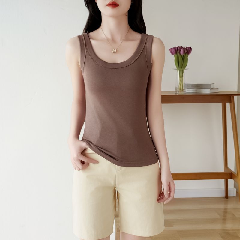 Threaded Camisole 여성의 봄과 여름 얇은 슬림 핏 슬리밍 민자베이스 셔츠 높은 탄성 간단한 탑 작은 셔츠