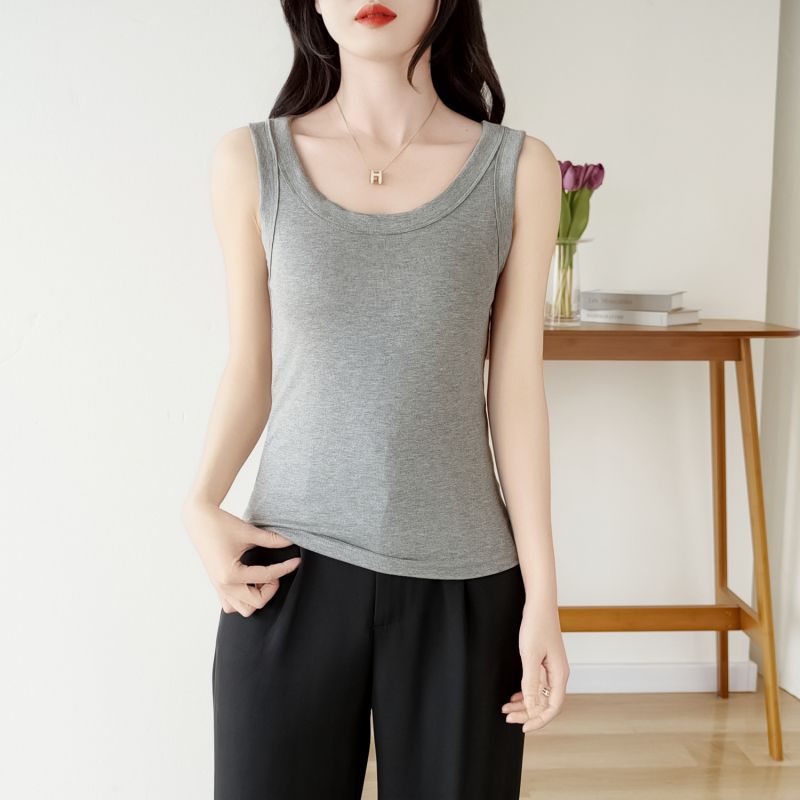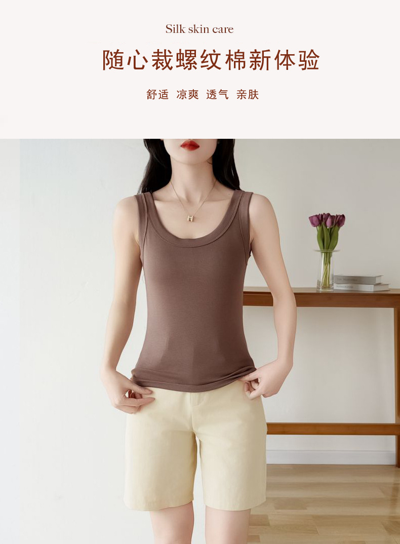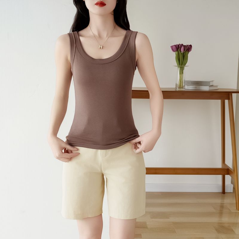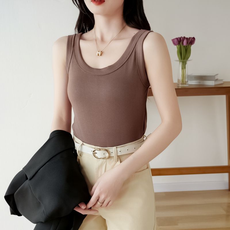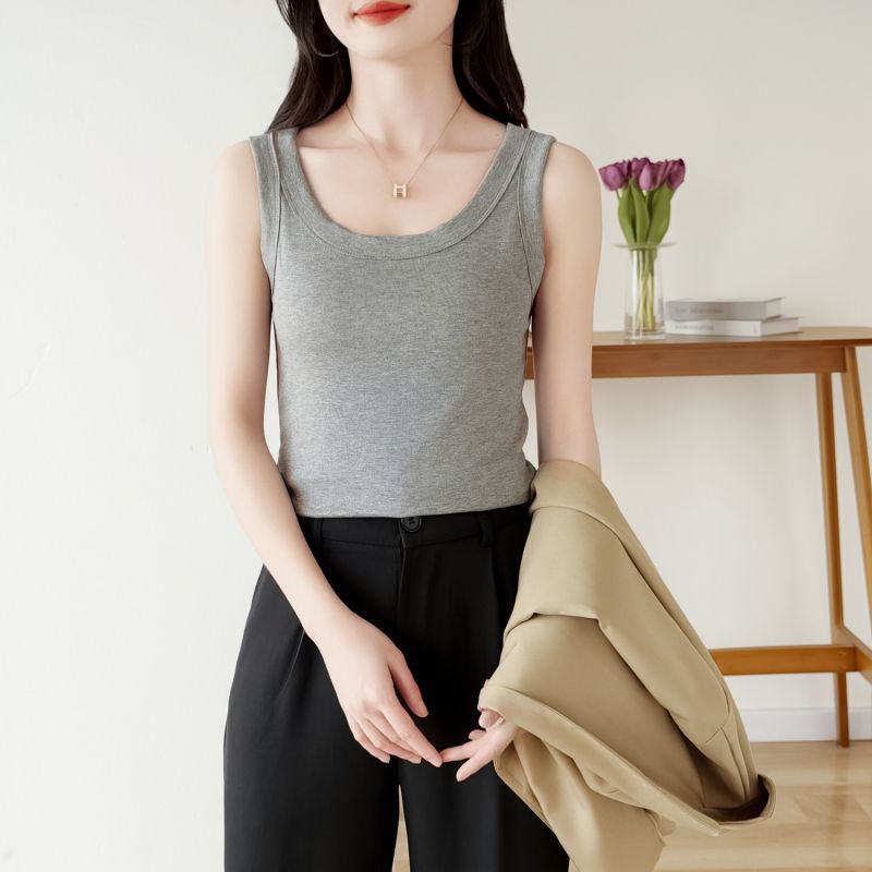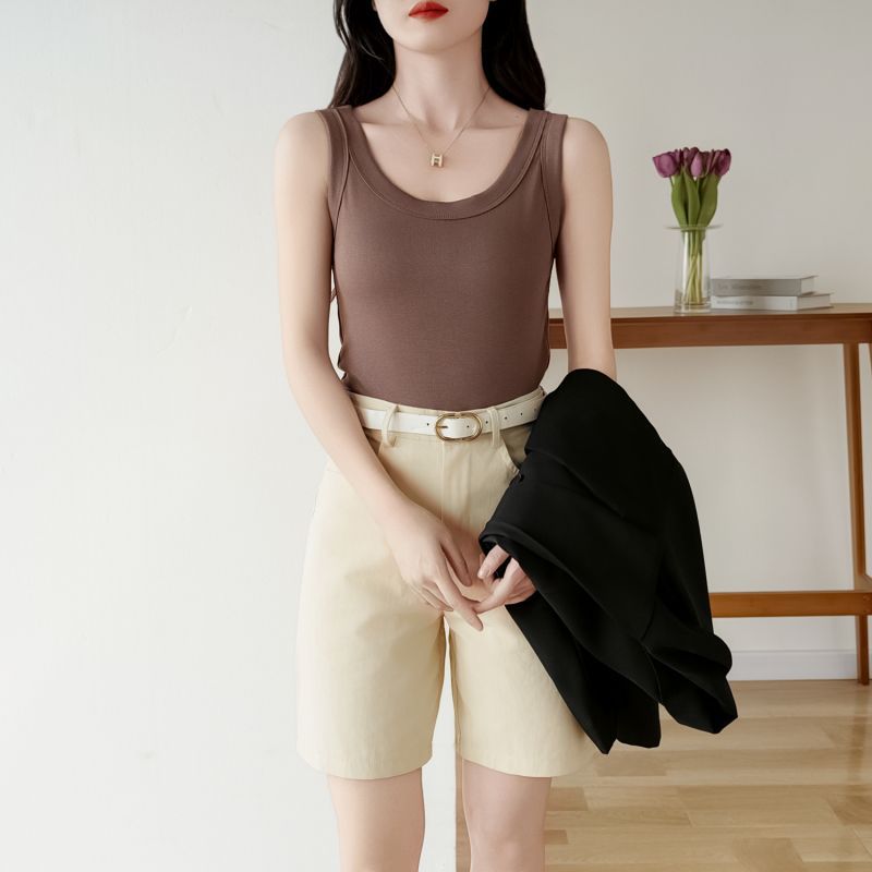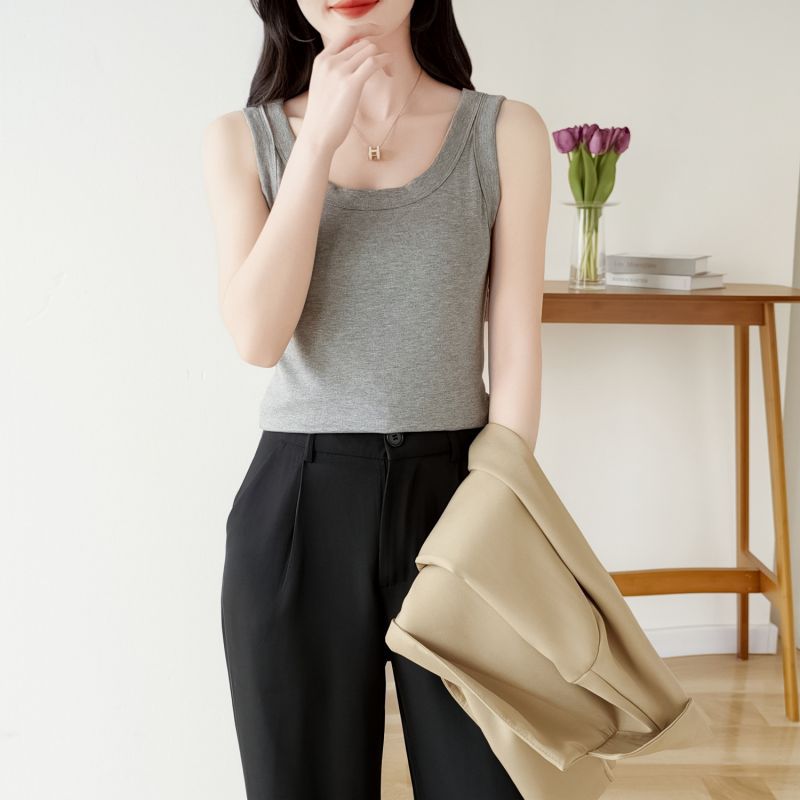 Threaded Camisole 여성의 봄과 여름 얇은 슬림 핏 슬리밍 민자베이스 셔츠 높은 탄성 간단한 탑 작은 셔츠스토어 가기