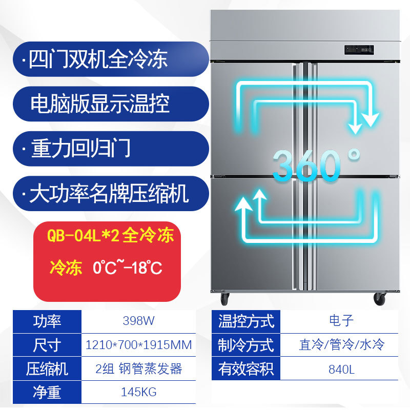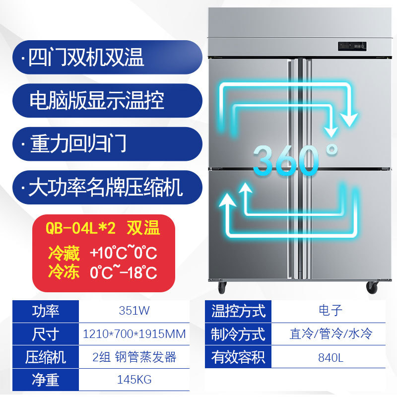 Aixue 4 도어 냉장고 상업용 이중 온도 냉장 및 냉동 대용량 스테인레스 스틸 냉동고 호텔 레스토랑 신선 유지 냉동고스토어 가기