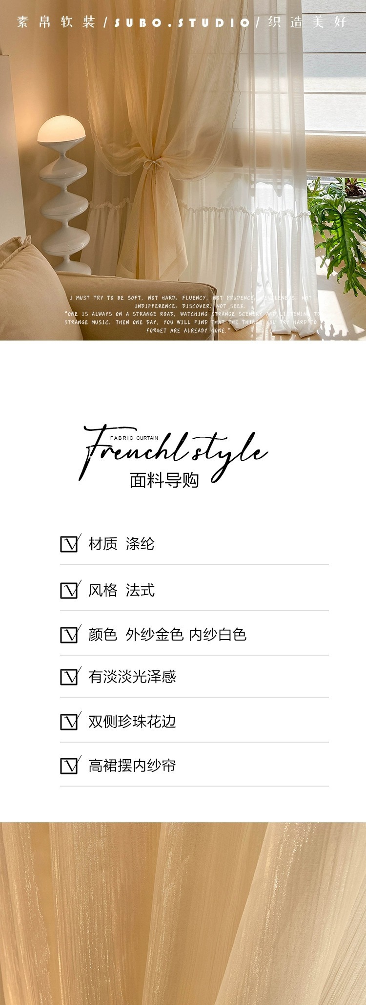 프랑스 금박 거즈 황금 소녀 복고풍 진주 코코아 거즈 창 거즈 우아한 낭만적 인 커튼 분위기 레스토랑스토어 가기