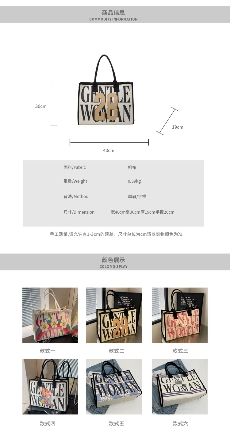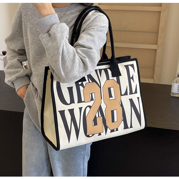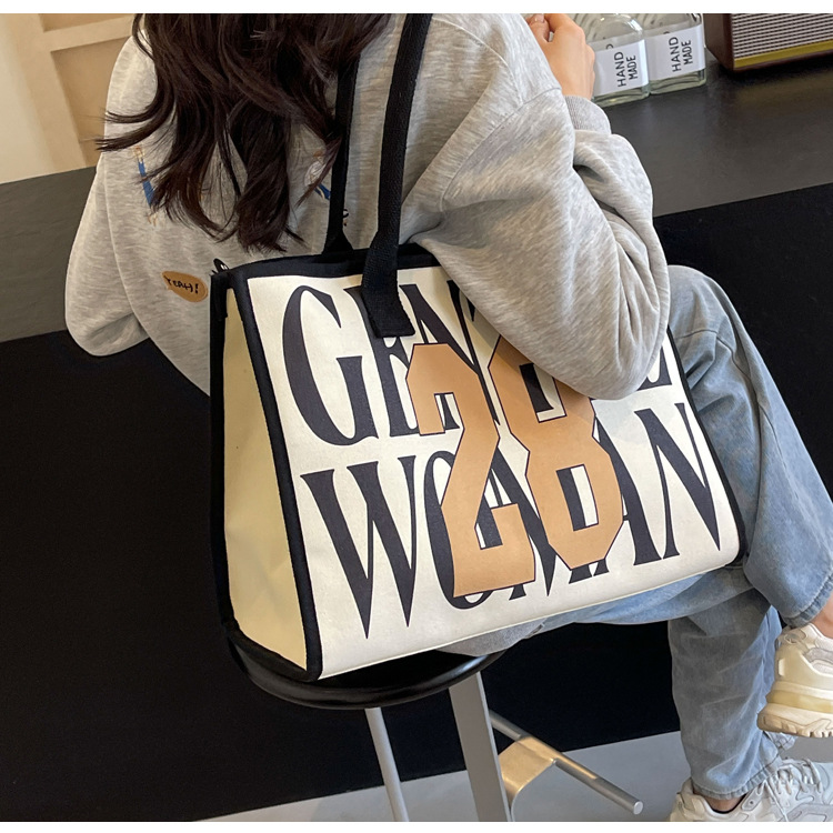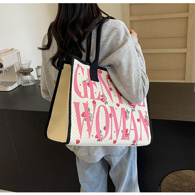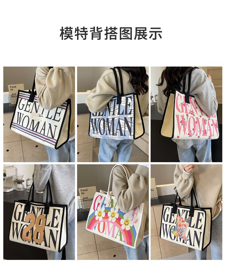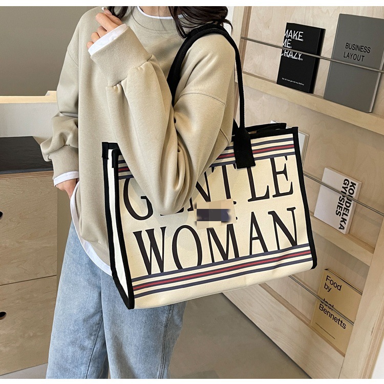 패션 캔버스 토트 백 여성의 새로운 원래 대용량 핸드백 태국 인터넷 축하 GW 편지 어깨 배낭스토어 가기