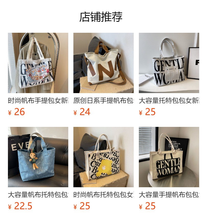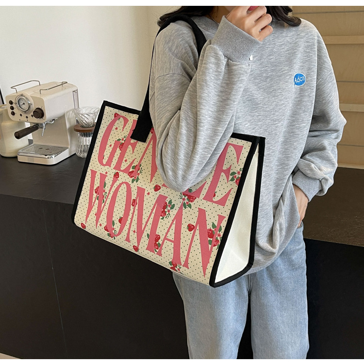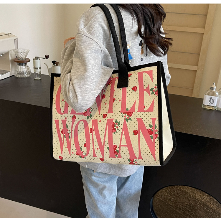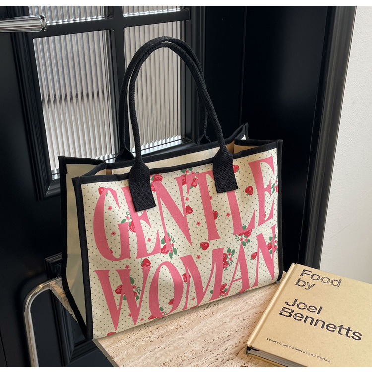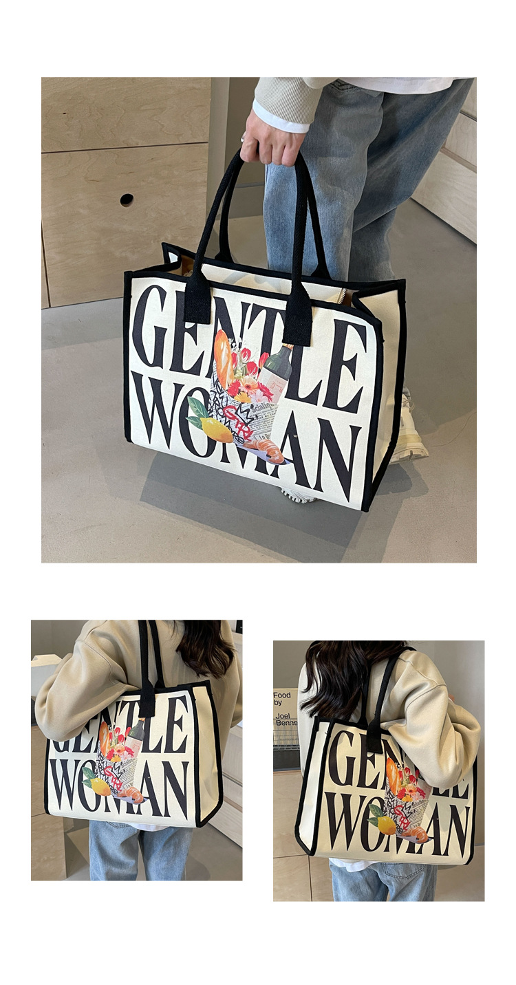 패션 캔버스 토트 백 여성의 새로운 원래 대용량 핸드백 태국 인터넷 축하 GW 편지 어깨 배낭스토어 가기