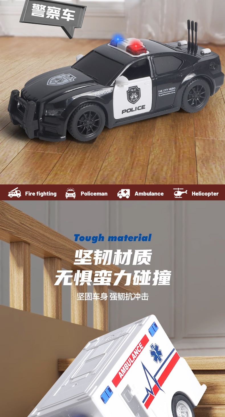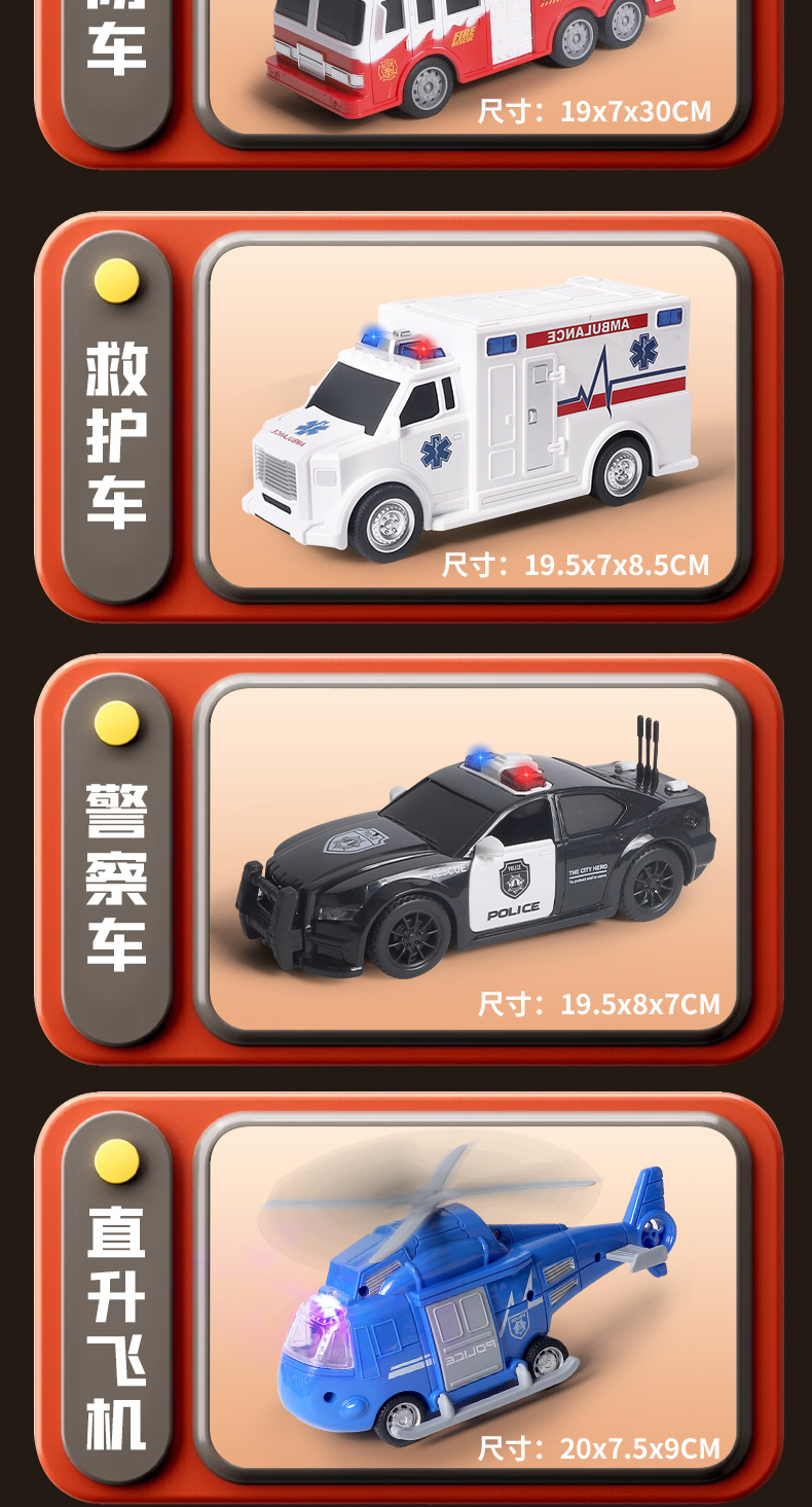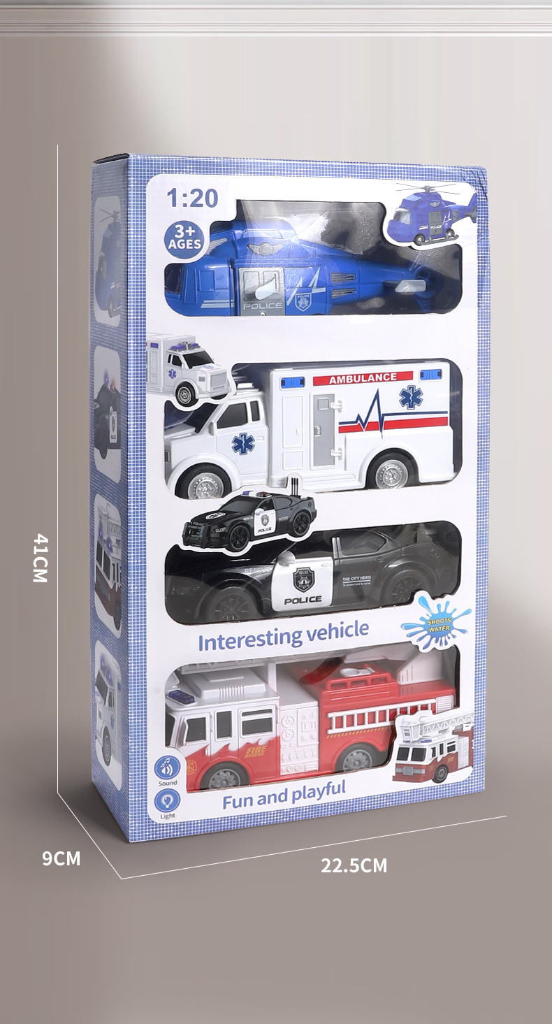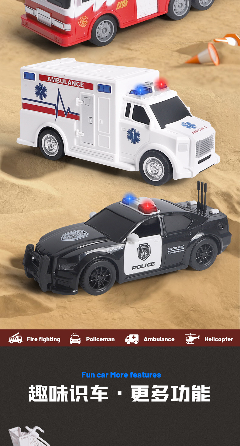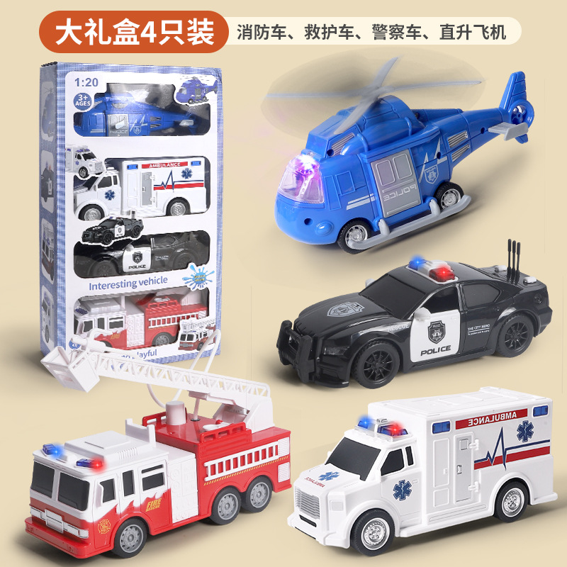 국경 간 폭발 선물 상자 세트 소리와 가벼운 어린이 소방차 구급차 관성 자동차 소년 장난감 머리카락