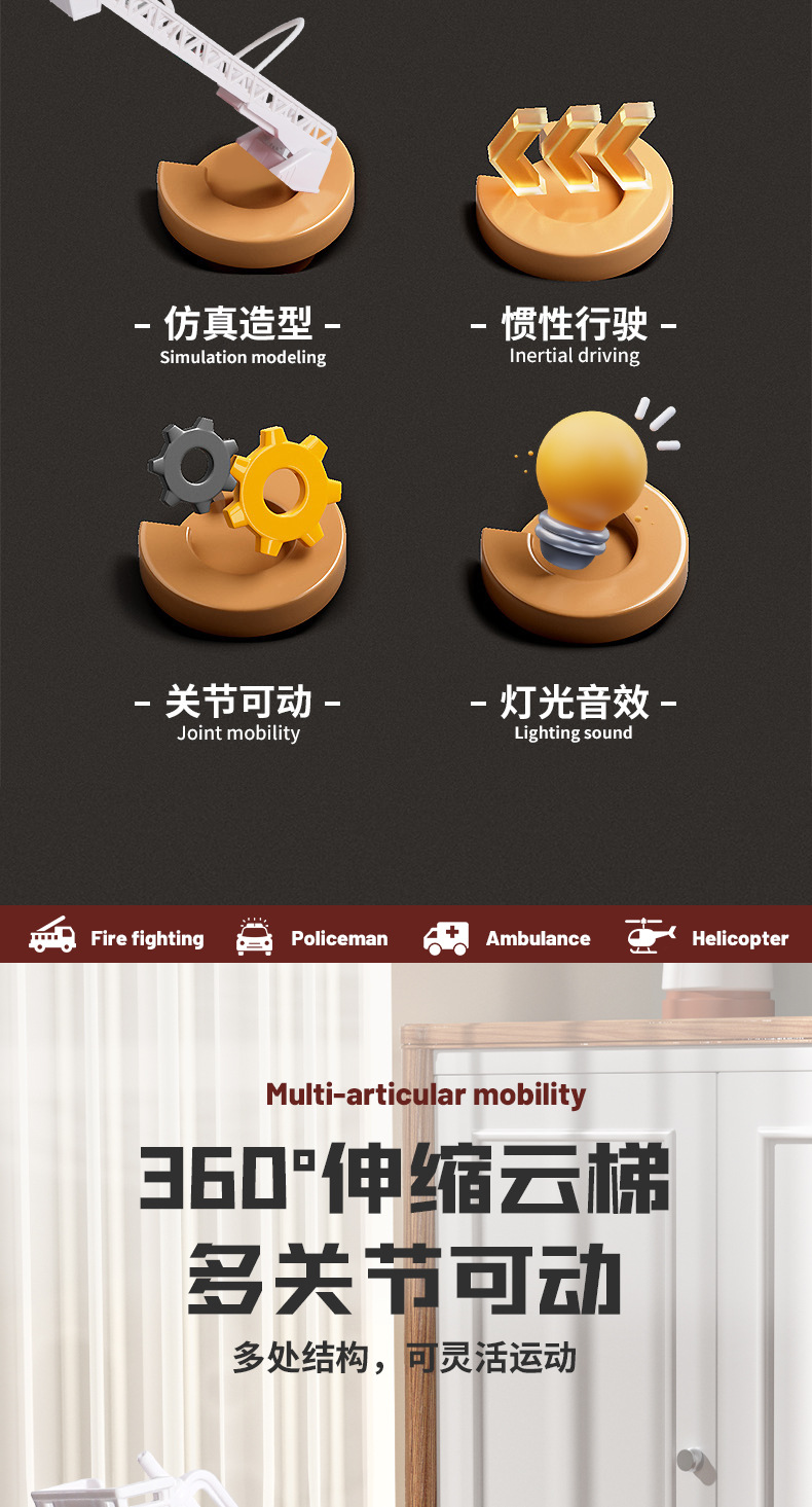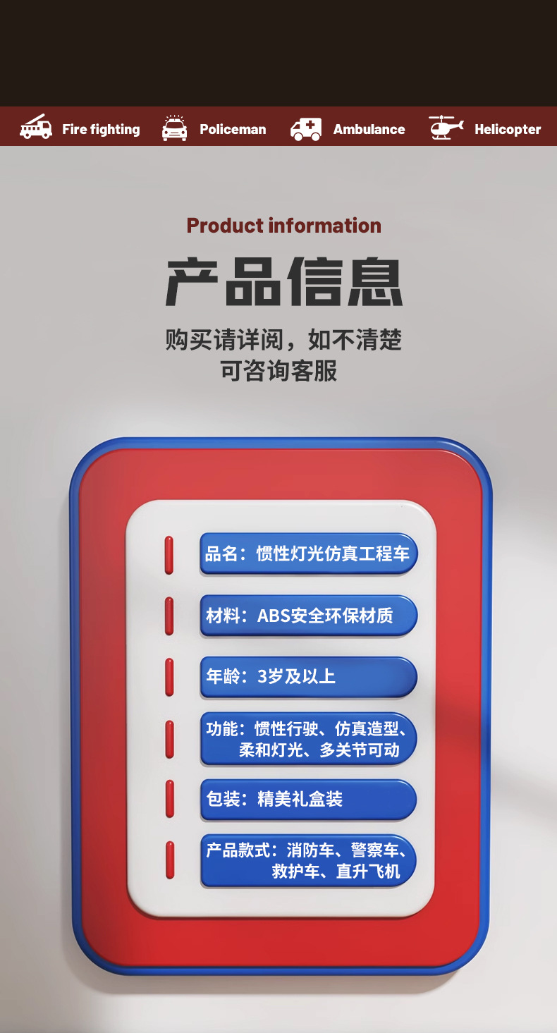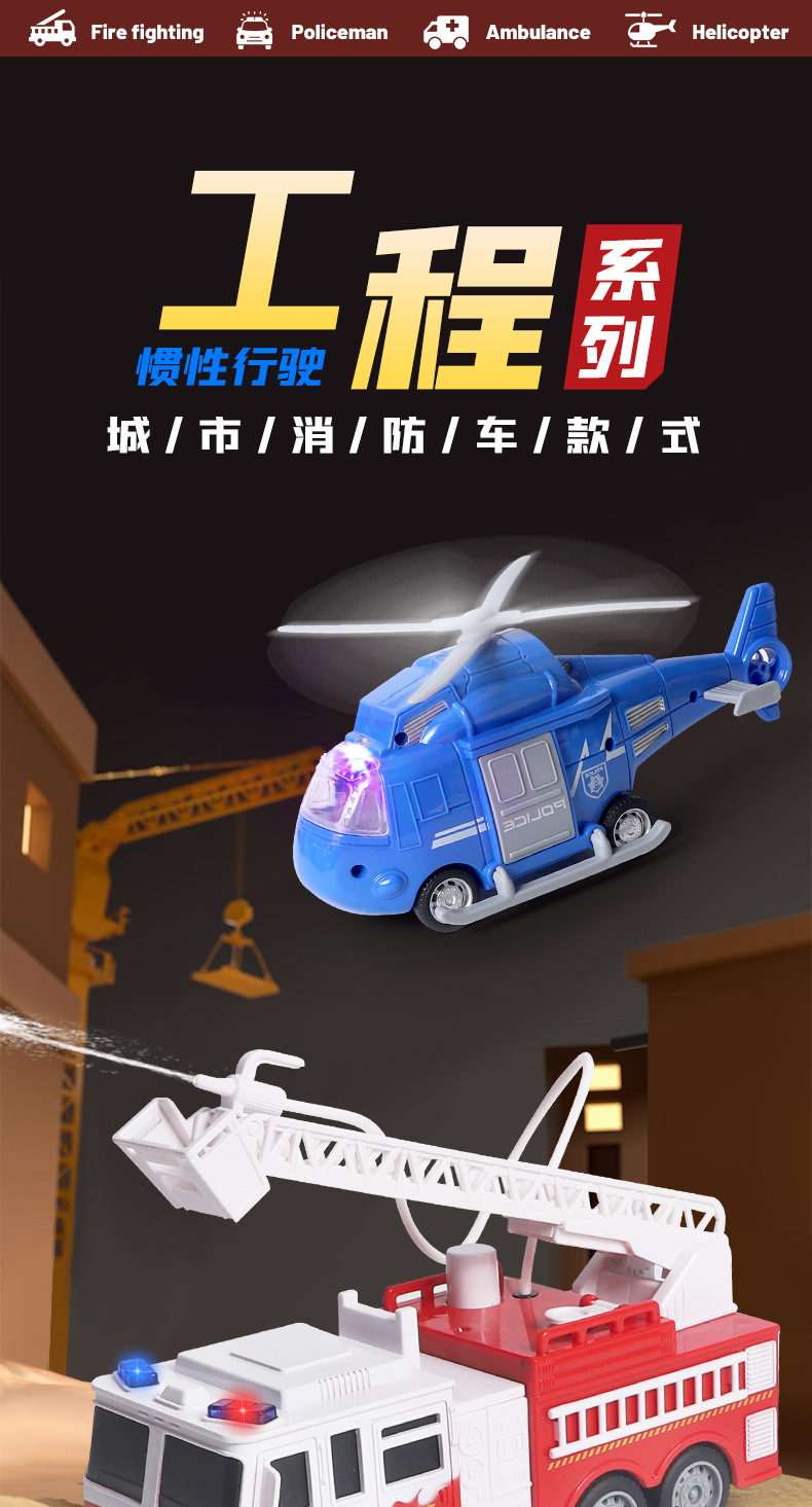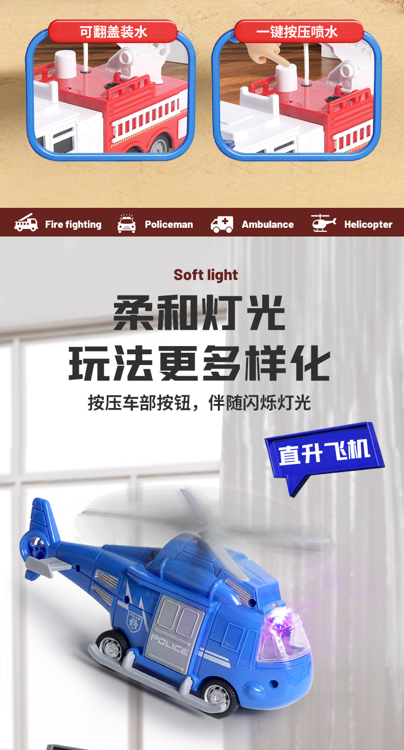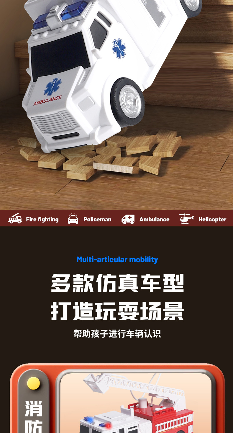 국경 간 폭발 선물 상자 세트 소리와 가벼운 어린이 소방차 구급차 관성 자동차 소년 장난감 머리카락