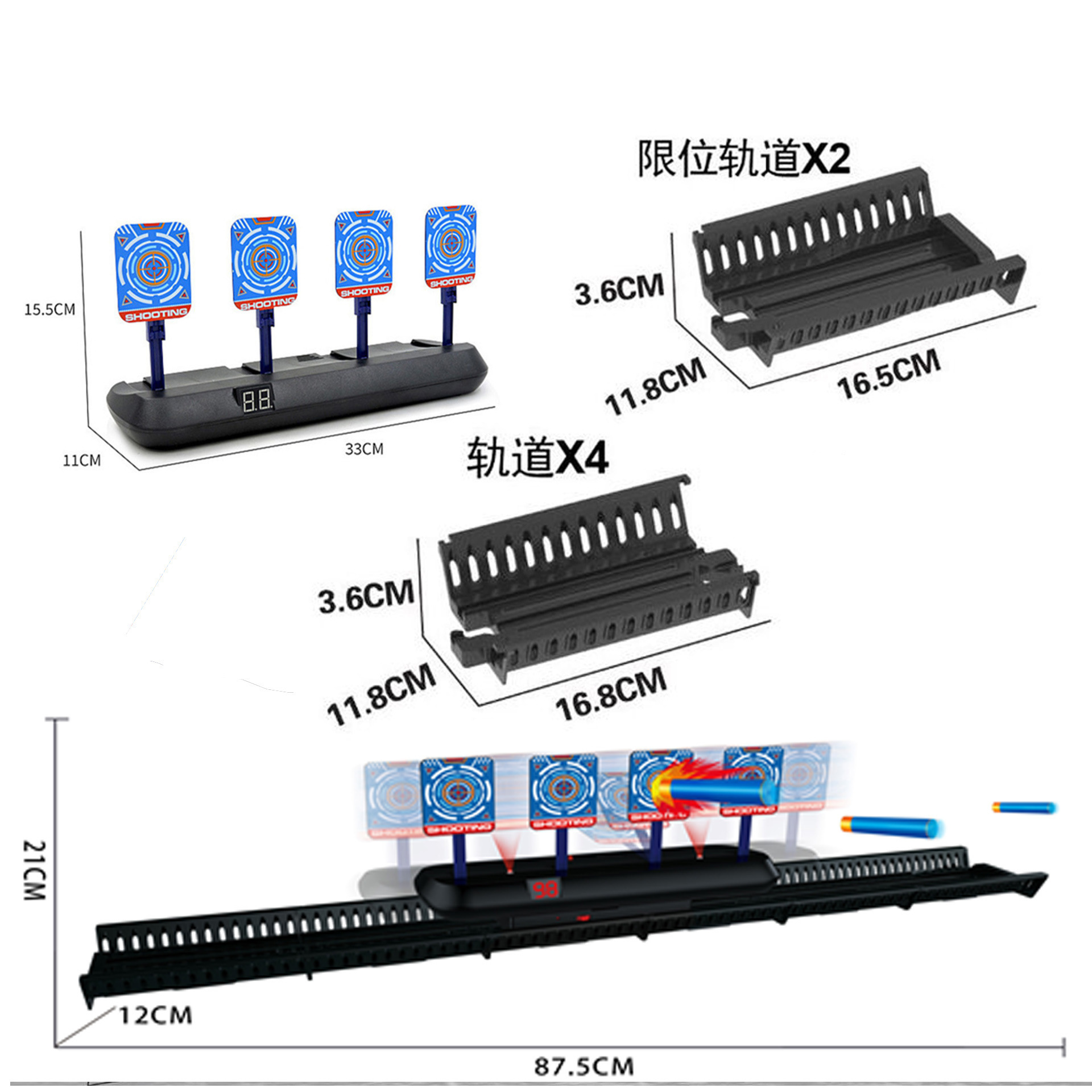 • 이동식 전자 점수판 타겟 3자리 + 1개 채집기 + 스펀지 탄환 10개 (스타일 및 색상은 랜덤 발송)