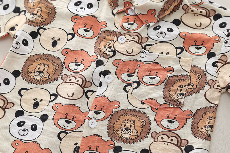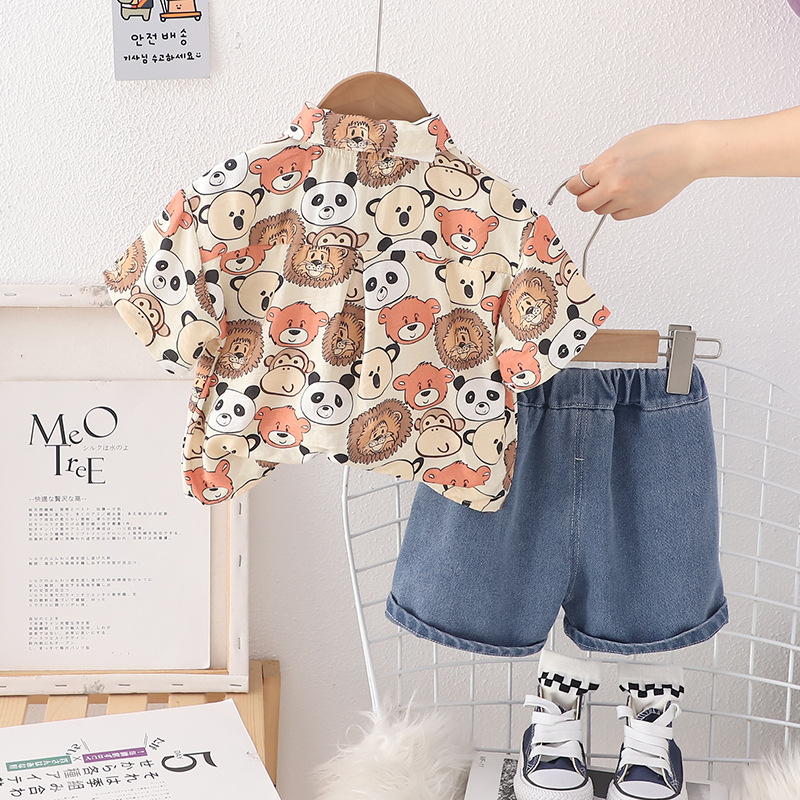 대외 무역 소년 튀긴 거리 세트 여름 새로운 패션 캐주얼 귀여운 아기 전체 인쇄 곰 짧은 소매 반바지 세트 조수