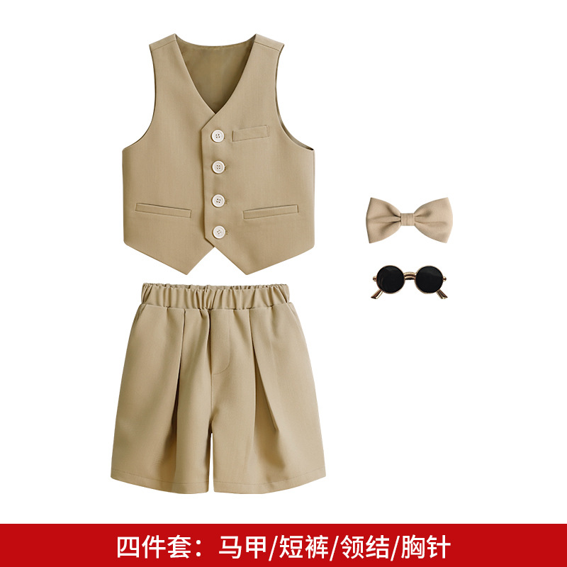 • 카키 4 피스 세트 (조끼 반바지 나비 넥타이 브로치)