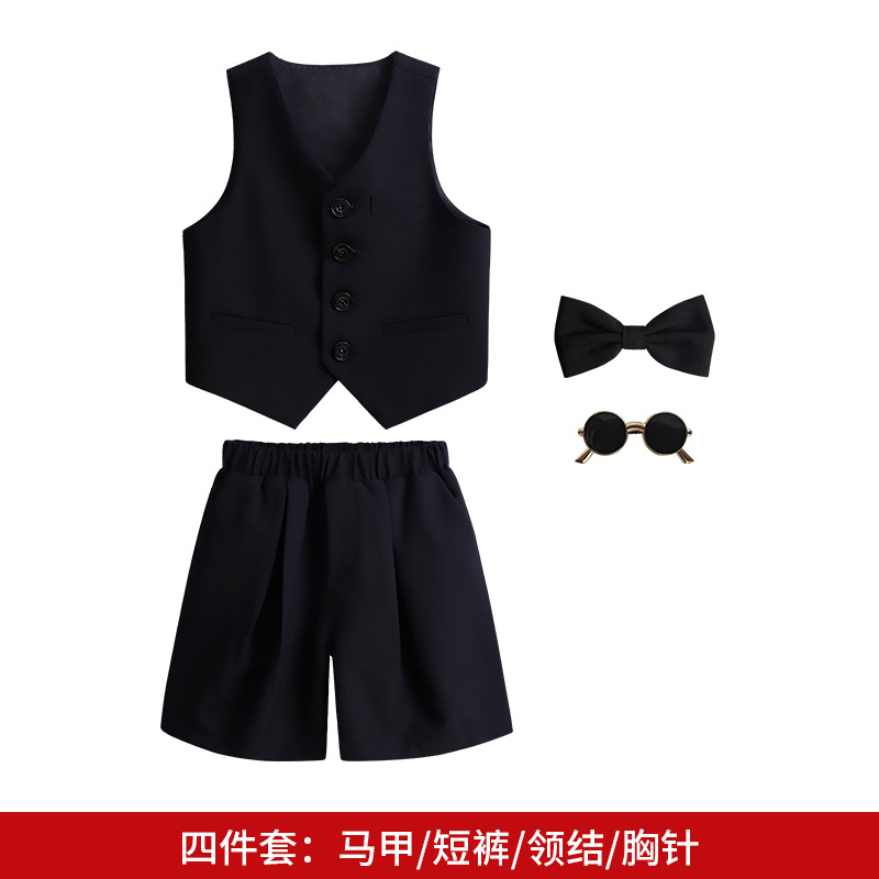 • 블랙 4 피스 세트 (조끼 반바지 나비 넥타이 브로치)