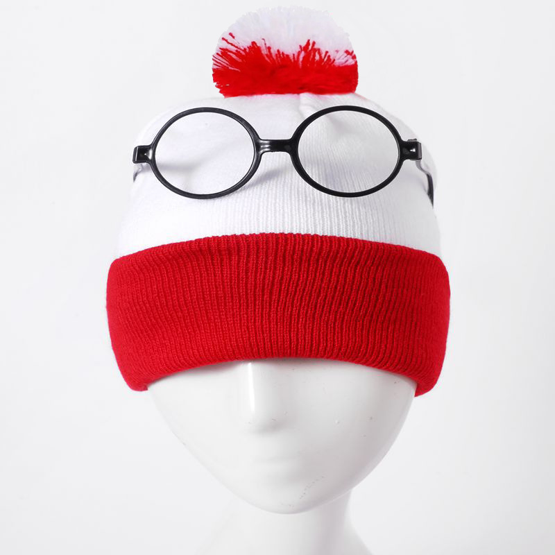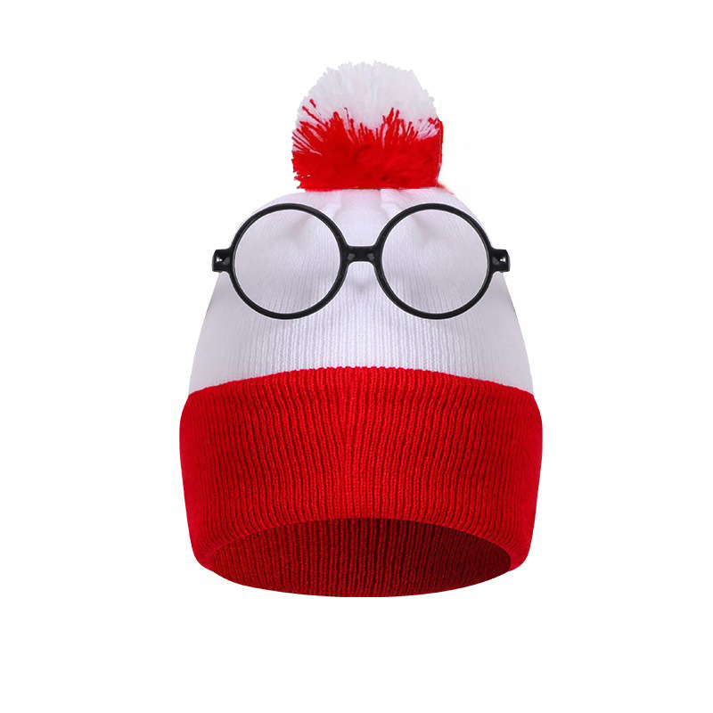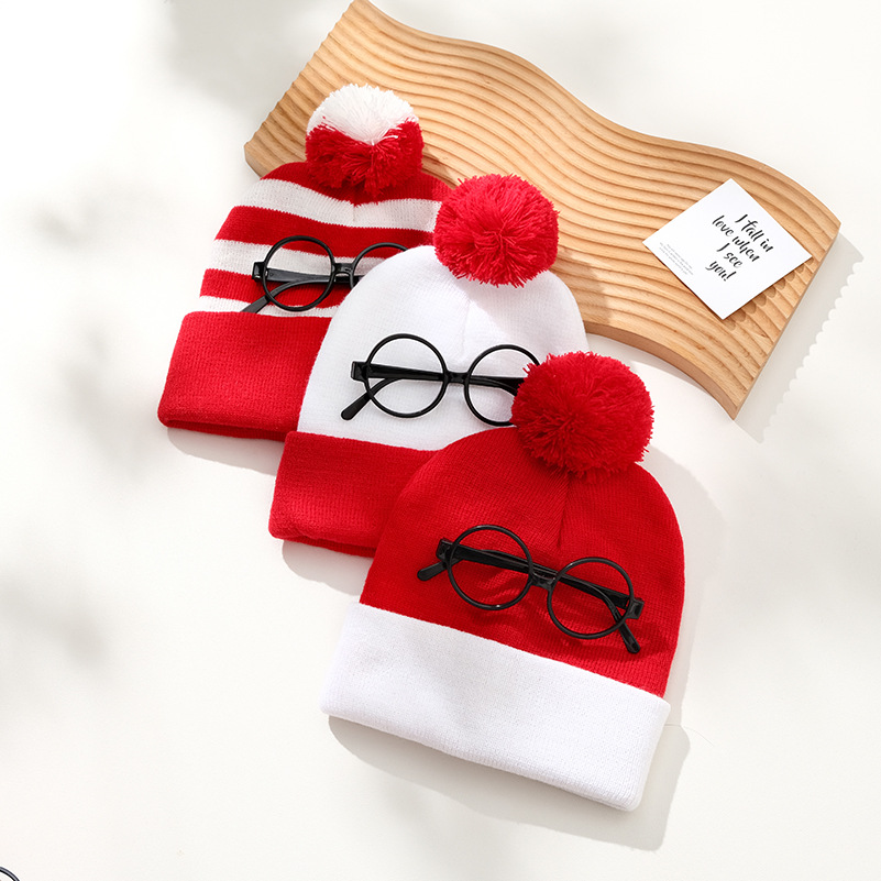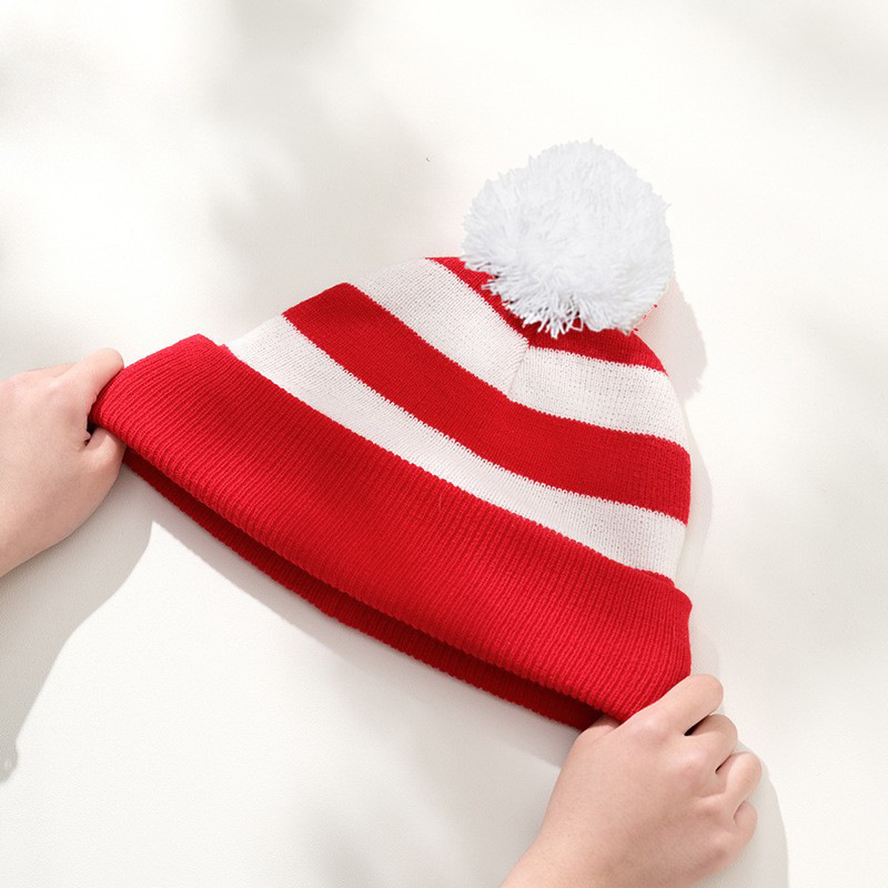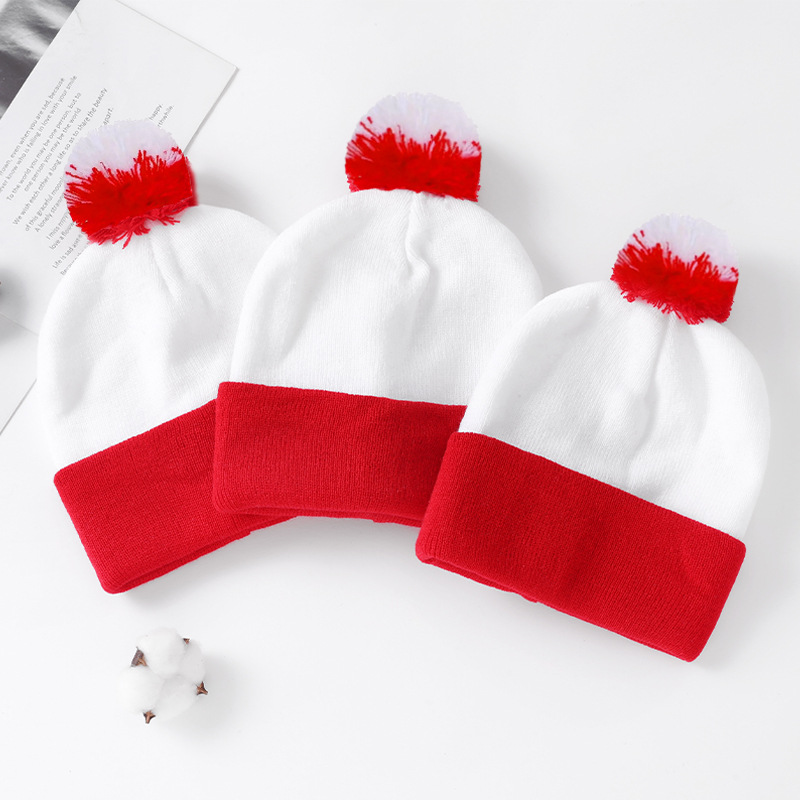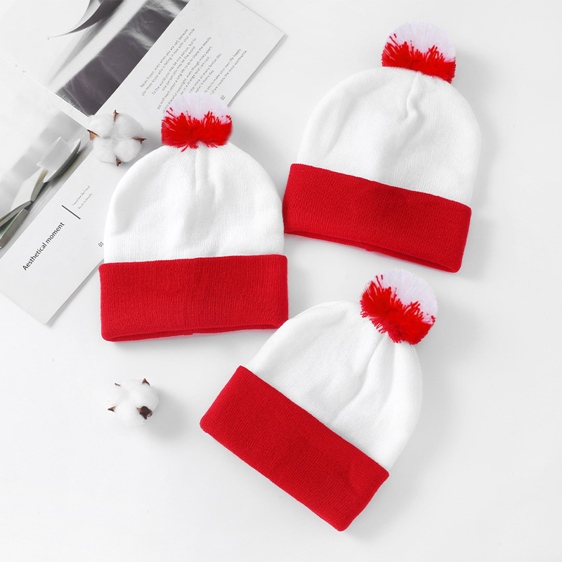 크로스보더 모직 크리스마스 모자 니트 모자 빨간색과 흰색 크리스마스 모자 털방울 니트 모자 빨간색과 흰색 모자 할로윈 모자 재고 있음