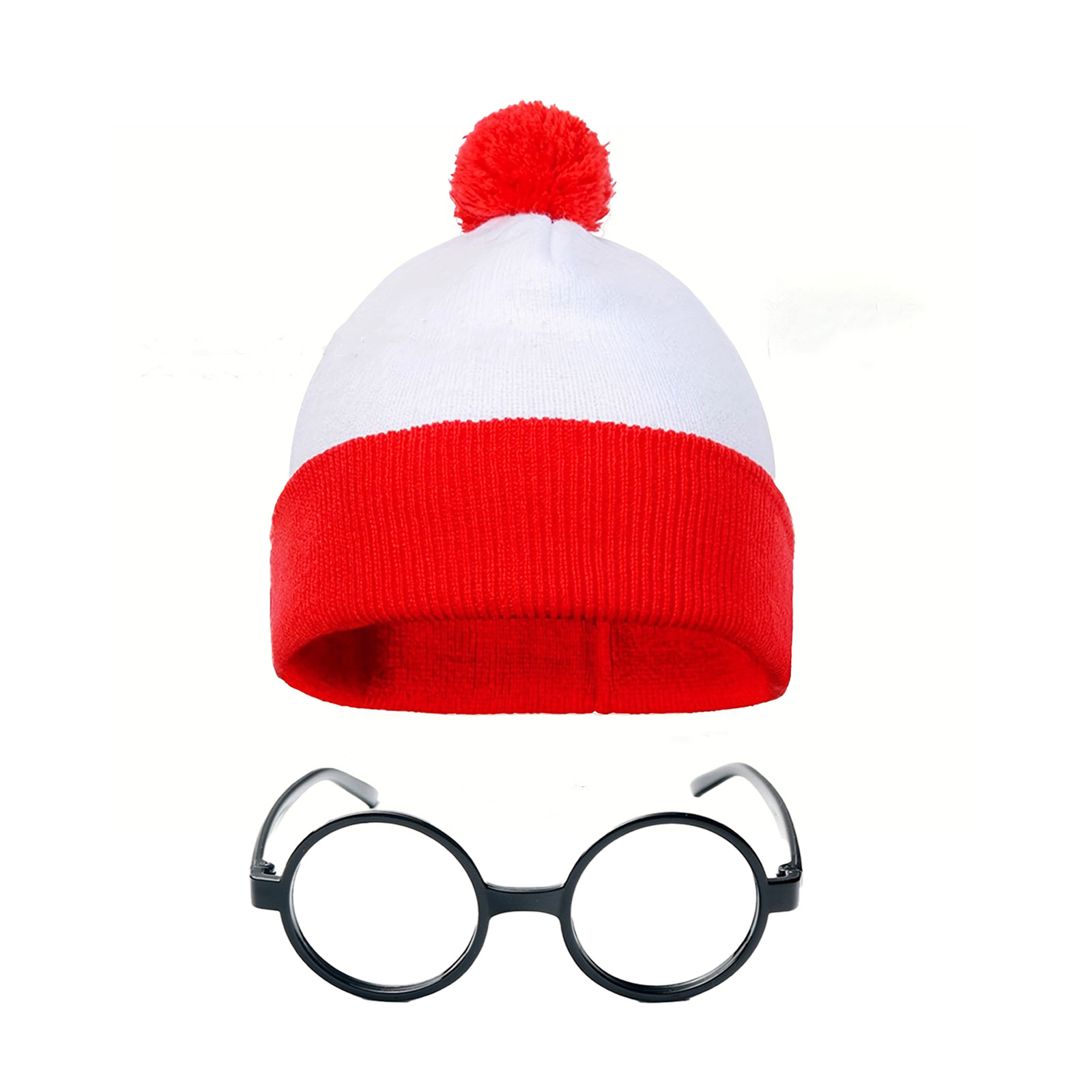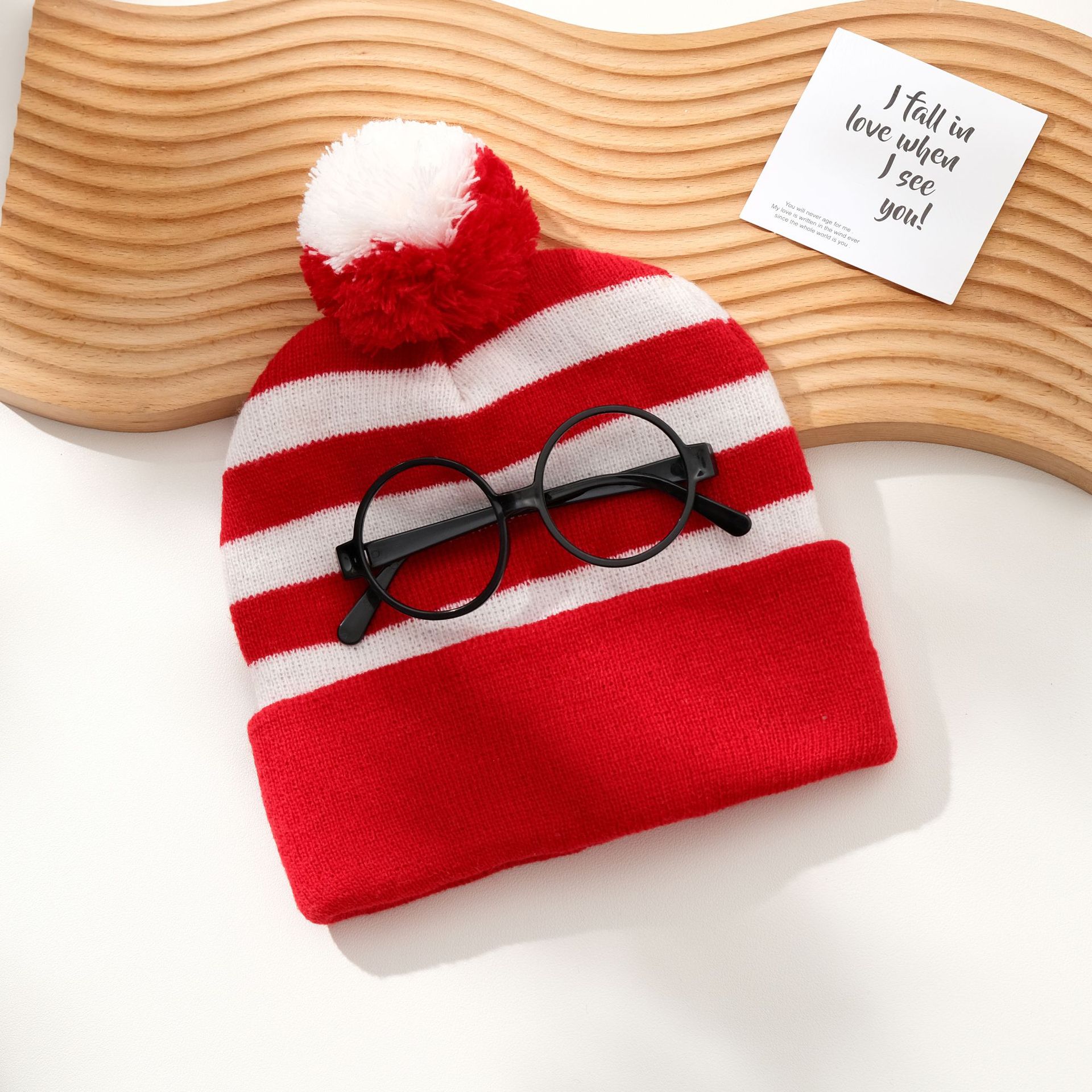 • 빨간색과 흰색 모피 공 + 안경테