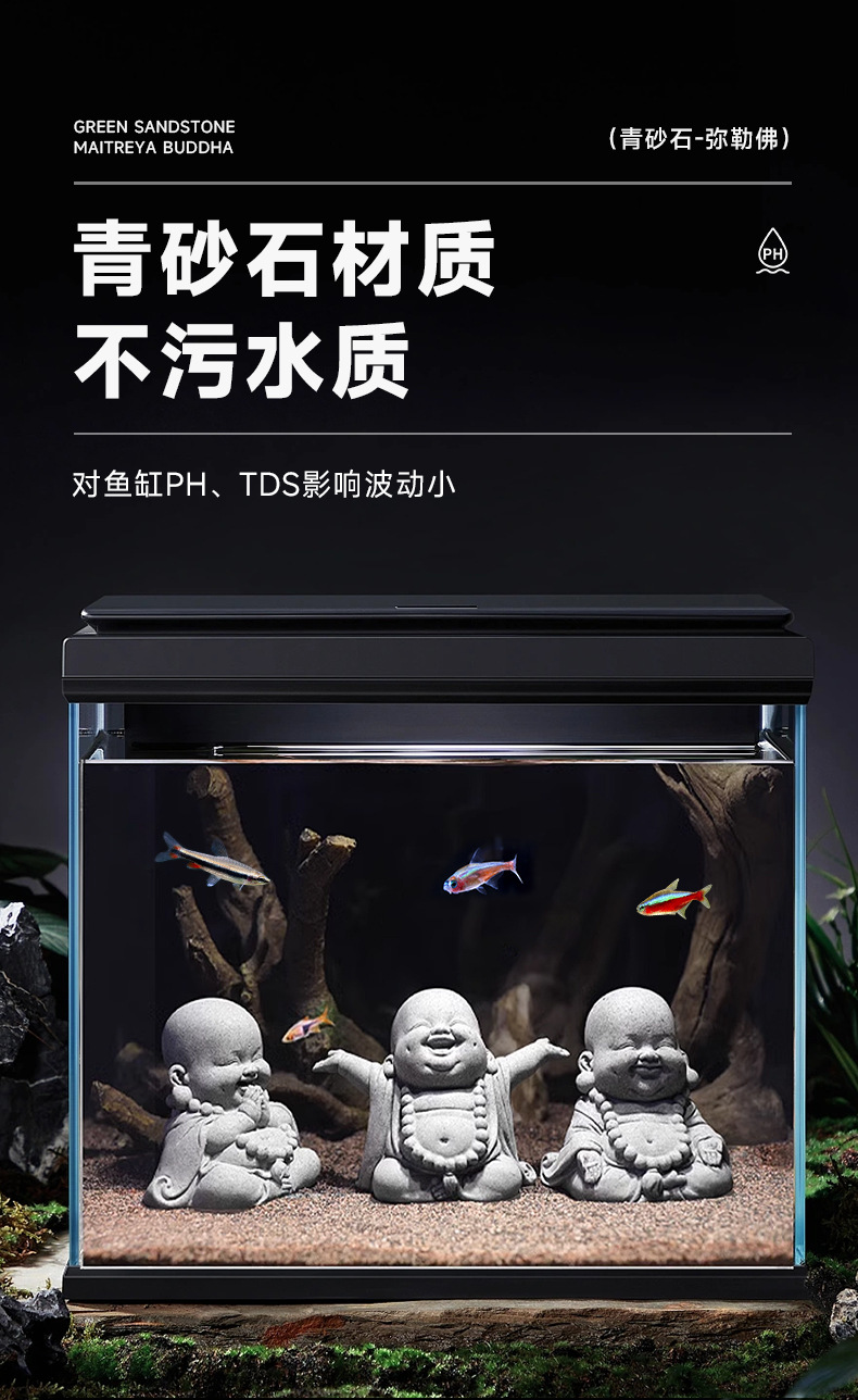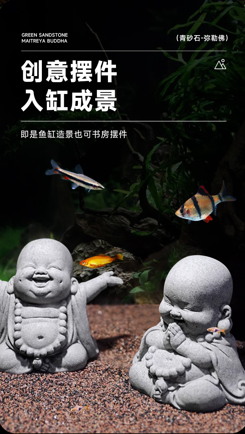 물고기 탱크 수족관 녹색 모래 Maitreya 부처님 장식 돌 조각 조경 장식품 부처님 동상 시뮬레이션 분재 마이크로 풍경 작은 스님