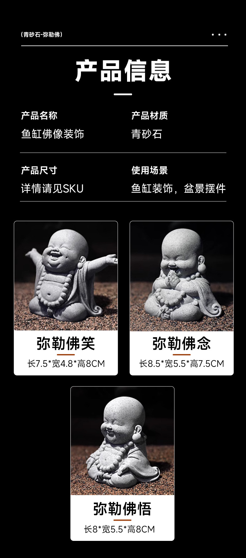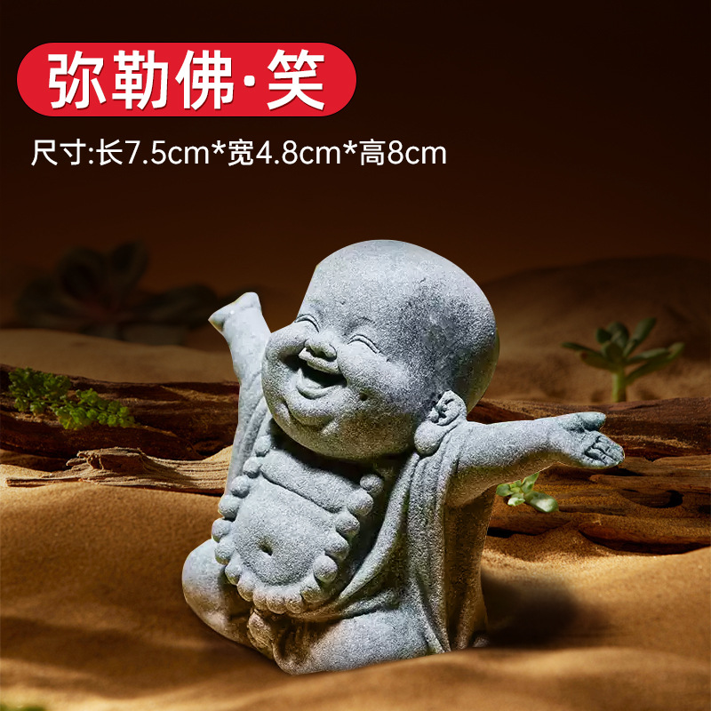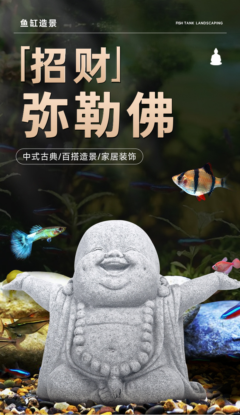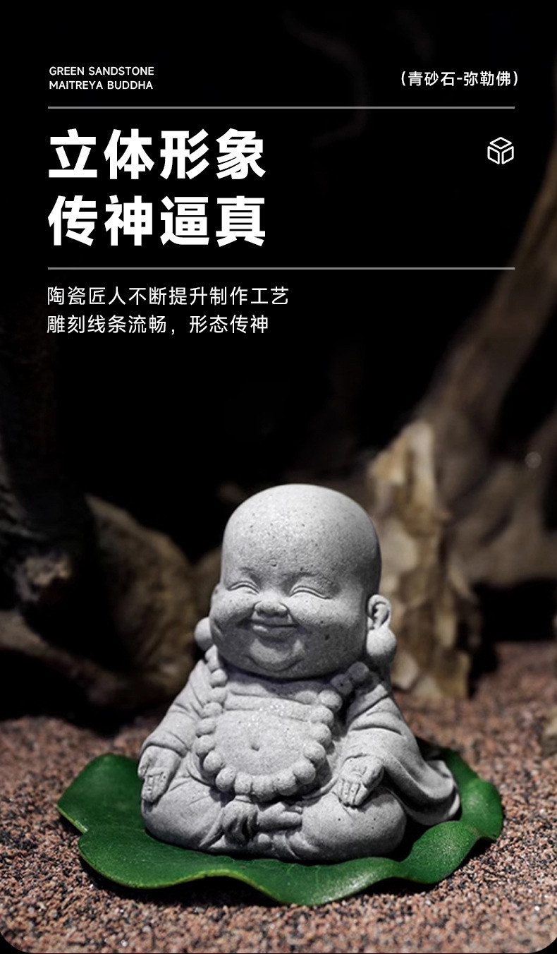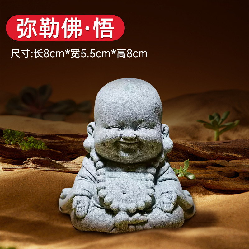 물고기 탱크 수족관 녹색 모래 Maitreya 부처님 장식 돌 조각 조경 장식품 부처님 동상 시뮬레이션 분재 마이크로 풍경 작은 스님스토어 가기
