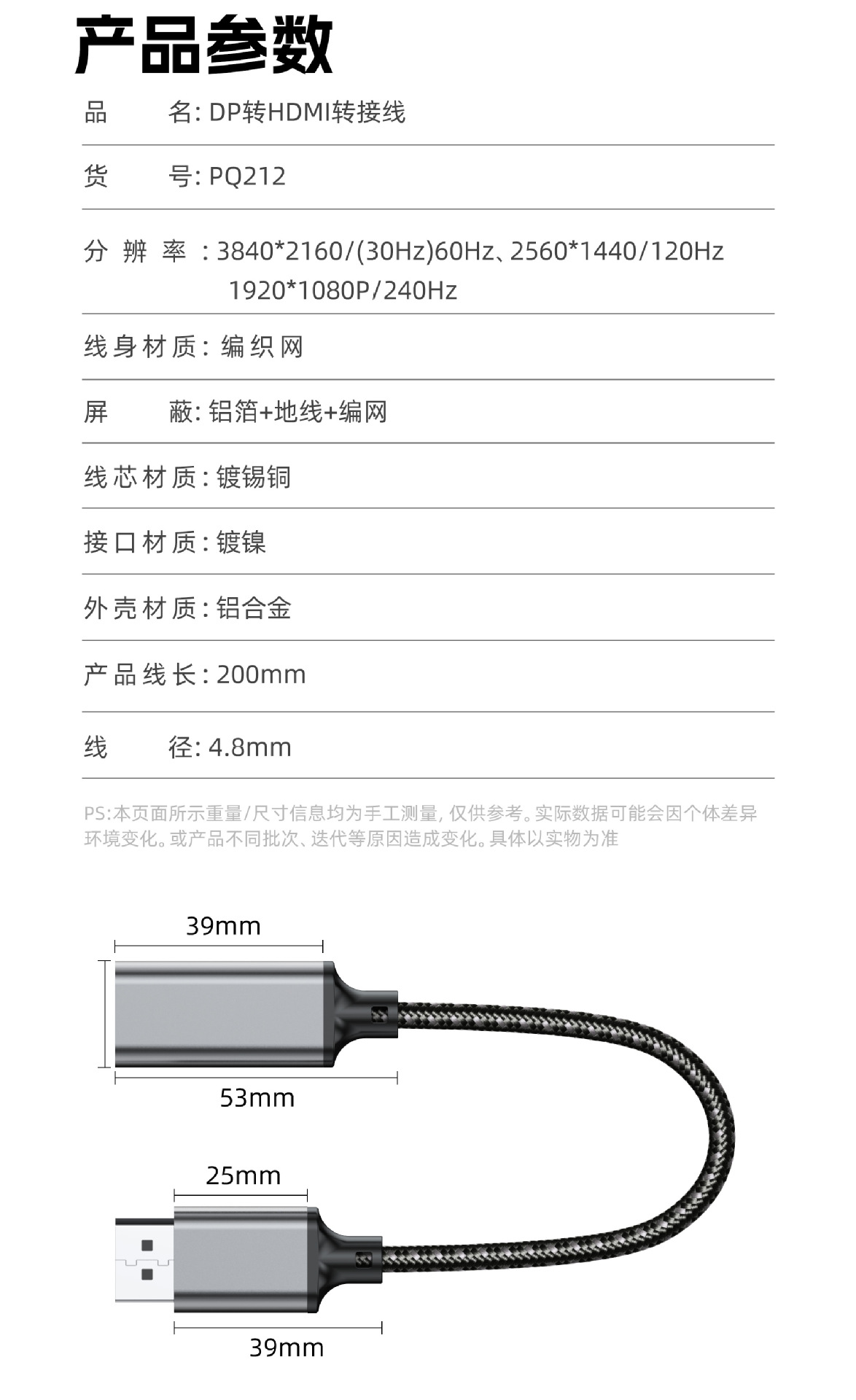 • 1.8m - 검정색 DP 수-HDMI 수(4K30hz)