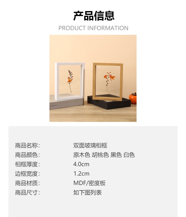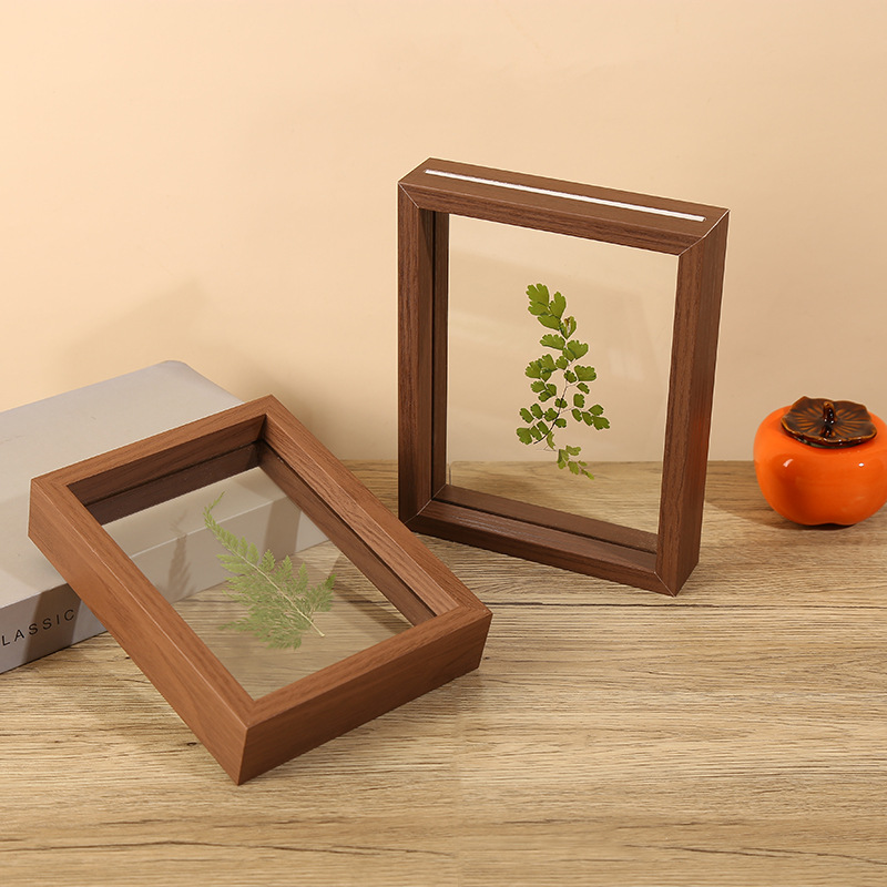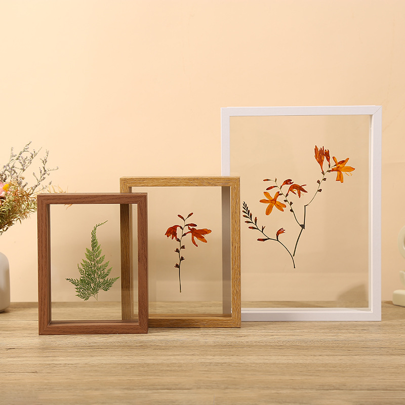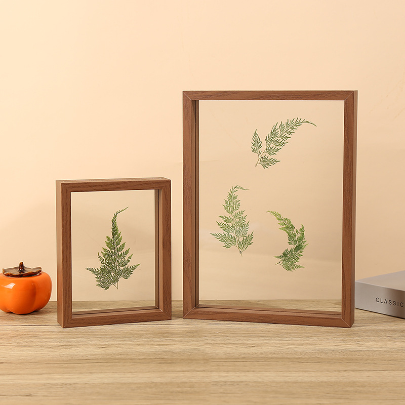 나무 양면 유리 사진 프레임 도매 창조적 인 diy 식물 잎 표본 프레임 투명 말린 꽃 사진 프레임 테이블스토어 가기