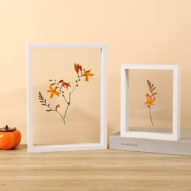 나무 양면 유리 사진 프레임 도매 창조적 인 diy 식물 잎 표본 프레임 투명 말린 꽃 사진 프레임 테이블