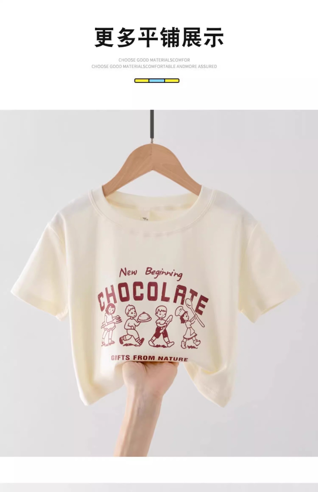 소녀 티셔츠 2024 여름 새로운 어린이 반팔 유행 짧은 탑 큰 어린이 아기의 여름 인쇄 티셔츠