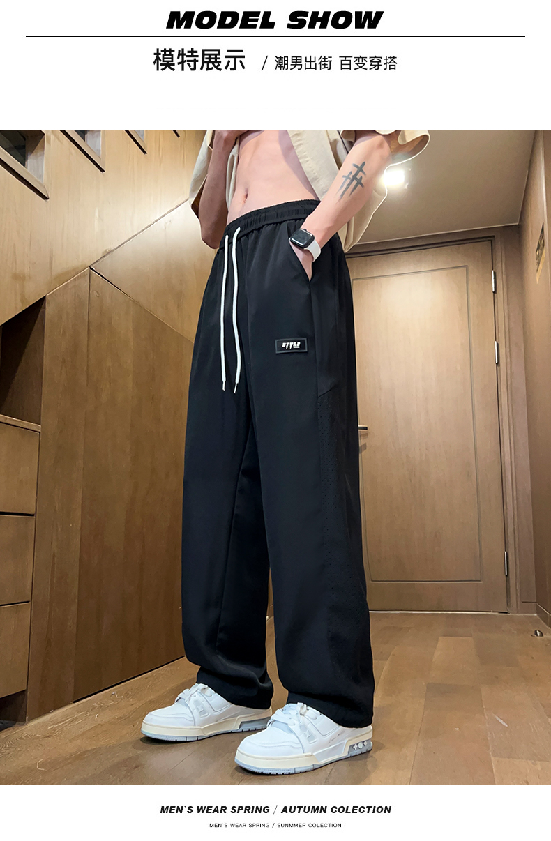 십대 여름 얇은 아이스 실크 바지 소년 주니어 고등학생 스트레이트 캐주얼 바지 큰 어린이 스포츠 바지스토어 가기