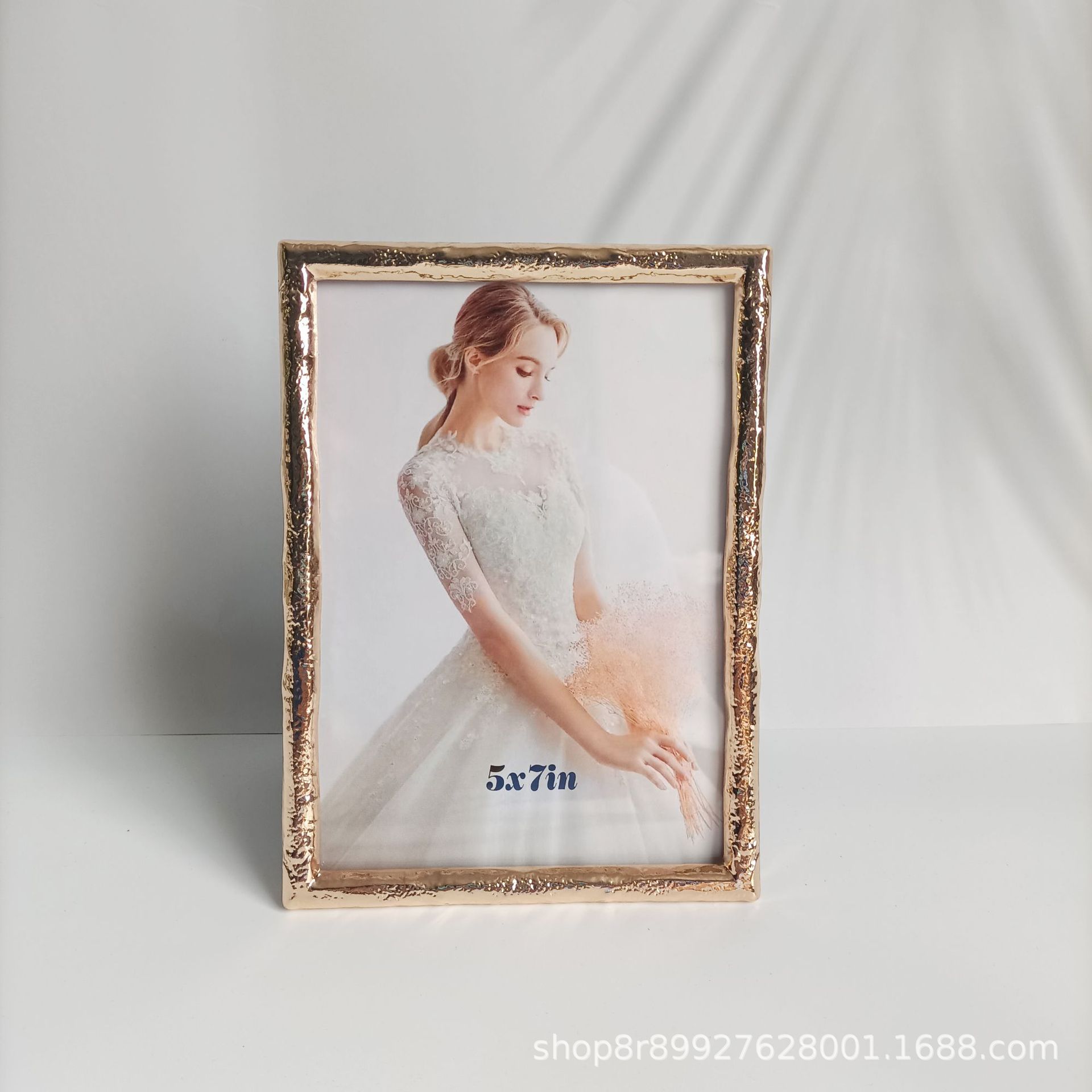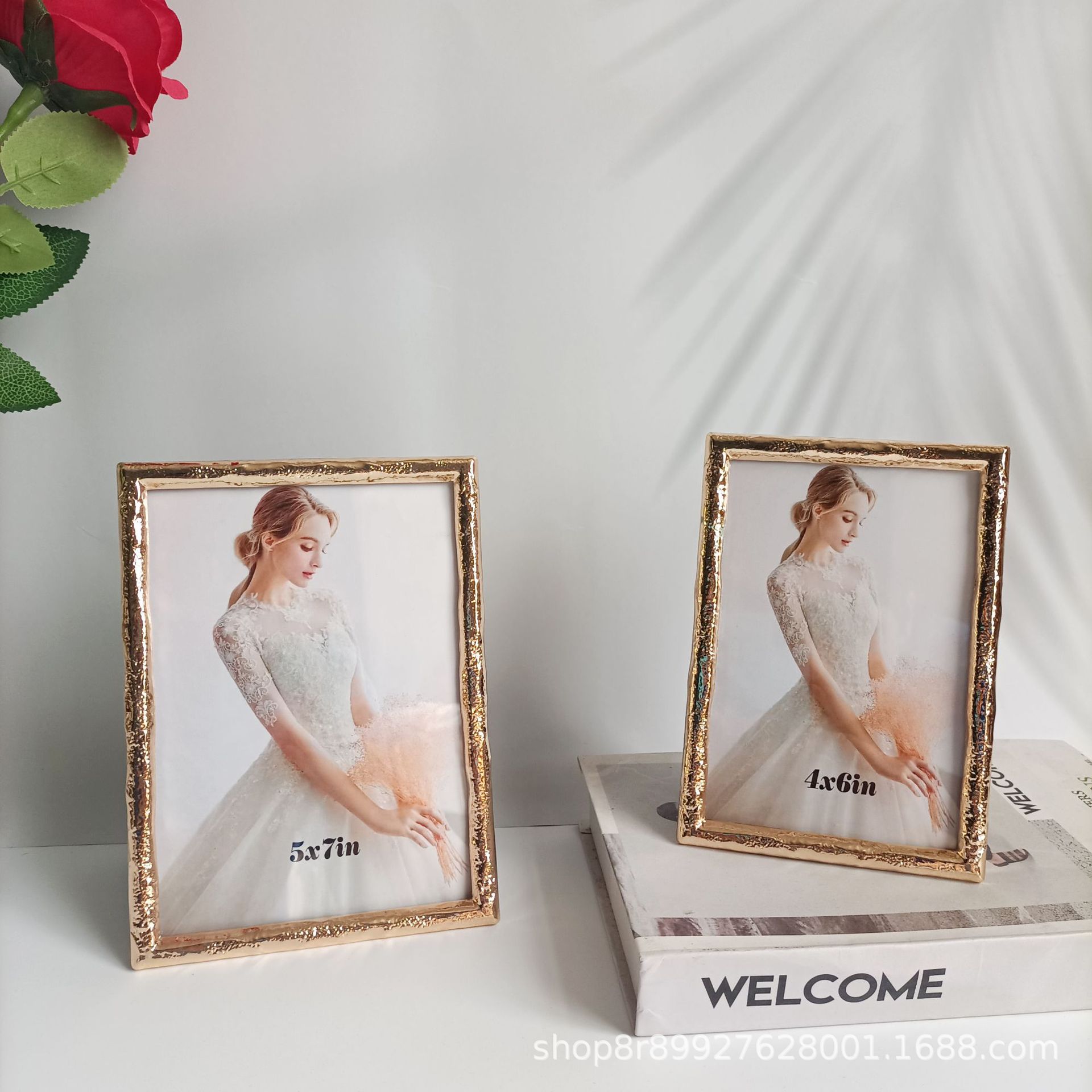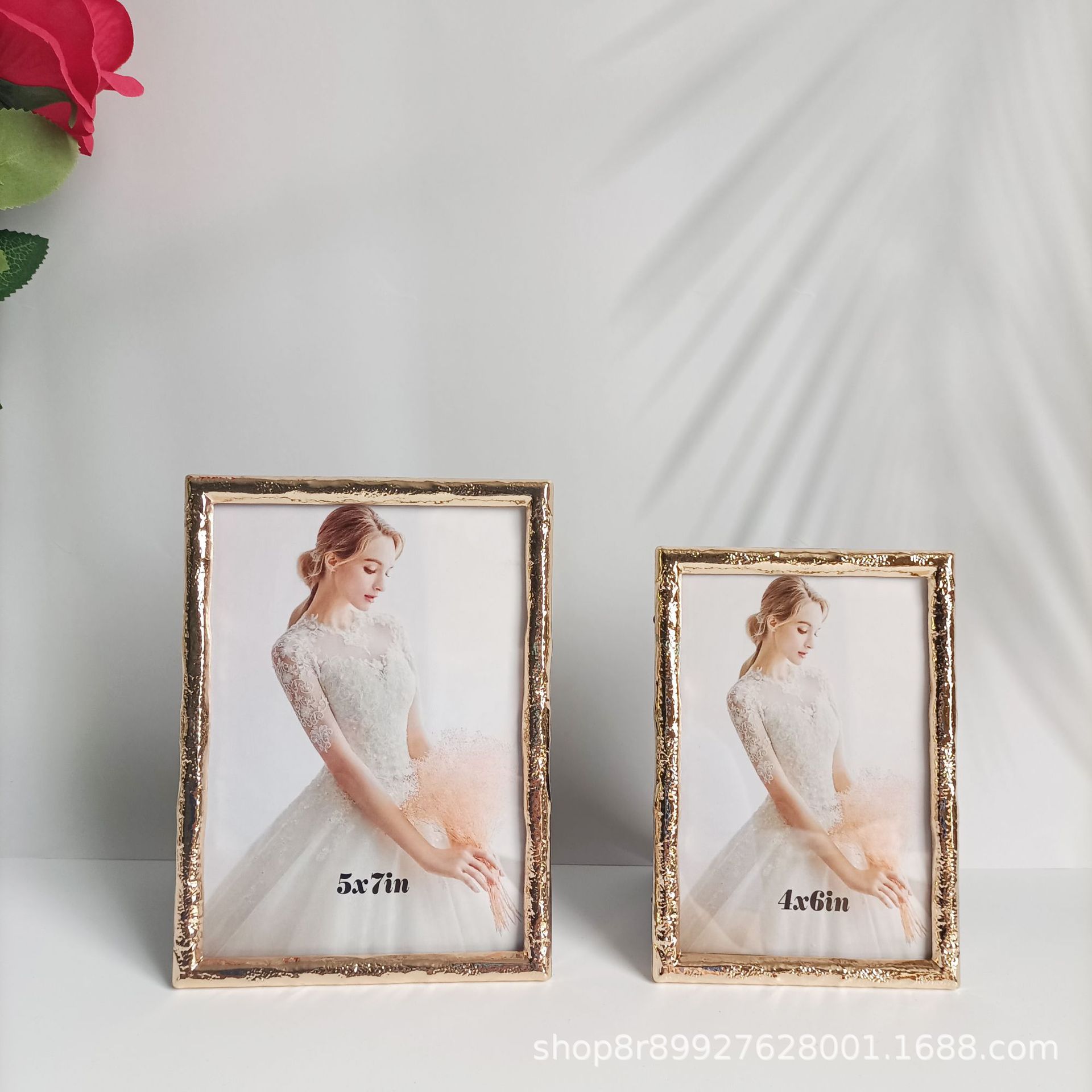 현대 간단한 빛 금 금속 사진 프레임 모델 룸 부드러운 장식 테이블 장식 금속 사진 프레임스토어 가기